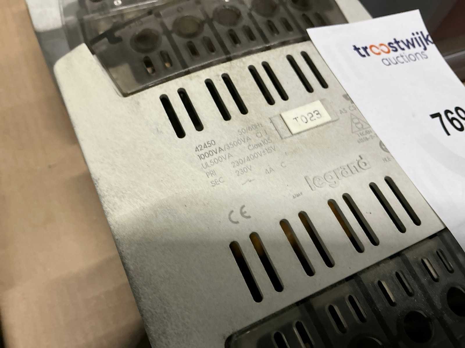 2 stuks 230/400 1kVA —> 230V & 1 stuk 230/400 —> 115V 0,630KVA Nee Merk: Legrand