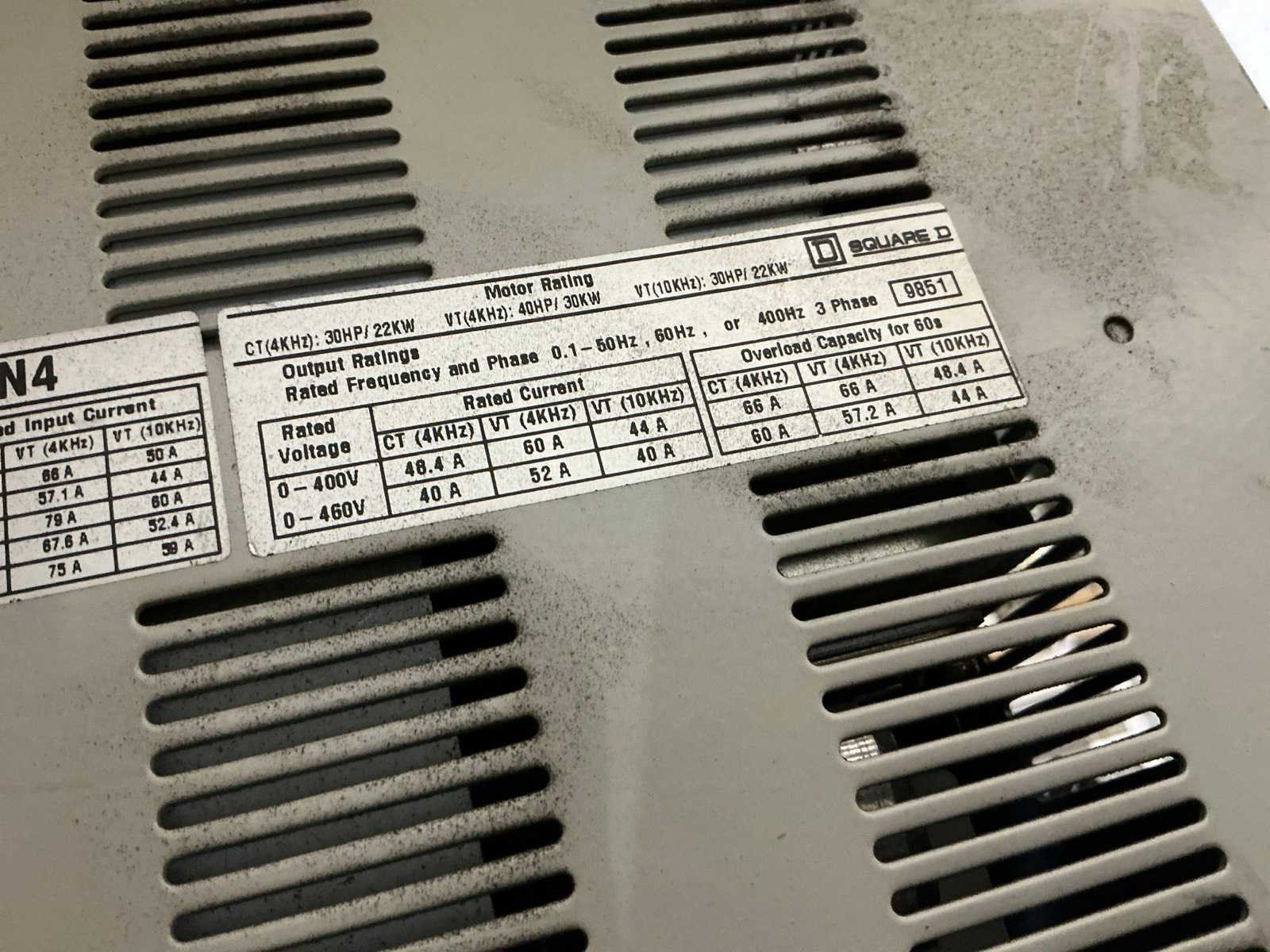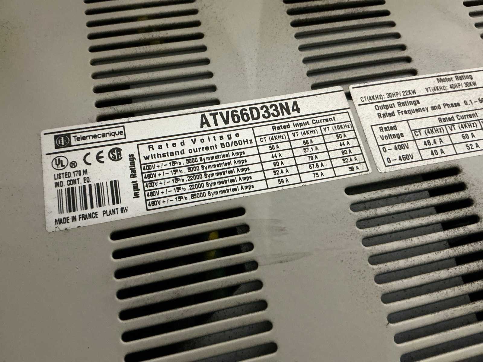 Type ATV66D33N4, 400V Nee Merk: Telemecanique Model: Altivar 66 Vermogen (kW): 22kW