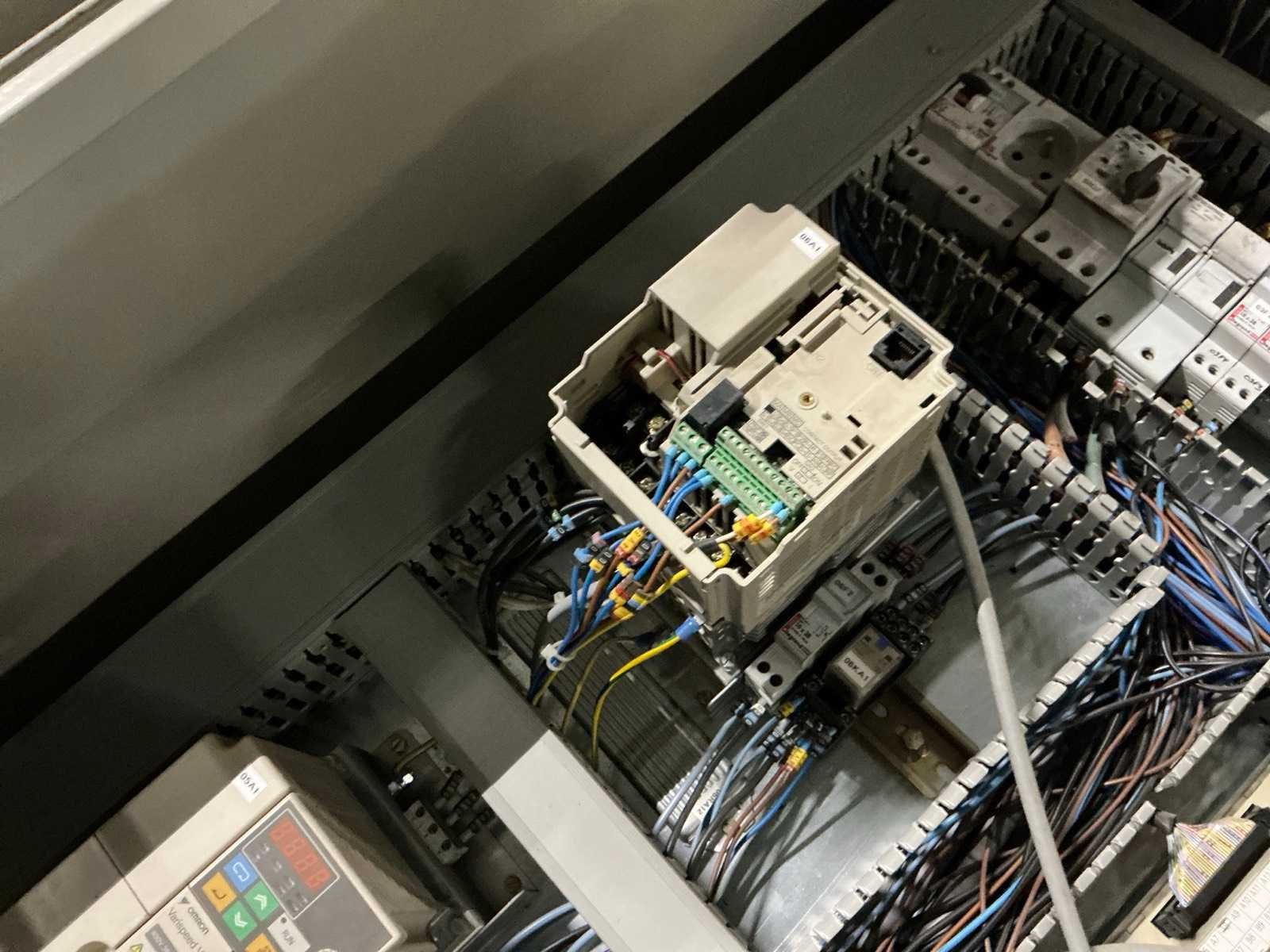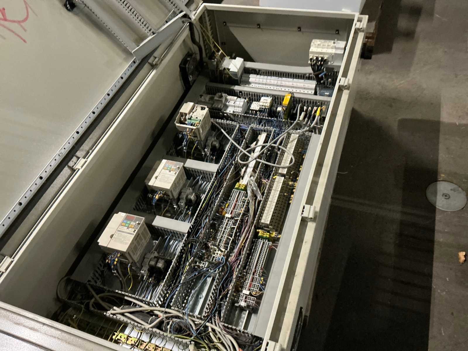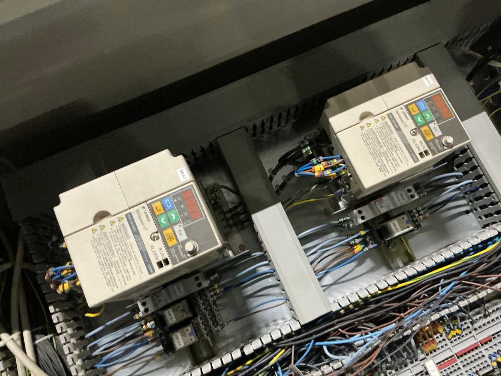 Inhoud bestaande uit 3x Omron frequentieregelaar, contactors, zekeringsautomaten, Omron touchpanel, … Nee