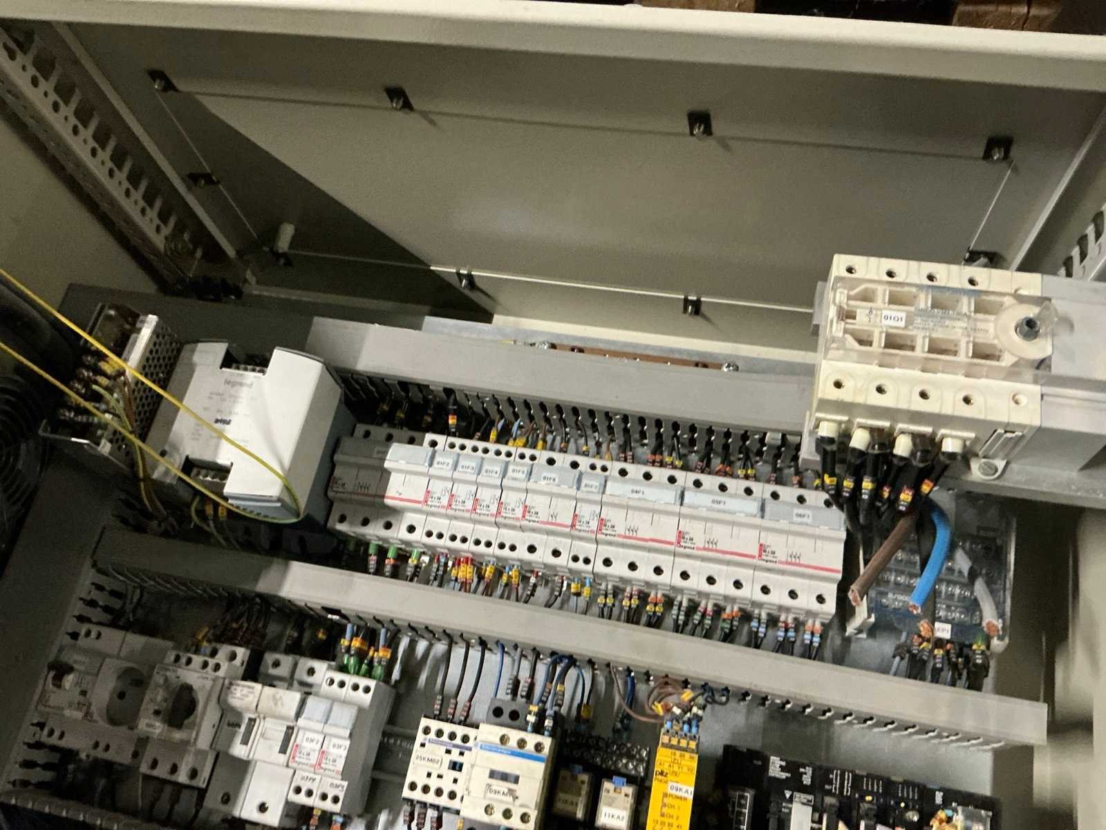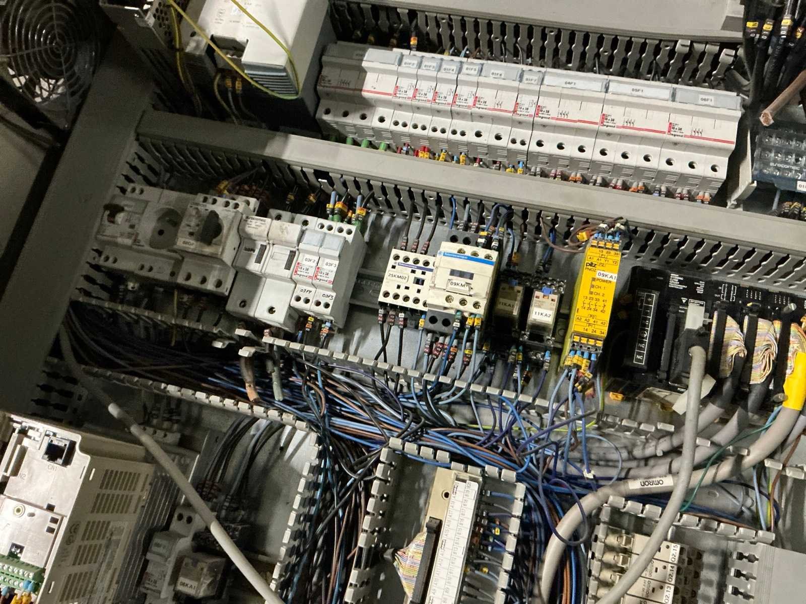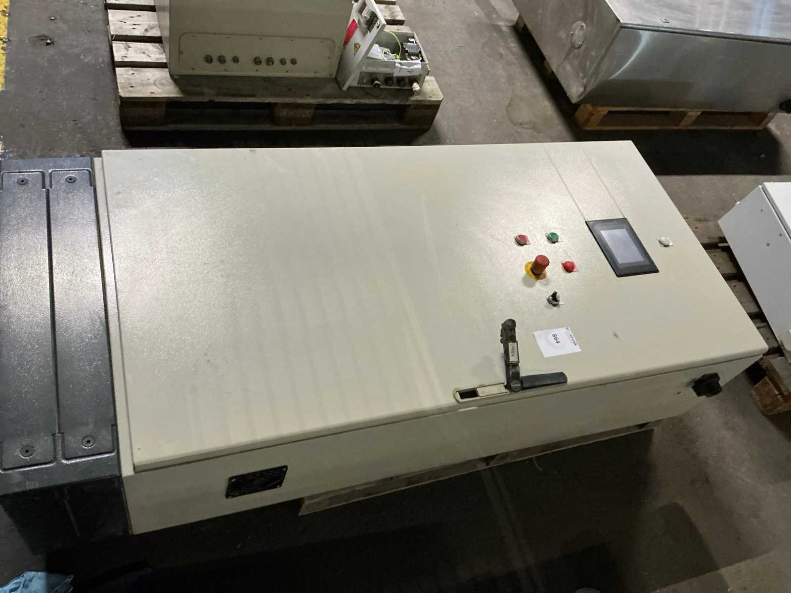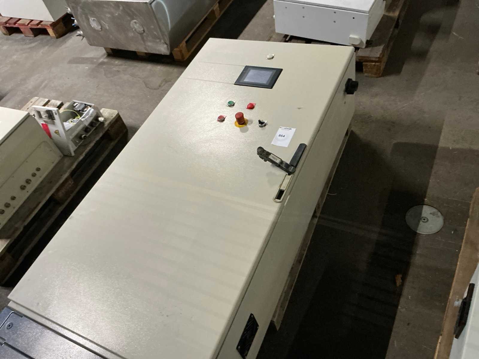 Inhoud bestaande uit 3x Omron frequentieregelaar, contactors, zekeringsautomaten, Omron touchpanel, … Nee