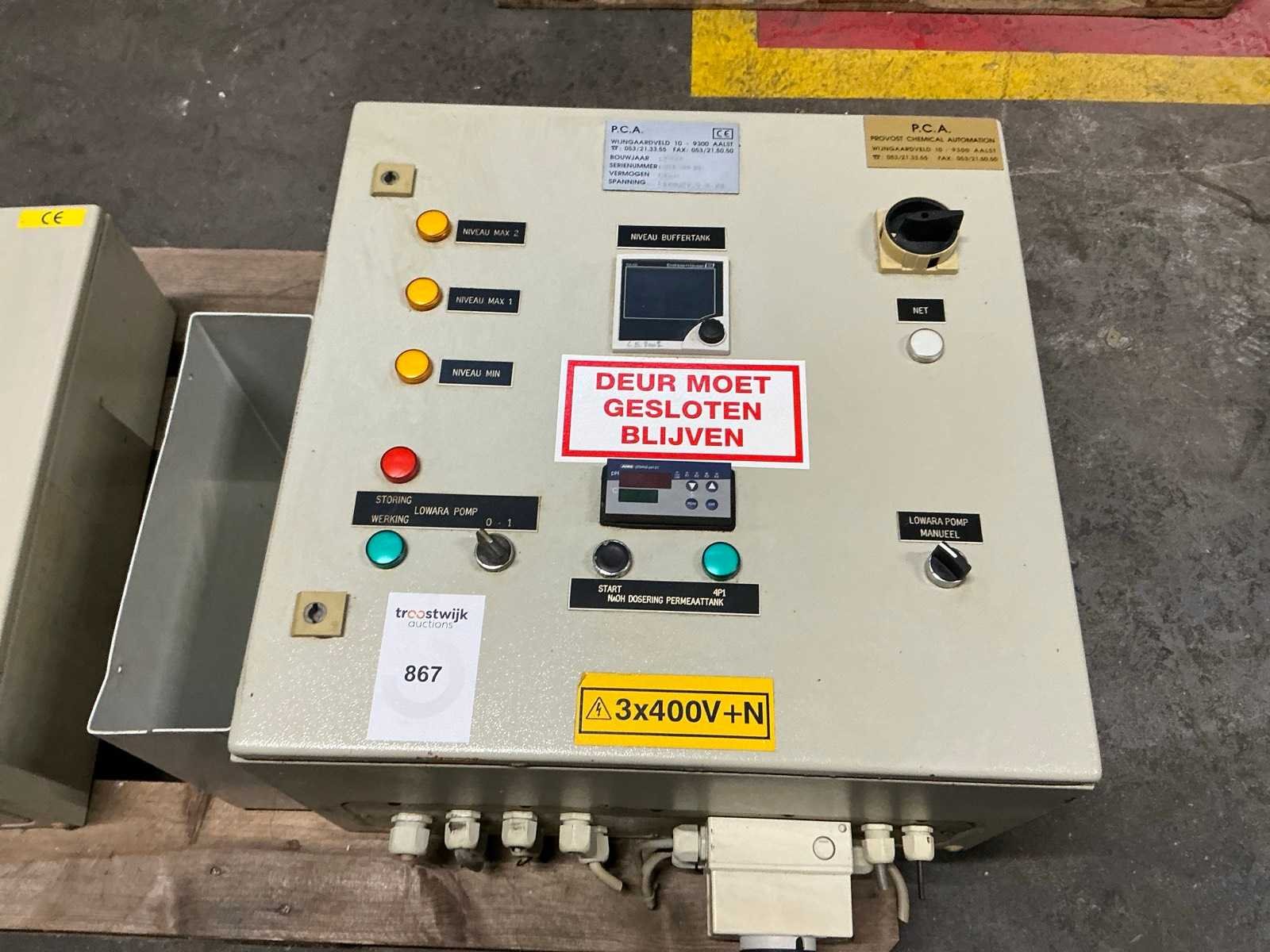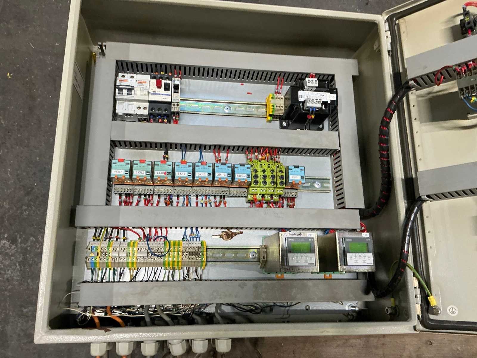 Inhoud bestaande uit knoppen, trafo’s, controllers, contactors, zekeringsautomaten,…. Nee