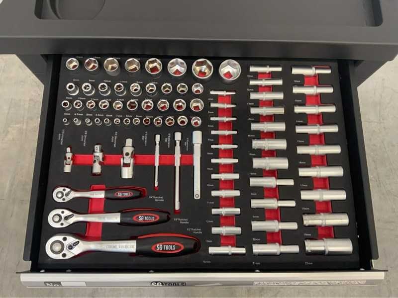 Werkblad; sleutel set; ongebruikt in verpakking; 4447; Nee Merk: SG Aantal laden: 7 Met inhoud: true Totale afmeting L: 780mm Totale afmeting Breedte: 470mm Totale afmeting Hoogte: 965mm