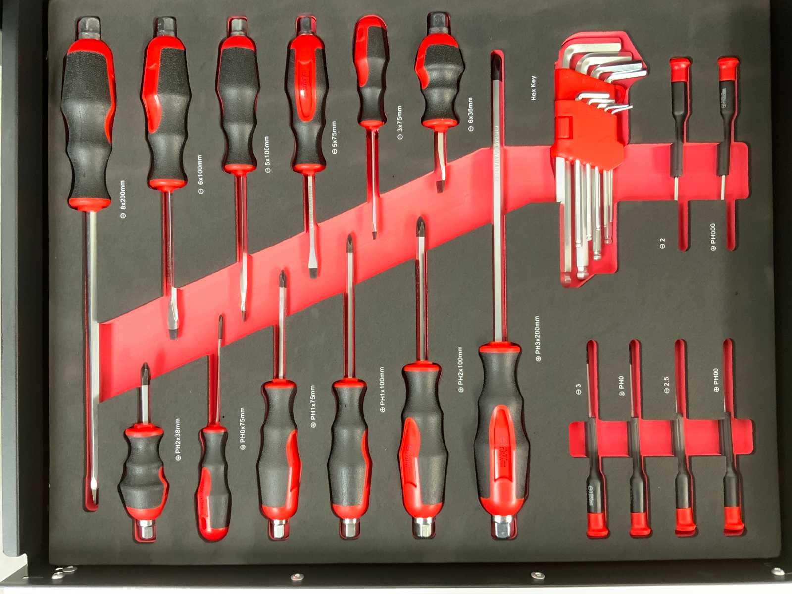 4 laden gevuld; verrijdbaar; afsluitbaar; lade 1 Doppenset 1/2” en 1/4” 4 tot en met 32 en toebehoren; Lade 2 steek ringsleutelset 8 tot en met 22 torx imbusset bitjes; lade 3 schroevendraaiers en imbusset; lade 4 tangen, hamer, pendrijvers; lade 4 & 5 zijn leeg voor opslag; 5769 Nee Merk: Everforce Aantal laden: 6 Met inhoud: true Totale afmeting L: 840mm Totale afmeting Breedte: 460mm Totale afmeting Hoogte: 830mm