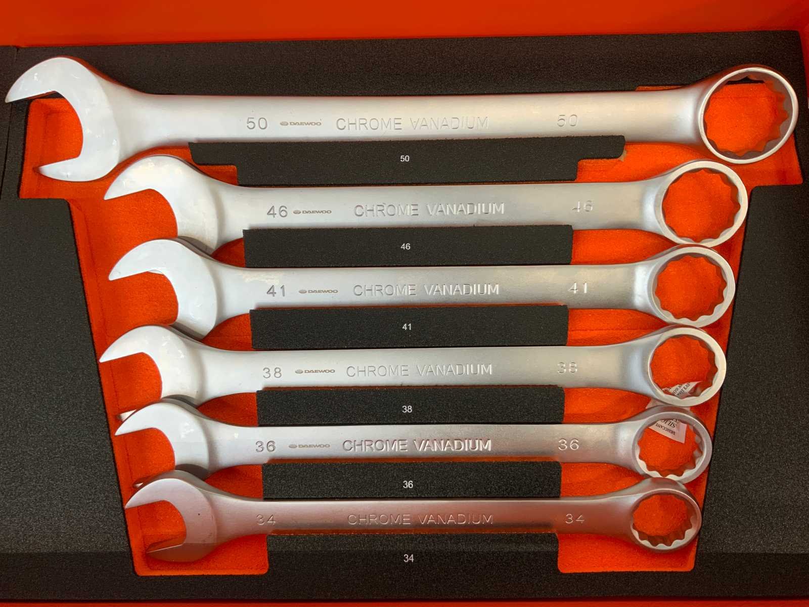 Ongebruikt; gereedschap in plastic verpakt; 12-delig tangenset; 13-delig hamerset; 14-delig meetset; 36-delig slagmoersleutel set; 21-delig sleutels met T-greep; 41-delig schroevendraaierset; 29-delig combinatiesleutels; 12-delig ringsleutels; 125-delig deppenset; 84-delig bitjes set; 6443 Nee Merk: Daewoo Type: DAMW387
