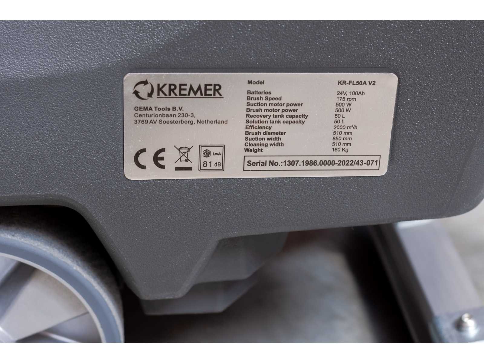 Zuigkracht 500w; borstelmotor 500w; borstel snelheid 175 rpm; tankinhoud 50+50 ltr; 2000 m3/h; met acculader; ongebruikt in doos; 2423; Nee Merk: Kremer Type: KR-FL50A Bouwjaar: 2025 Werkbreedte: 510mm Kilometerstand bij opname: 0hr Elektrisch: true Aansluiting: 24V Accu lader: true Oplaadbaar: true Eigen gewicht: 160kg Totale afmeting L: 1200mm Totale afmeting Breedte: 600mm Totale afmeting Hoogte: 1030mm