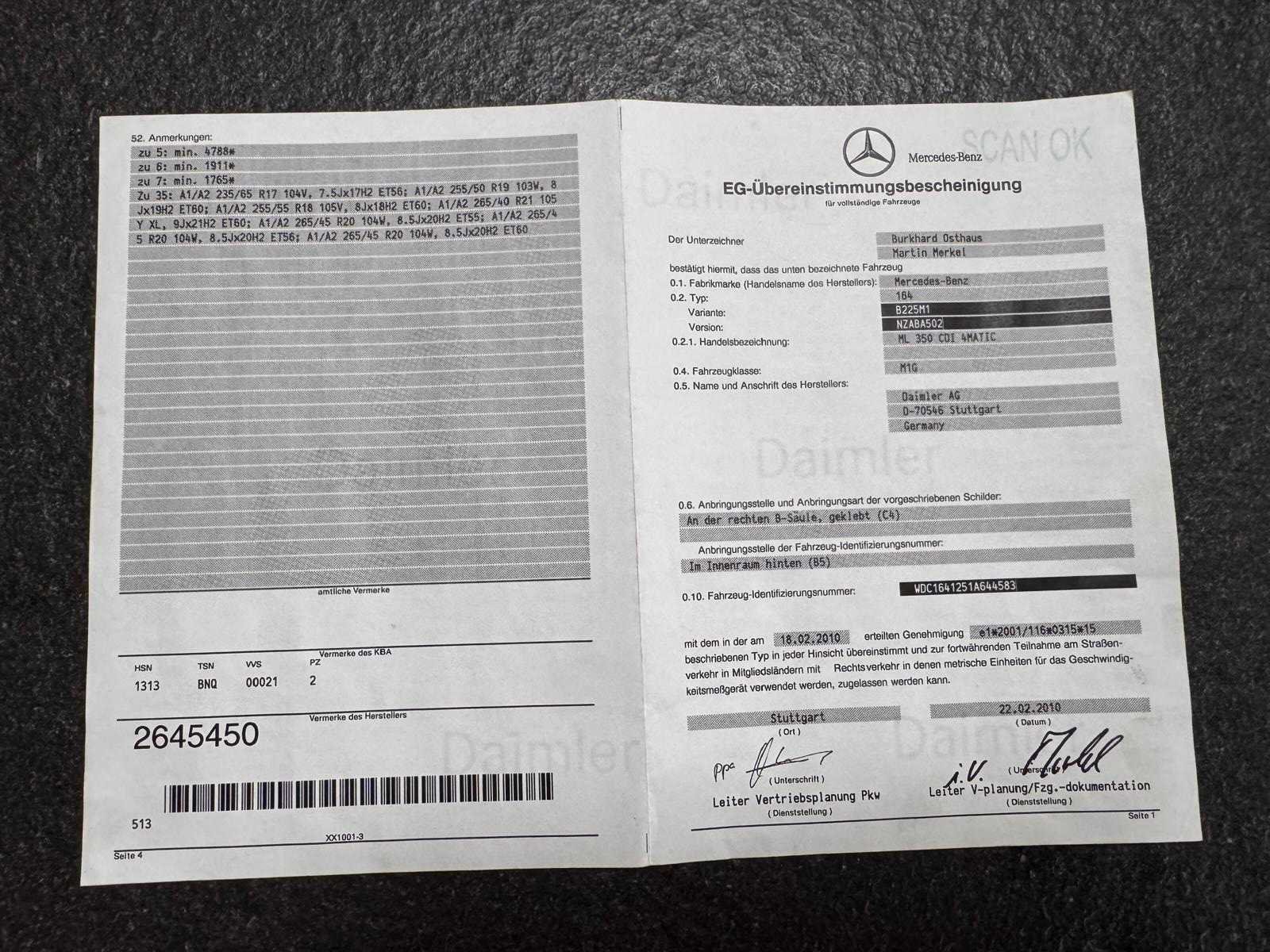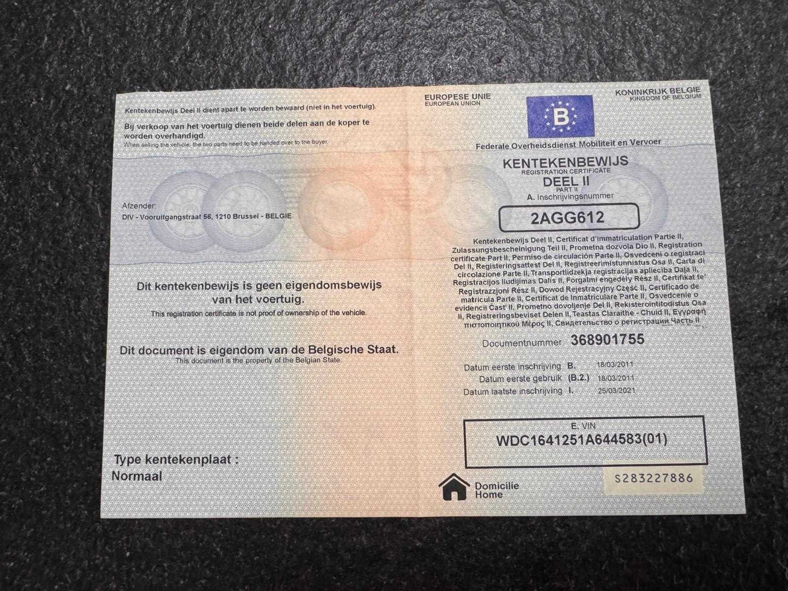 De wagen start en rijdt zonder problemen. Documenten aanwezig, zie foto’s voor verdere details. Nee Merk: Mercedes-Benz Model: ML 350 CDI Bouwjaar: 2011 Afgelezen kilometerstand: 393438km Cilinderinhoud: 2987cc Vermogen (kW): 170kW Brandstof: diesel Chassisnummer: WDC1641251A644583 Datum eerste toelating: 18/03/2011 Aantal zitplaatsen: 5 Kleur: Wit Transmissie: Automaat Emissieklasse: Euro 5 Aantal sleutels: 1 Nationaliteit documenten: België Start en rijdt: Ja Vavato voert geen technische keuring uit.: true Inschrijvingsbewijs - deel 1 : Aanwezig Inschrijvingsbewijs - deel 2: Aanwezig