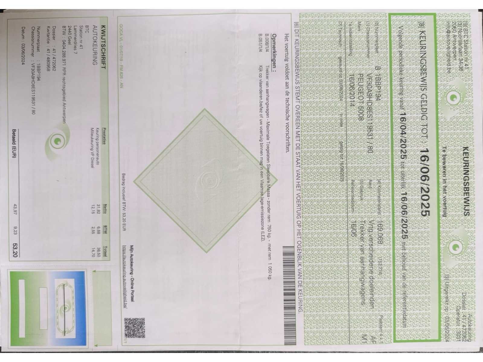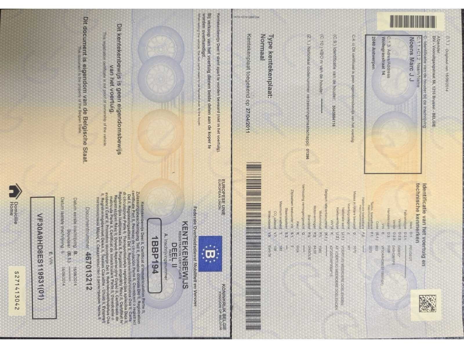 Peugeot 5008 van het bouwjaar 2014. De wagen start en rijdt zonder problemen. Documenten aanwezig, zie foto’s voor verdere details. Nee Merk: Peugeot Model: 5008 Bouwjaar: 2014 Afgelezen kilometerstand: 186457km Cilinderinhoud: 1560cc Vermogen (kW): 84kW Brandstof: diesel Chassisnummer: VF30A9HD8ES11953 Datum eerste toelating: 16/08/2014 Aantal zitplaatsen: 5 Kleur: Grijs Transmissie: Automaat Emissieklasse: Euro 5b Aantal deuren: 5 Nationaliteit documenten: België Start en rijdt: Ja Vavato voert geen technische keuring uit.: true Inschrijvingsbewijs - deel 1 : Aanwezig Inschrijvingsbewijs - deel 2: Aanwezig