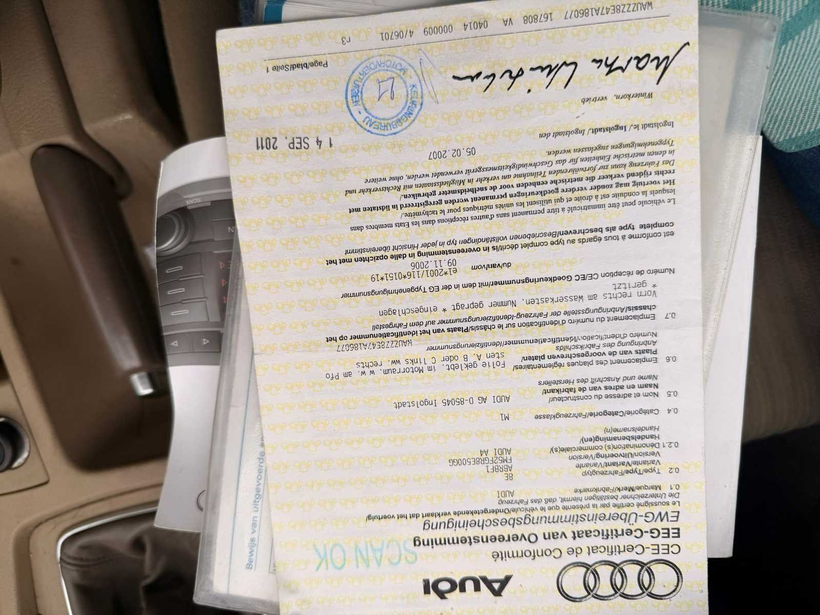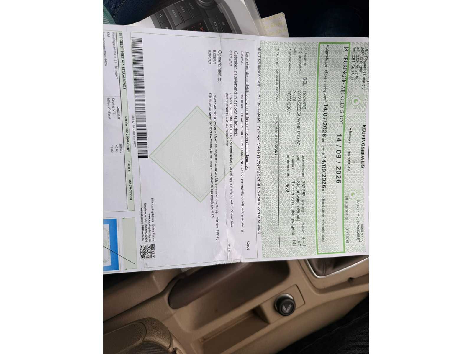 Nee Merk: Audi Model: A4 Bouwjaar: 2007 Afgelezen kilometerstand: 258517km Cilinderinhoud: 1896cc Vermogen (kW): 85kW Brandstof: diesel Datum eerste toelating: 20/03/2007 Transmissie: Handgeschakeld Nationaliteit documenten: Belgisch Start en rijdt: Ja startinformatie : Start en rijdt Inschrijvingsbewijs - deel 1 : Aanwezig Inschrijvingsbewijs - deel 2: Aanwezig