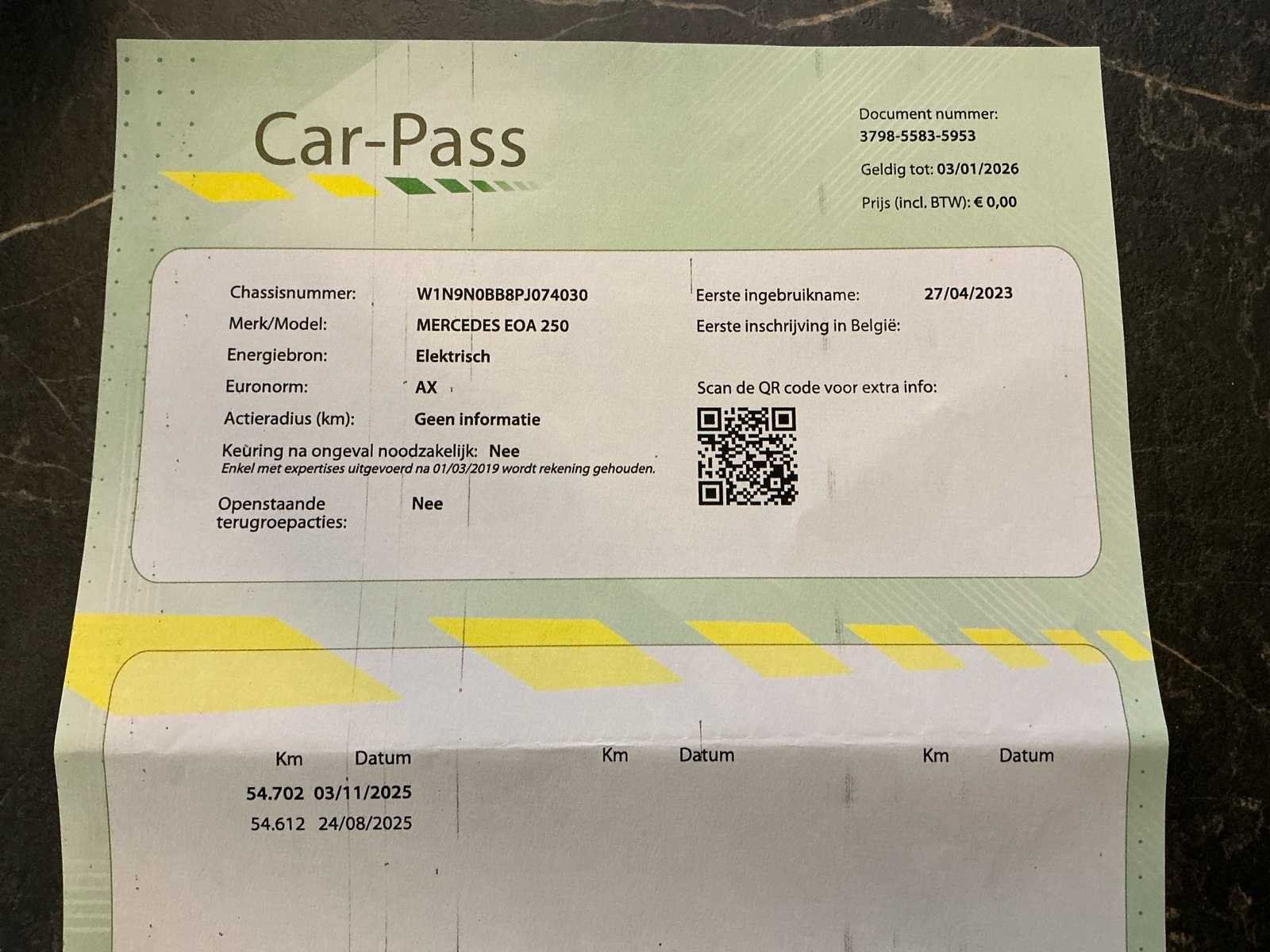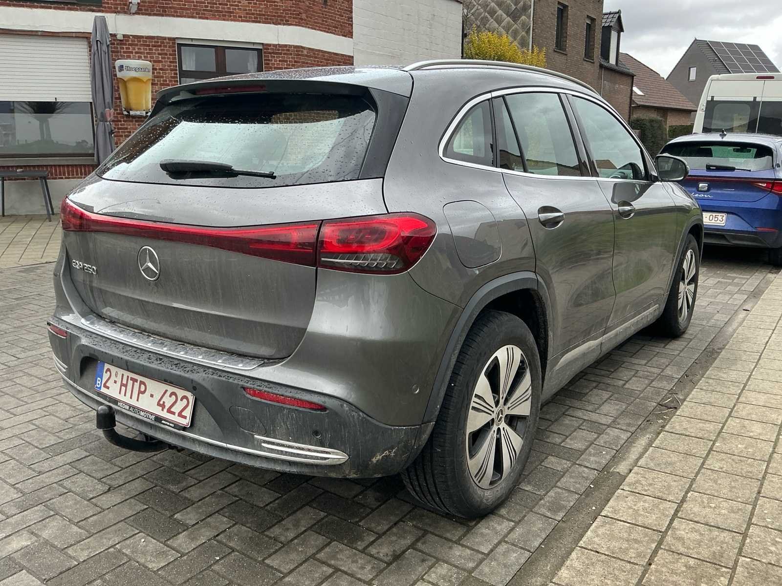 Mercedes-Benz EQA 250, een volledig elektrische premium SUV met eerste inschrijving op 27 april 2023. De wagen heeft een kilometerstand van 62.450 kilometer en combineert moderne elektrische mobiliteit met het comfort en de kwaliteit die men van Mercedes-Benz mag verwachten. Deze EQA 250 is uitgerust met een automatische transmissie en biedt een stille, soepele en krachtige rijervaring. Dankzij de verhoogde zitpositie en de comfortabele afstemming is het voertuig bijzonder geschikt voor zowel dagelijks gebruik als langere trajecten. De elektrische aandrijving zorgt voor lokaal emissievrij rijden en een aangenaam en verfijnd rijcomfort. Het interieur is modern en hoogwaardig afgewerkt. De wagen beschikt over een volledig digitaal instrumentenpaneel met specifieke EQ-weergave en een groot centraal infotainmentscherm met navigatiefunctie. Radio, media en Bluetooth-telefonie zijn geïntegreerd en worden bediend via de multifunctionele touchpad in de middenconsole. Verder is het voertuig voorzien van sfeerverlichting in het interieur, automatische klimaatregeling, elektrisch verstelbare en verwarmde zetels, een start/stop-knop, parkeerhulp en lichtmetalen velgen. De kenmerkende turbinevormige ventilatieroosters en de ambient lighting geven het interieur een eigentijdse en premium uitstraling. Daarnaast is deze wagen uitgerust met een automatisch in- en uitparkeersysteem, wat het manoeuvreren in krappe ruimtes aanzienlijk vergemakkelijkt en extra comfort biedt in stedelijke omgevingen. Aan de voorzijde is bovendien een dashcam aanwezig, wat zorgt voor extra veiligheid en registratie tijdens het rijden. Deze Mercedes-Benz EQA 250 vormt een bijzonder interessante opportuniteit voor wie op zoek is naar een recente, representatieve en volledig elektrische SUV met premium uitstraling, moderne technologie en extra comfortvoorzieningen. Het voertuig combineert comfort, veiligheid, functionaliteit en elektrische efficiëntie in één aantrekkelijk totaalpakket. No Merk: Mercedes-Benz Model: EQA 250 Bouwjaar: 2023 Afgelezen kilometerstand: 63450km Vermogen (kW): 140kW Brandstof: Elektriciteit Chassisnummer: W1N9N0BB8PJ074030 Datum eerste toelating: 27/04/2023 Vermogen (pk): 190hp Aantal zitplaatsen: 5 Kleur: Grijs Transmissie: Automaat Emissieklasse: AX Aantal deuren: 5 Aantal sleutels: 2 Nationaliteit documenten: België Gelijkvormigheidsattest aanwezig: true Carpass: true Start en rijdt: Ja Vavato voert geen technische keuring uit.: true Airconditioning: true Navigatie: true LED-koplampen: true Leder bekleed: true Inschrijvingsbewijs - deel 1 : Ja Inschrijvingsbewijs - deel 2: Ja