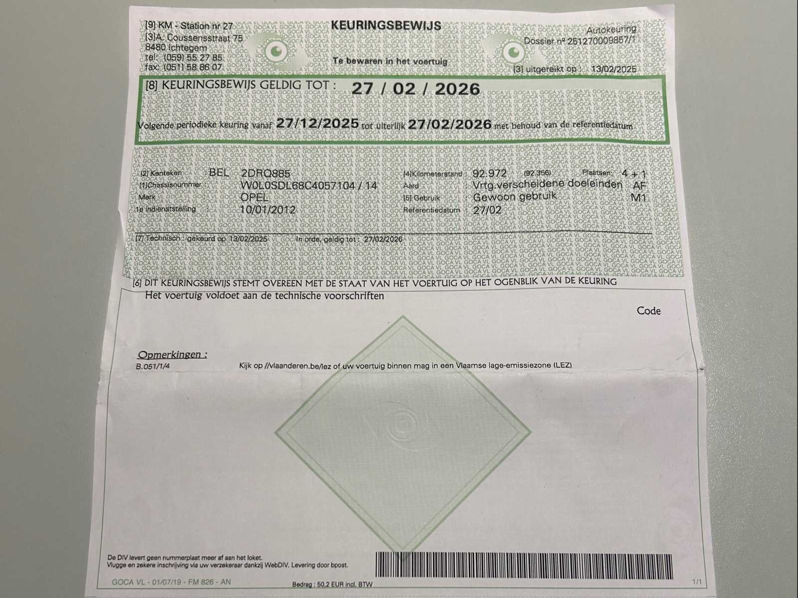 Deze Opel Corsa is een betrouwbare en praktische vijfdeurs hatchback die comfort, zuinigheid en gebruiksgemak perfect combineert. Het voertuig werd voor het eerst ingeschreven op 10 januari 2012 en beschikt over een geldige keuring tot 27 februari 2026. De kilometerstand bij laatste keuring bedroeg 92.972 km en de huidige tellerstand bedraagt circa 93.136 km. De wagen wordt geleverd met twee sleutels en de nodige boorddocumenten. Onder de motorkap bevindt zich een 1.2 benzinemotor met een vermogen van 63 kW (ca. 86 pk), gekoppeld aan een manuele versnellingsbak. Dankzij zijn lichte constructie en efficiënte motor is deze Corsa ideaal voor zowel stadsverkeer als langere ritten. De wagen voldoet aan de Euro 5-emissienorm. Het interieur is netjes en functioneel ingericht, met comfortabele stoffen zetels en plaats voor vijf personen. De wagen is uitgerust met onder meer airconditioning, multifunctioneel stuur, boordcomputer, elektrische ruiten vooraan, centrale vergrendeling, radio/CD-speler en lichtmetalen velgen. Alles is overzichtelijk en gebruiksvriendelijk opgesteld, wat zorgt voor een aangename rijervaring. Exterieur in zwarte metaalkleur met een tijdloos en sportief karakter. De carrosserie vertoont normale gebruikssporen in verhouding tot leeftijd en kilometerstand. De wagen start en rijdt. Deze Opel Corsa is een uitstekende keuze voor wie op zoek is naar een betaalbare, praktische en betrouwbare wagen met geldige keuring op lange termijn. Ideaal als eerste wagen, tweede gezinswagen of voor dagelijks woon-werkverkeer. No Merk: Opel Model: Corsa Bouwjaar: 2012 Afgelezen kilometerstand: 93136km Cilinderinhoud: 1229cc Vermogen (kW): 63kW Brandstof: Benzine Chassisnummer: W0L0SDL68C4057104 Datum eerste toelating: 10/01/2012 Vermogen (pk): 86hp Aandrijving: Vooraan Aantal zitplaatsen: 5 Kleur: Zwart Transmissie: Manueel Emissieklasse: Euro 5 Aantal deuren: 5 Aantal sleutels: 2 Aantal cilinders: 4 Nationaliteit documenten: België Gelijkvormigheidsattest aanwezig: true Carpass: true Start en rijdt: Ja Self drive export possible : true Vavato voert geen technische keuring uit.: true Inschrijvingsbewijs - deel 1 : Ja Inschrijvingsbewijs - deel 2: Ja