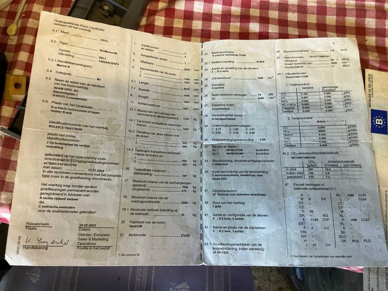 Deze Opel Meriva 1.6 benzine uit 2005 is een praktische en veelzijdige monovolume met vijf zitplaatsen en een betrouwbare 1.6 liter benzinemotor (74 kW). De wagen biedt een comfortabele instap, een overzichtelijke zitpositie en een flexibel interieur dat zich uitstekend leent voor zowel gezinsgebruik als dagelijks woon-werkverkeer. Het voertuig heeft een kilometerstand van circa 209.168 km en is uitgerust met manuele versnellingsbak. Dankzij zijn compacte buitenafmetingen en ruime binnenruimte combineert deze Meriva gebruiksgemak met functionaliteit. Carrosserie vertoont gebruikssporen overeenkomstig leeftijd en kilometerstand, waaronder krassen en lichte beschadigingen aan bumpers en wielkasten (zie foto’s). Interieur in gebruikte staat. Wordt aangeboden met Belgisch kentekenbewijs. Ideaal als betaalbare gezinswagen, startersauto of handige tweede wagen. Nee Merk: Opel Model: Meriva Bouwjaar: 2005 Afgelezen kilometerstand: 209168km Cilinderinhoud: 1598cc Vermogen (kW): 74kW Brandstof: benzine Chassisnummer: W0L0XCE7554170628 Datum eerste toelating: 14/03/2005 Aantal zitplaatsen: 5 Kleur: Grijs Transmissie: Handgeschakeld Emissieklasse: Euro 4 Nationaliteit documenten: België Gelijkvormigheidsattest aanwezig: true Start en rijdt: Ja Vavato voert geen technische keuring uit.: true Inschrijvingsbewijs - deel 1 : Aanwezig Inschrijvingsbewijs - deel 2: Aanwezig