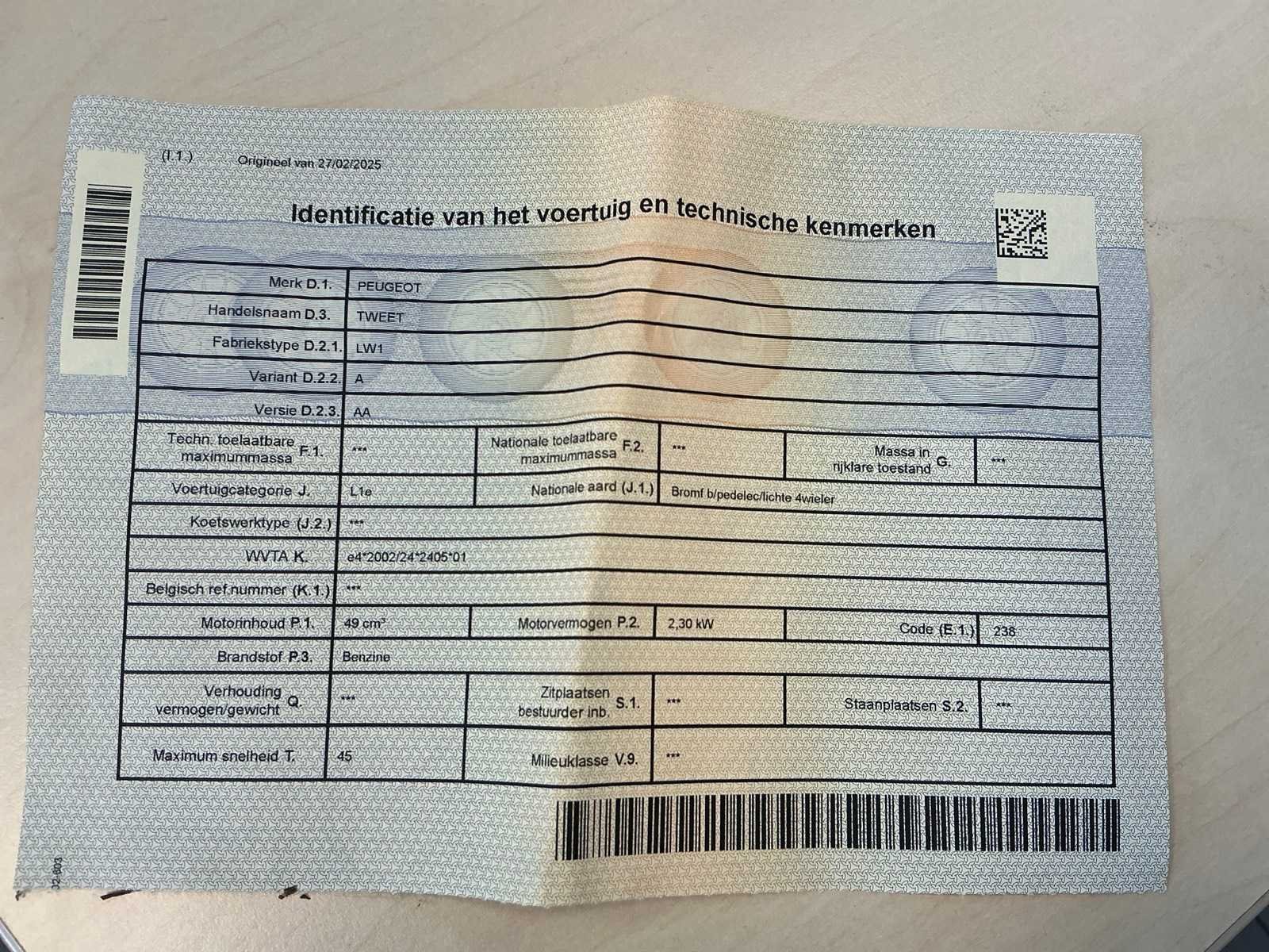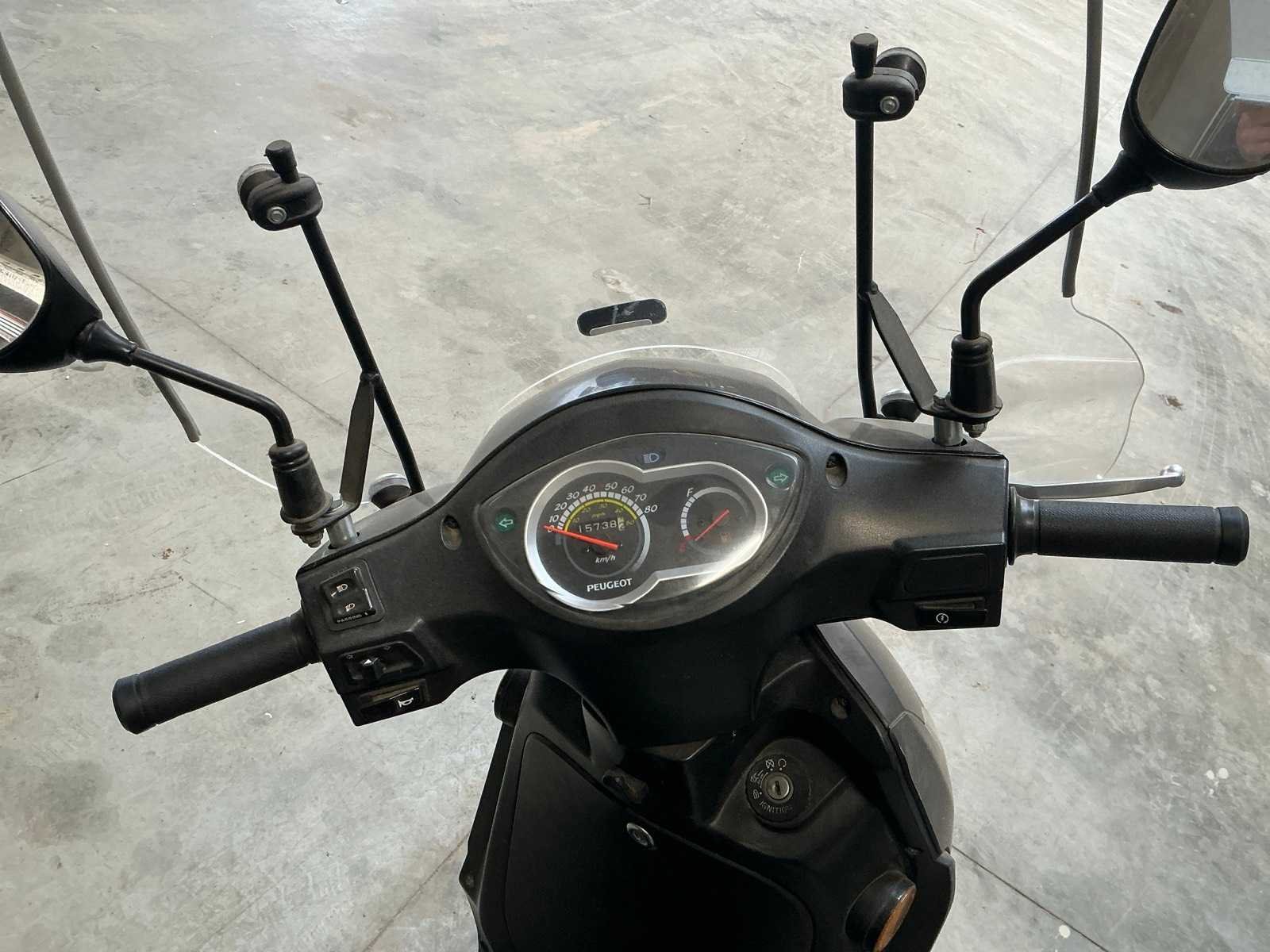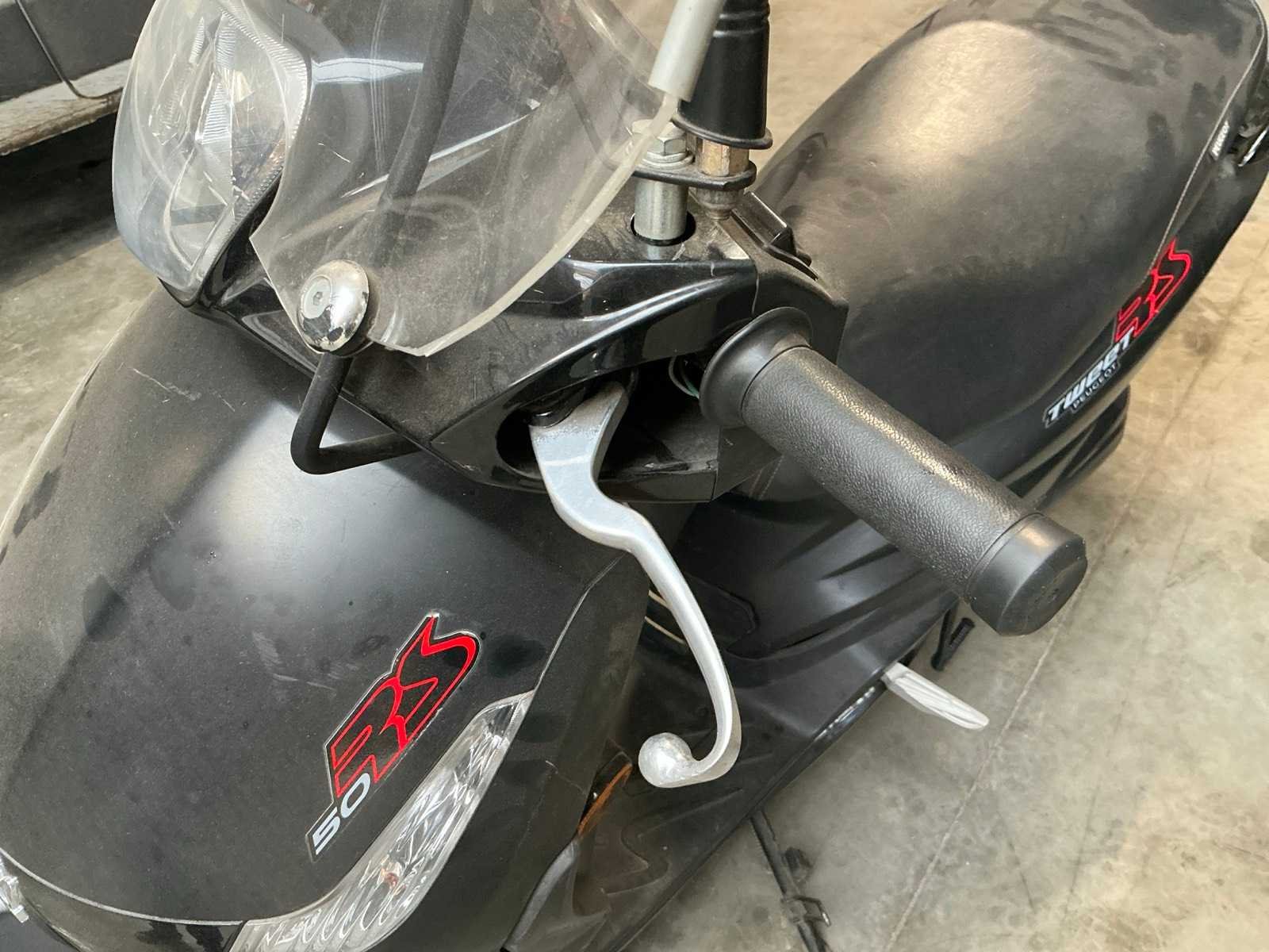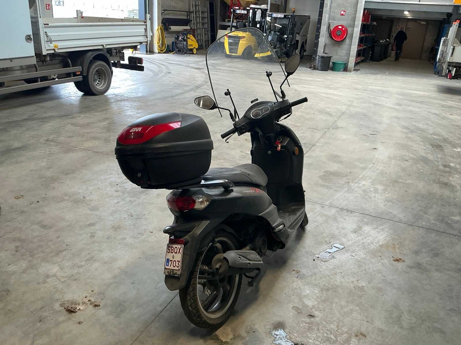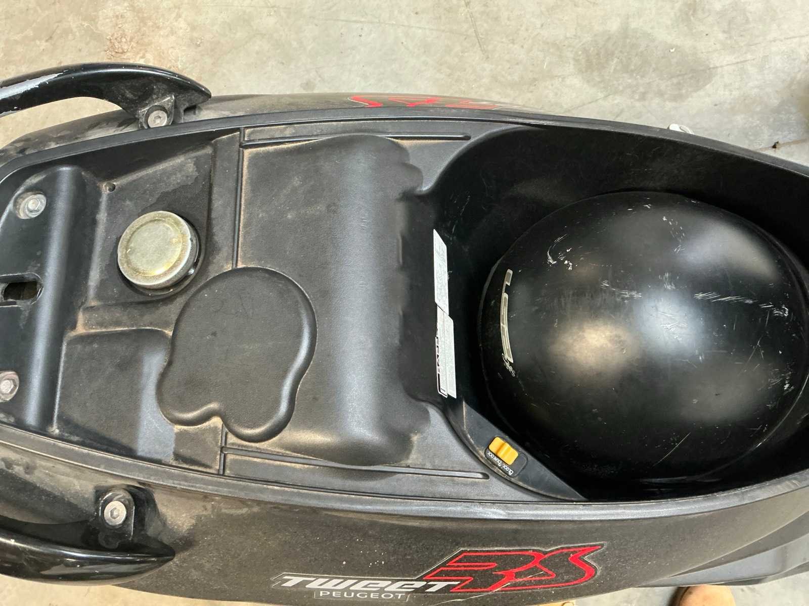 Peugeot Tweet 50 RS scooter – 45 km/u – Bouwjaar 2011 Peugeot Tweet 50 RS scooter in zwarte uitvoering, voorzien van benzinemotor en automatische transmissie. Maximale snelheid 45 km/u. Uitgerust met hoog windscherm en topkoffer achteraan voor extra opbergruimte. Ideaal voor woon-werkverkeer of stadsgebruik. Staat van gebruik en eventuele gebruikssporen met valschade zichtbaar op de foto’s. Kenteken en documenten conform. Nee Merk: Peugeot Model: tweet 50 RS Snelheid: 45km/h Datum eerste toelating: 01/12/2011 Bouwjaar: 2011 Brandstof: Benzine Kleur: Zwart Afgelezen kilometerstand: 15738km