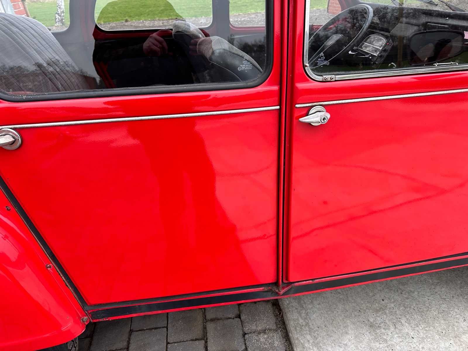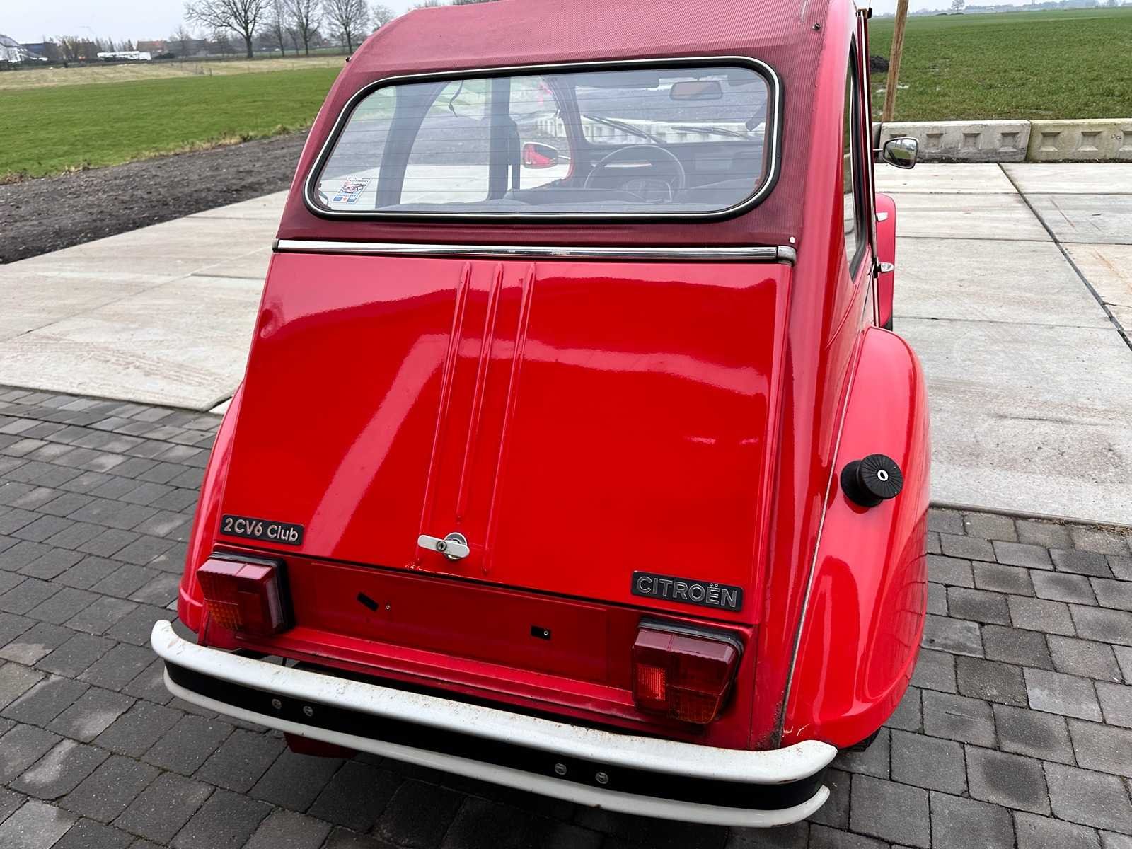 Eerste eigenaar tot 09/2025. Eerste lak. Auto rijdt en remt prima. APK tot 11/2025. No Merk: Citroen Type: 2CV6 Club Bouwjaar: 30-10-1987 Chassisnummer: VF7AZKA00KA295865 Afgelezen kilometerstand: 38136 Datum eerste inschrijving: 30-10-1987 Boorddocumenten aanwezig?: true Kentekenpapieren compleet?: true Transmissie: Manueel Vermogen (pk): 34 Aantal deuren: 4 Aantal zitplaatsen: 4 Aantal sleutels: 1 Startinformatie: start Kleur: rood Cilinderinhoud: 600 Aantal cilinders: 2