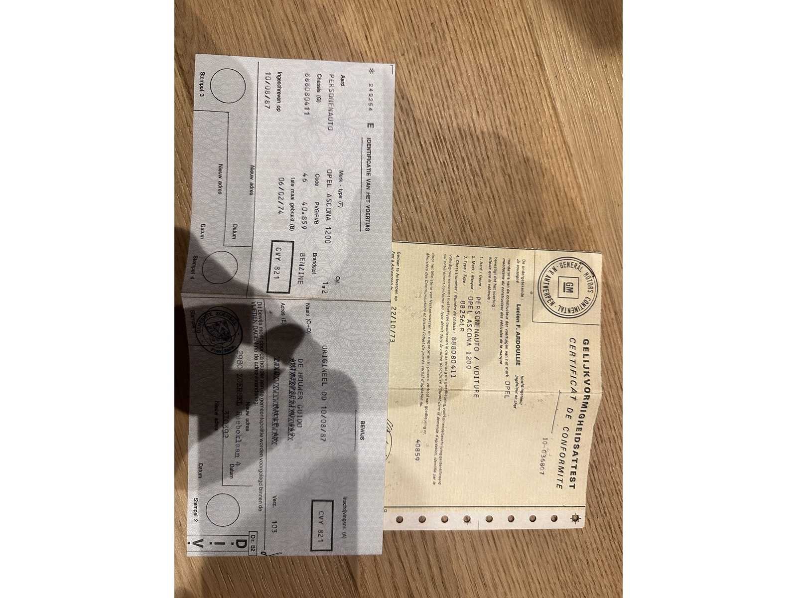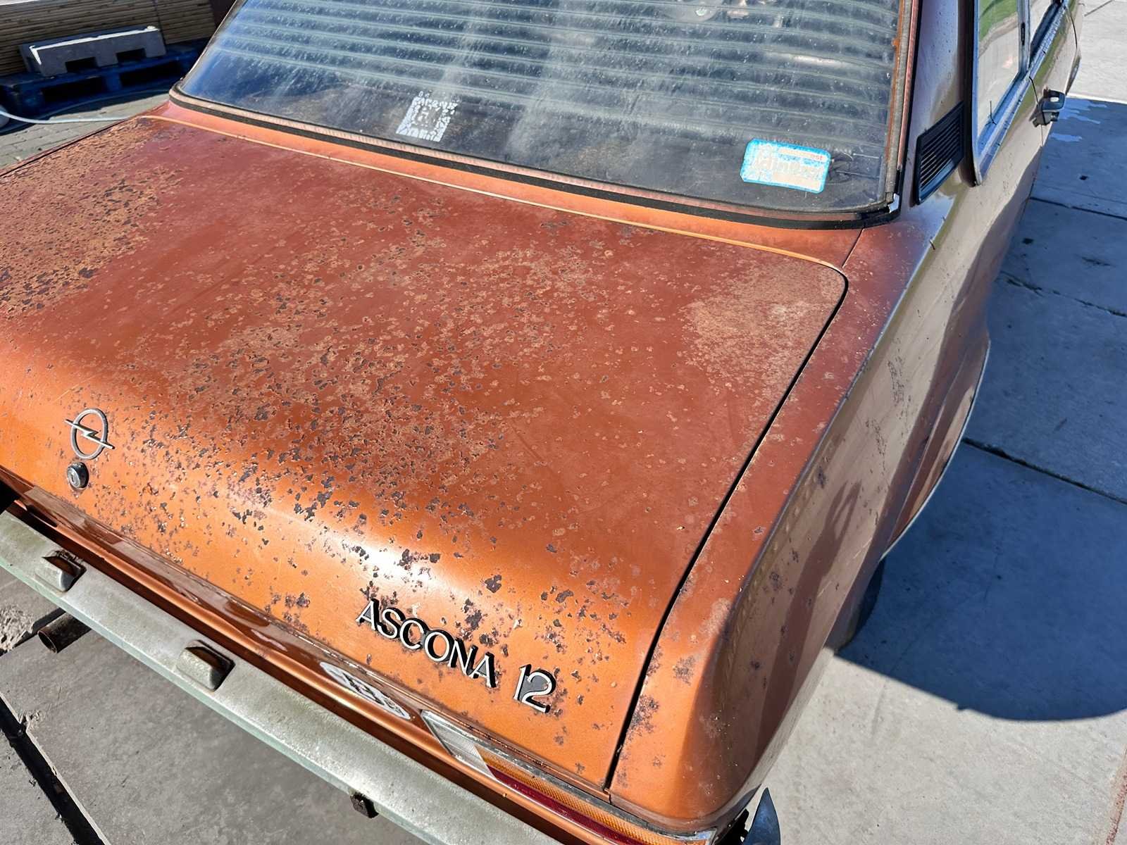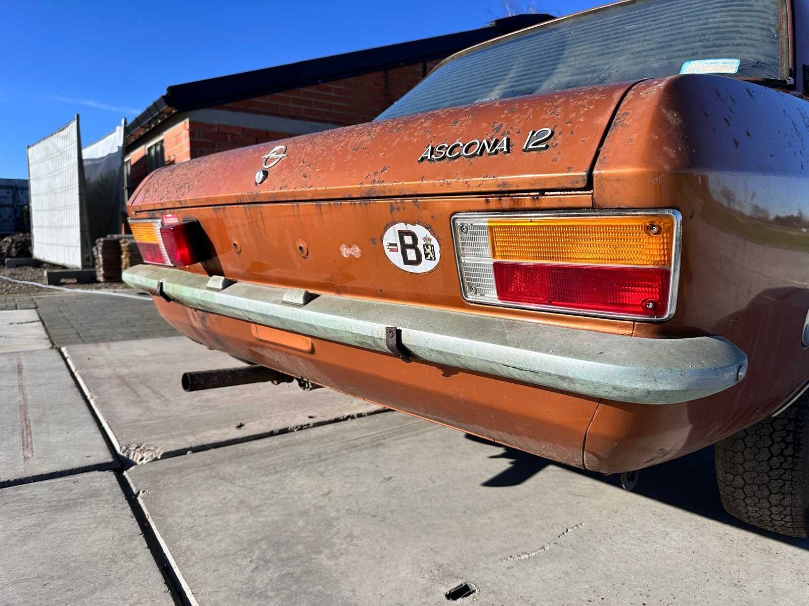 Project auto. In algemeen redelijke staat. Originele lak. Staat motor niet gekend. Belgische papieren. No Merk: Opel Type: Ascona 1.2 Bouwjaar: 1974 Chassisnummer: 888080411 Brandstof: benzine Datum eerste inschrijving: 06-02-1974 Datum eerste toelating: 06-02-1974 Boorddocumenten aanwezig?: true Carrosserie: 2 deur sedan Transmissie: manueel Vermogen (pk): 60 Aantal deuren: 2 Aantal zitplaatsen: 4 Aantal sleutels: 1 Startinformatie: nee Kleur: goud Cilinderinhoud: 1200 Aantal cilinders: 4 Inschrijvingsbewijs - deel 1 : ja Inschrijvingsbewijs - deel 2: ja Gelijkvormigheidsattest aanwezig: true