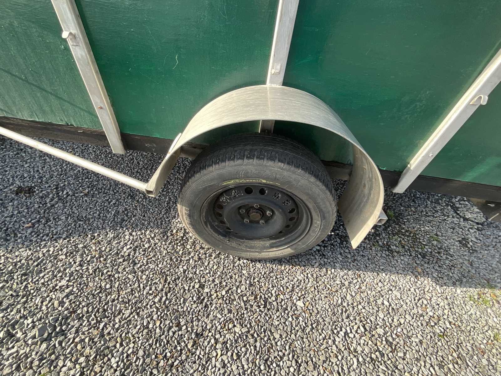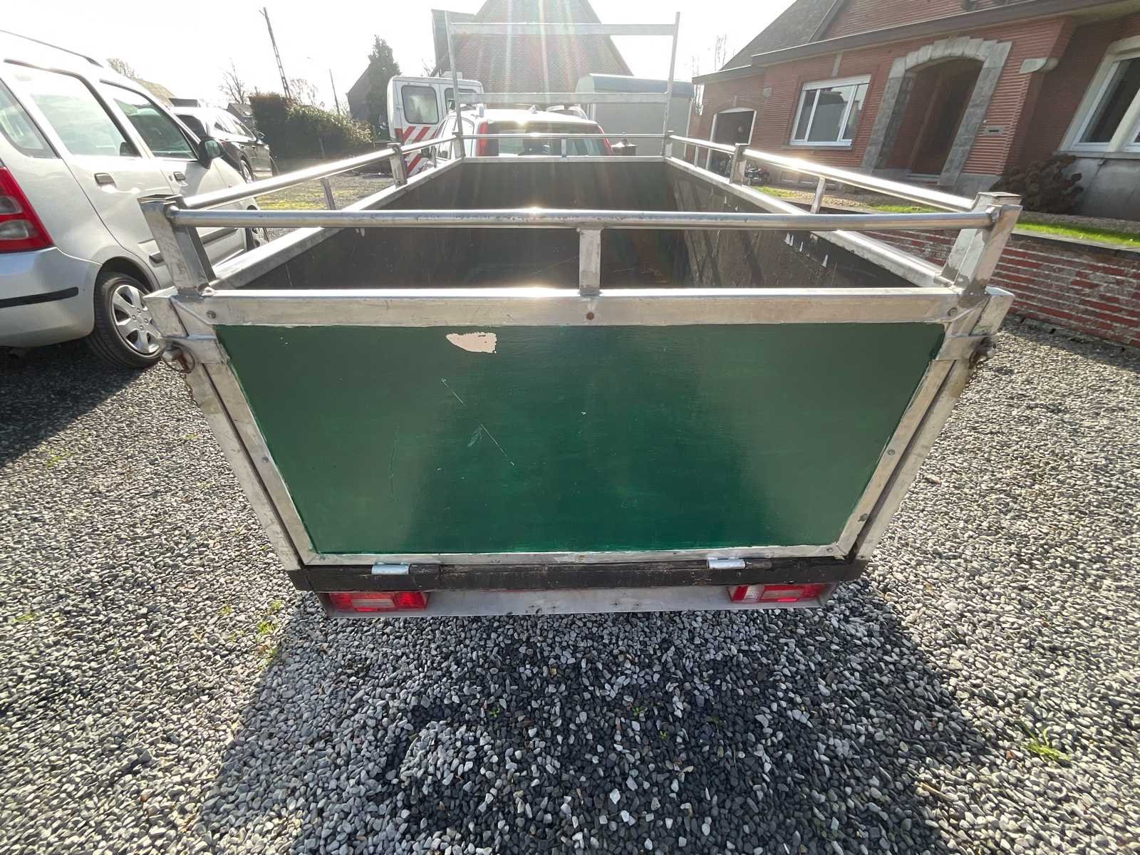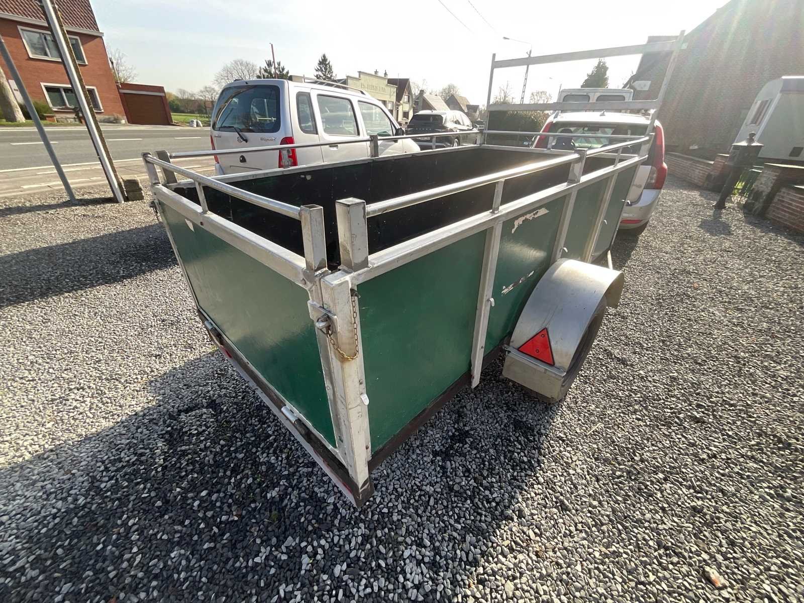 Enkelassige utility-aanhanger met verlengstukken Enkelassige utility-aanhanger uitgerust met vaste zijpanelen en een bovenste buisconstructie. Uitrusting: Gegalvaniseerd chassis Paneelzijwanden Metalen bovenbouw (ideaal voor zeil of bulky load) Stijve vloer Metalen spatborden Jockeywiel Standaard trekhaak Voorin gemonteerd reservewiel Status: Trailer in gebruikte staat met normale gebruikstekenen: krassen, lakafbladders en lichte sporen van oxidatie. Interieur met gebruiksmerken. Banden in gebruikte staat (zie foto's). No