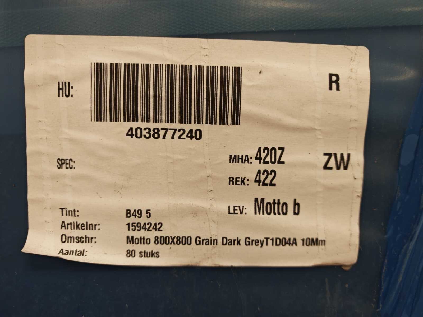 Nee Merk: Mosa Kleur: Dark Grey Afwerking: Mat R10 Lengte: 800mm Breedte: 800mm Dikte: 10mm Materiaal: Keramiek Type: Vloertegel Model: Grain T1D04A Aantal m² per verpakking: 1.28m² Aantal pakken: 40 Totaal oppervlakte: 51.2m² Totaal gewicht: 1100kg