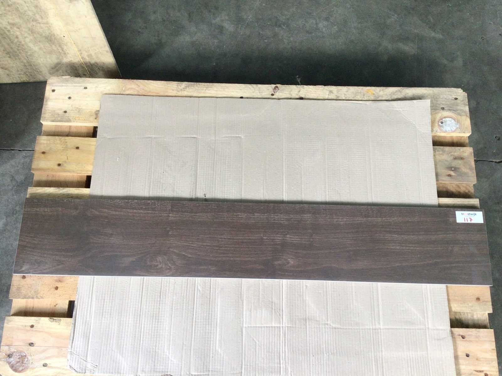 Nee Merk: Villeroy&Boch Kleur: Caviar Afwerking: Mat Lengte: 200mm Breedte: 1200mm Dikte: 10mm Materiaal: Keramiek Type: Vloertegel Model: Oak park 2792HR90 Style: Houtlook Aantal m² per verpakking: 0.96m² Aantal pakken: 30 Totaal oppervlakte: 28.8m² Totaal gewicht: 600kg