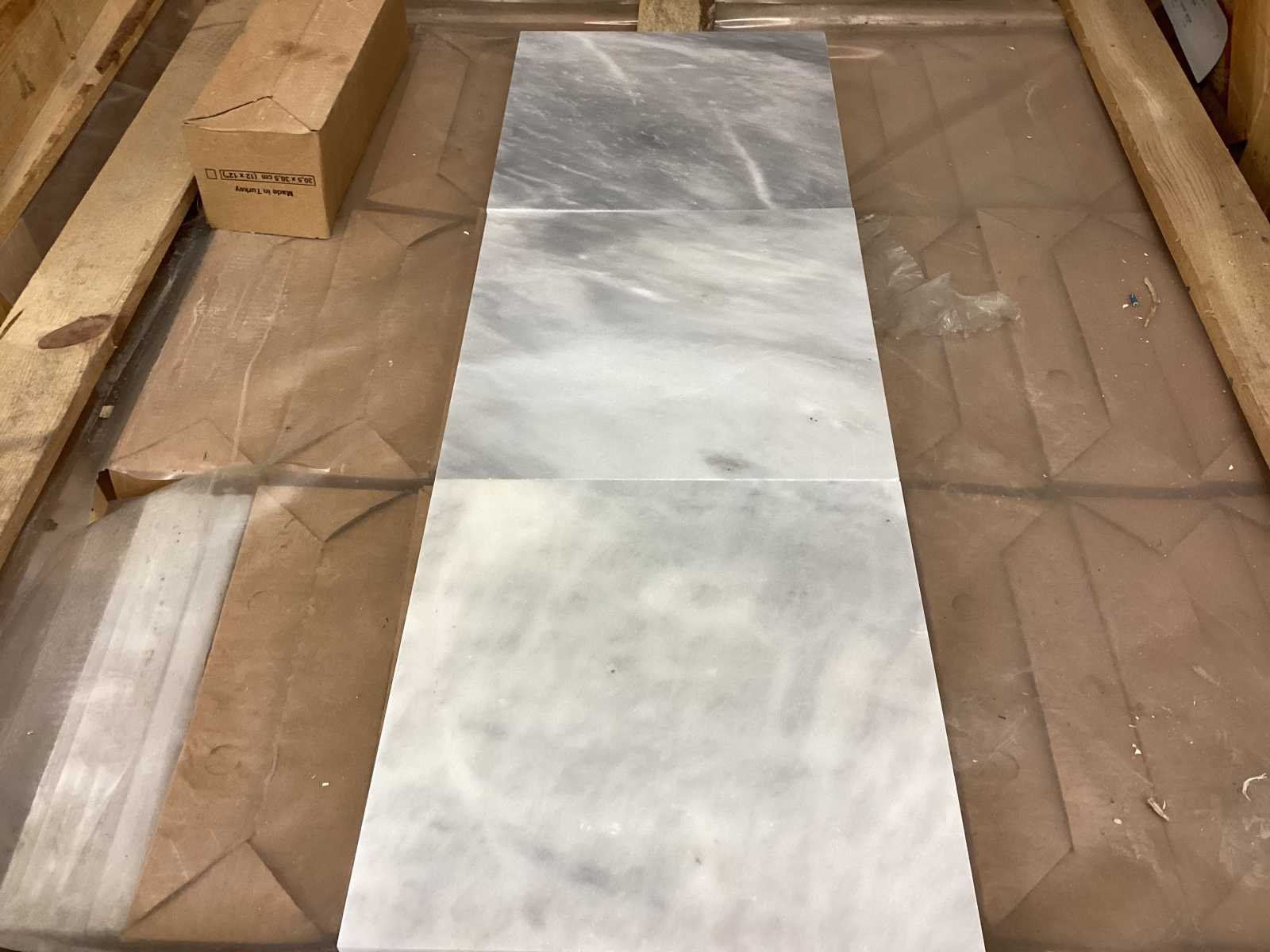 Nee Merk: Natuursteen Kleur: Light Blauw Afwerking: Gezoet Lengte: 305mm Breedte: 305mm Dikte: 10mm Materiaal: Marmer Type: Vloertegel Model: Allure Light Classic Aantal m² per verpakking: 1m² Aantal pakken: 22 Totaal oppervlakte: 22.32m² Totaal gewicht: 600kg