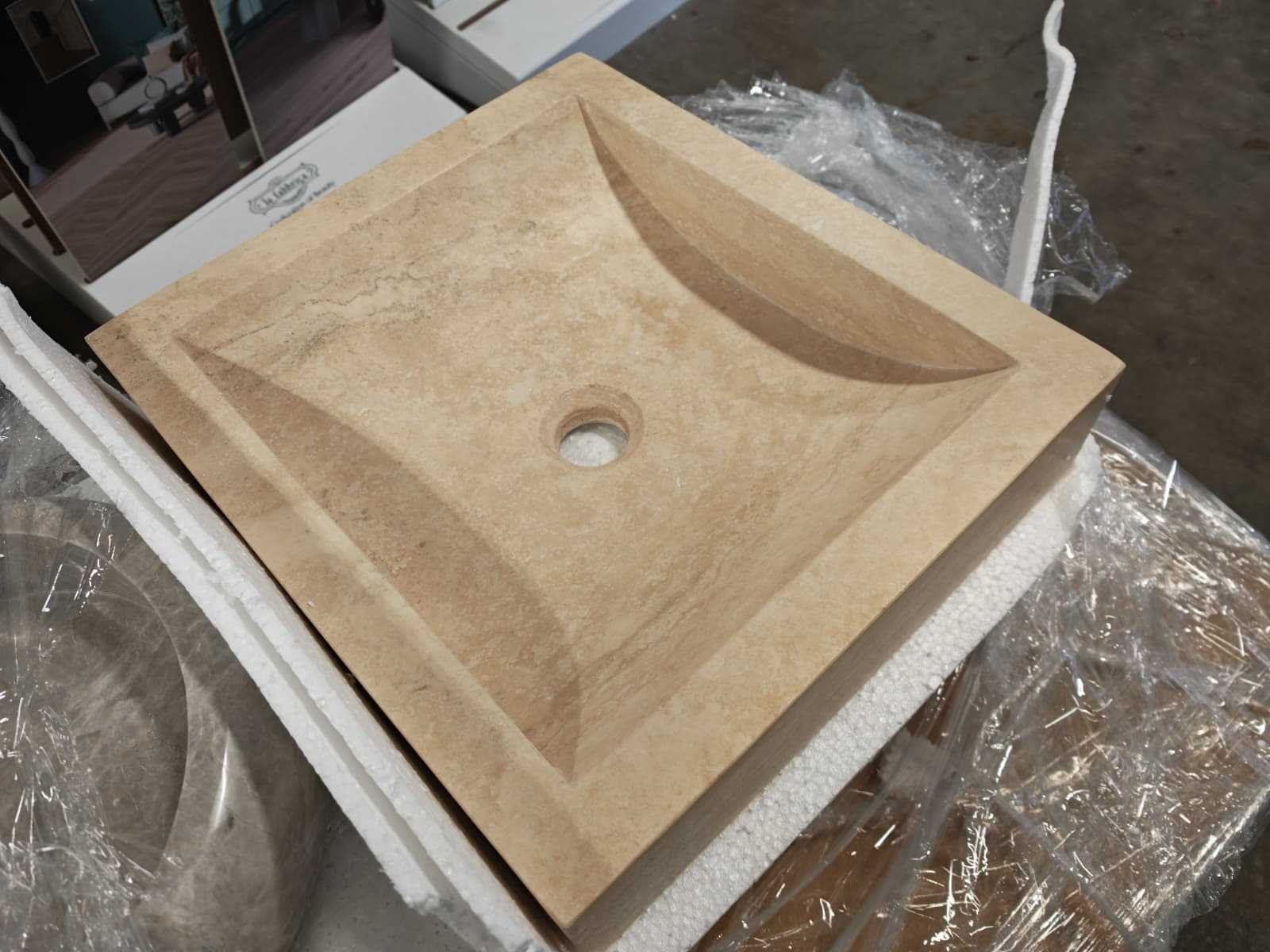 No Merk: Natuursteen Product type: Wastafel Kleur: Beige Lengte: 40cm Breedte: 45cm Hoogte: 10cm Materiaal: Light Travertin