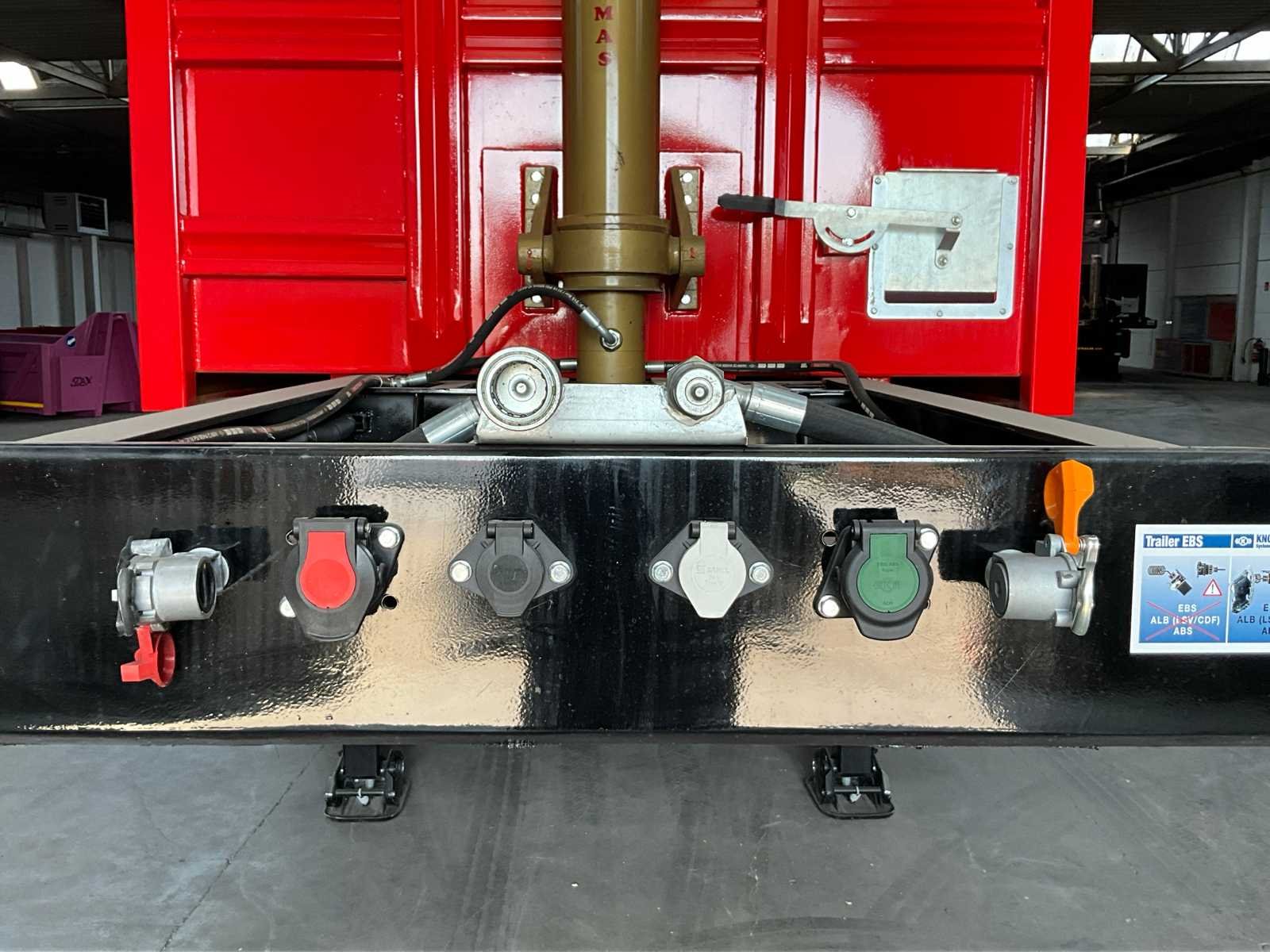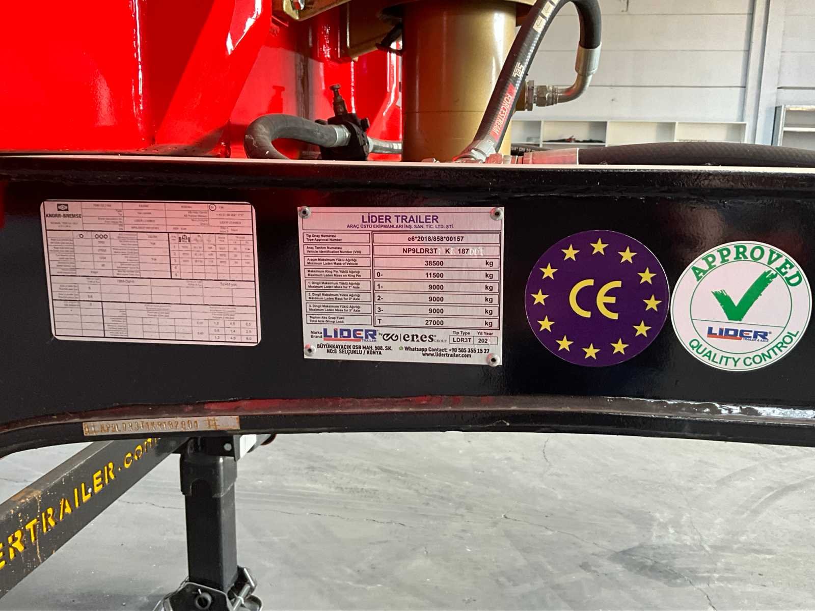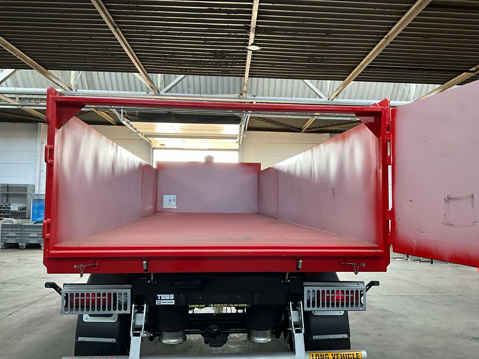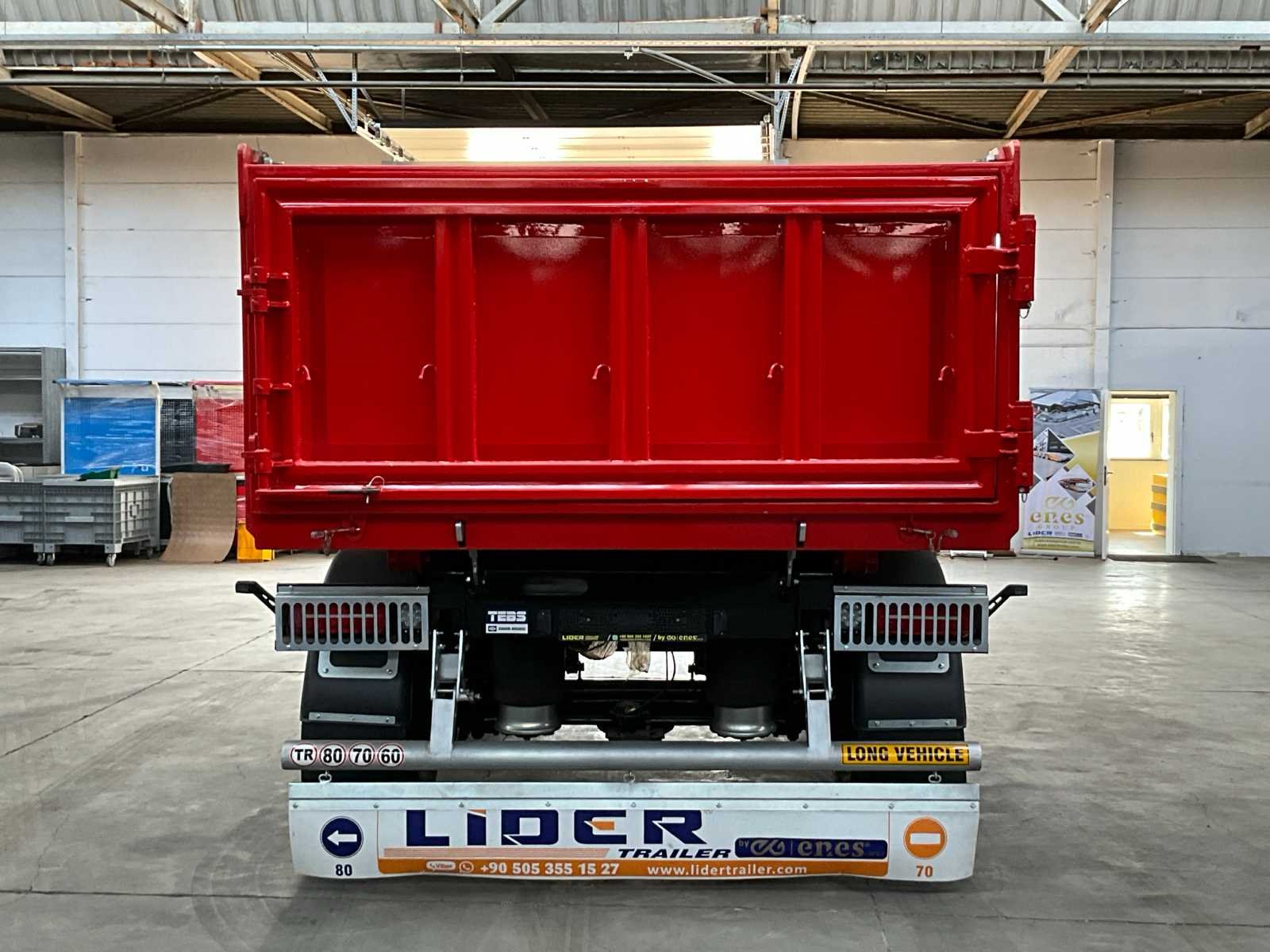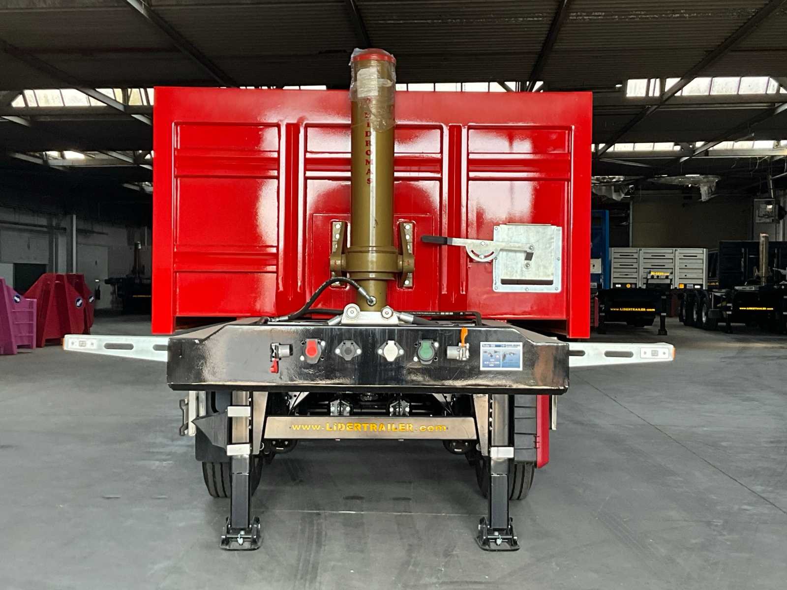 Nieuwe Lider LDR3T Rood Hydraulische Kipper voor vrachtwagen van het bouwjaar 2024. De kipper is nieuw. De kipper heeft aan elke zijde, zowel links als rechts 1 paneel die afzonderlijk open kan, achteraan 1 grote klep voorzien die open kan. Documenten aanwezig. Stuuras achteraan, liftas vooraan. Chassisnummer: NP9LDR3T1KR187001 Voor meer info en details zie foto’s en documenten. Nee Merk: Lider Type: LDR3T Bouwjaar: 2024 Aantal assen: 3 Bandenmaat: 385/65R22,5 Max. snelheid: 80km/h Luchtdrukremmen: true Stuuras: true Eigen gewicht: 5500kg Totale afmeting L: 7000mm Totale afmeting Breedte: 2500mm