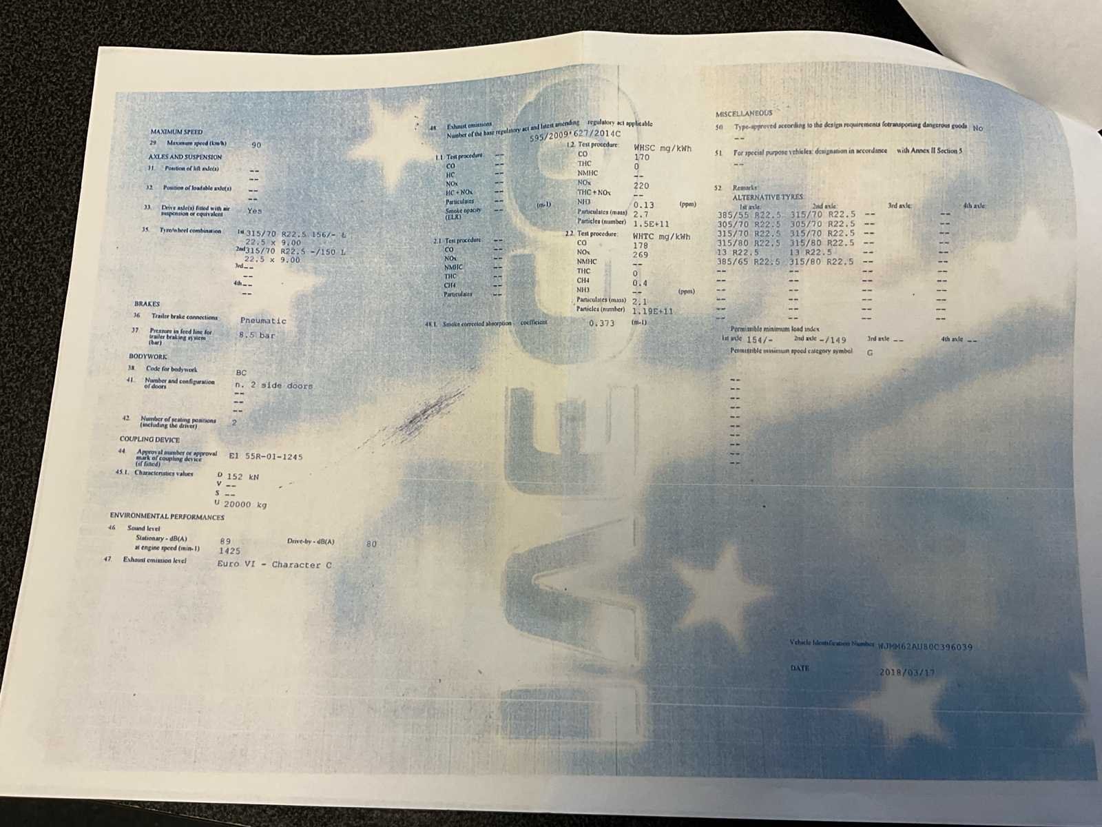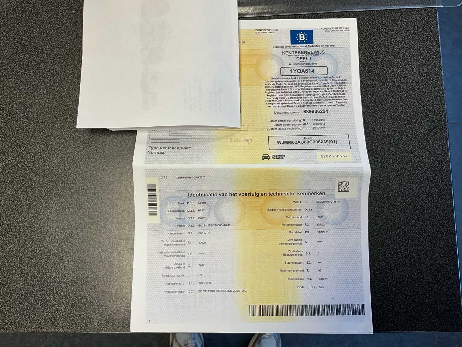 De vrachtwagen start en rijdt zonder problemen. Documenten aanwezig, zie foto’s voor meer details. De vrachtwagen heeft hydraulic op pto en luchtcompressor op pto. No Merk: Iveco Type: AS440T/P Bouwjaar: 2018 Chassisnummer VIN: WJMM62AU80C396039 Cilinderinhoud: 12882cc Kilometerstand bij opname: 225130km Datum eerste toelating: 17/05/2018 Fuel Type: Diesel Nationaliteit documenten: Belgie