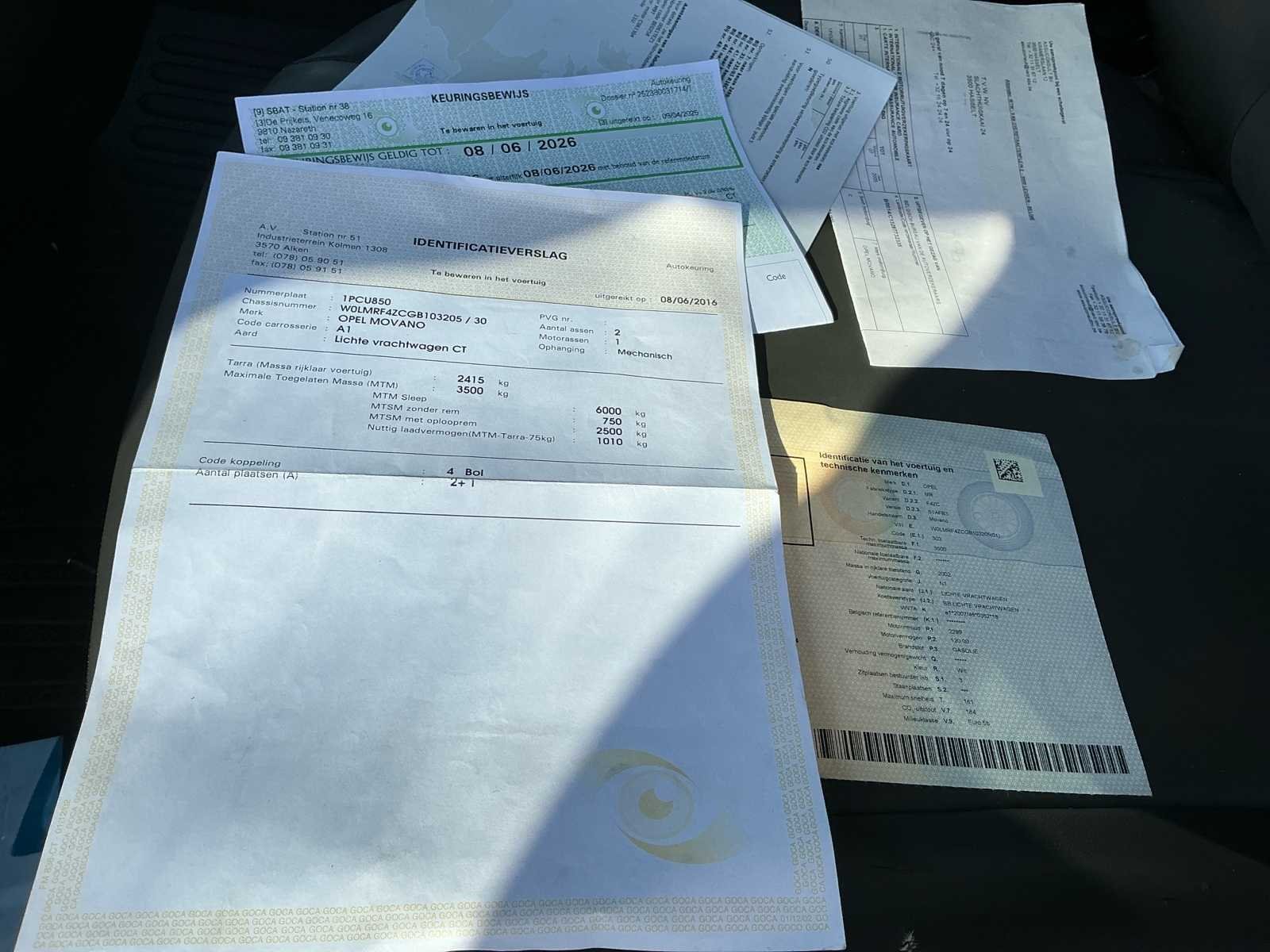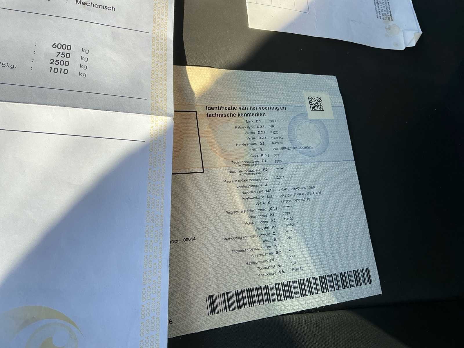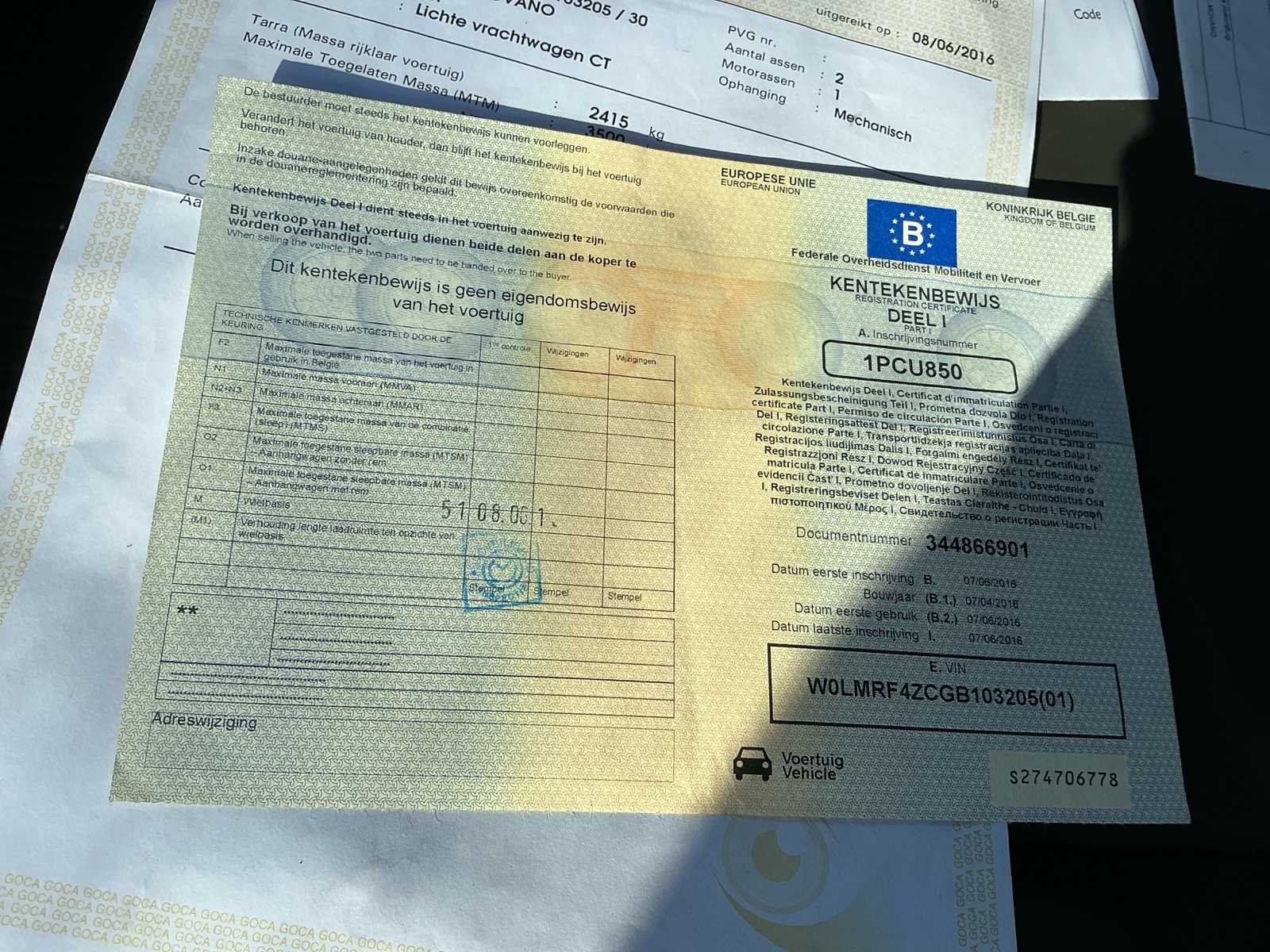 No Merk: Opel Type: Movano BiTurbo Bouwjaar: 2016 Chassisnummer: W0LMRF4ZCGB103205 Afgelezen kilometerstand: 227527km Cilinderinhoud: 2299cc Vermogen (kW): 120kW Brandstof: Diesel Aantal zitplaatsen: 3 Nationaliteit documenten: België Aantal sleutels: 1 Energielabel: Euro 5b Kentekenpapieren compleet?: true Boorddocumenten aanwezig?: true Onderhoudshistorie: Aanwezig