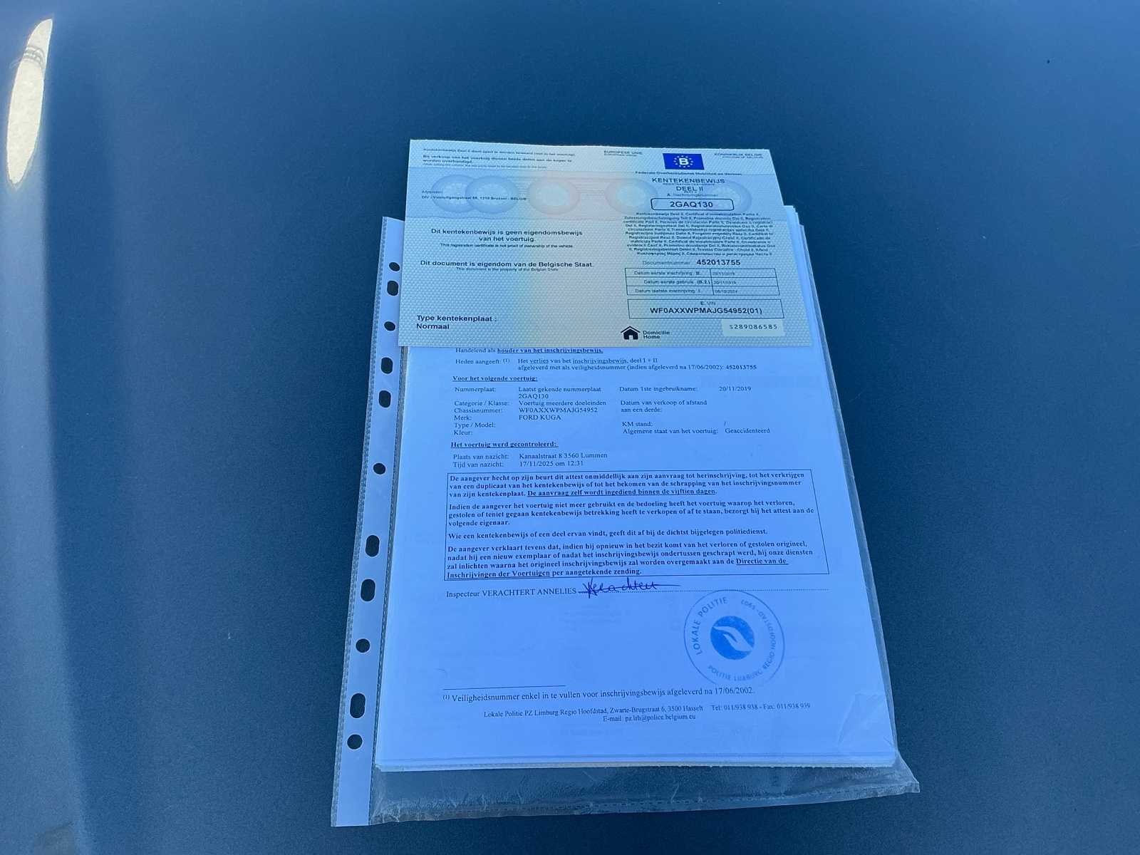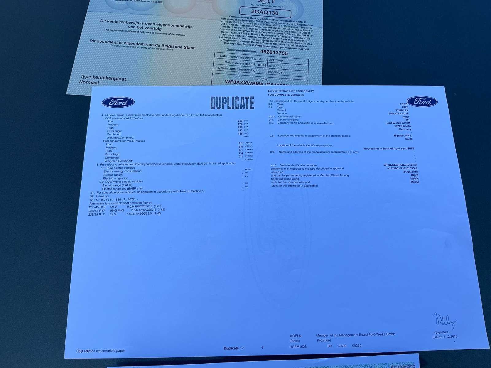 Laatst gekende kilometerstand volgens de carpass : 132750 Nee Kenteken: 2GAQ130 Merk: Ford Type: Kuga Model: Vignale Bouwjaar: 2019 Chassisnummer: WF0XXWPMAJG54952 Vermogen (kW): 110kW Brandstof: Diesel Aantal zitplaatsen: 5 Nationaliteit documenten: België Boorddocumenten aanwezig?: true