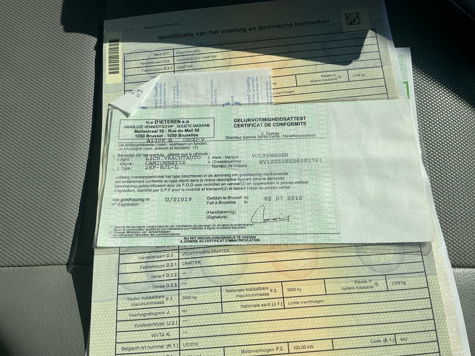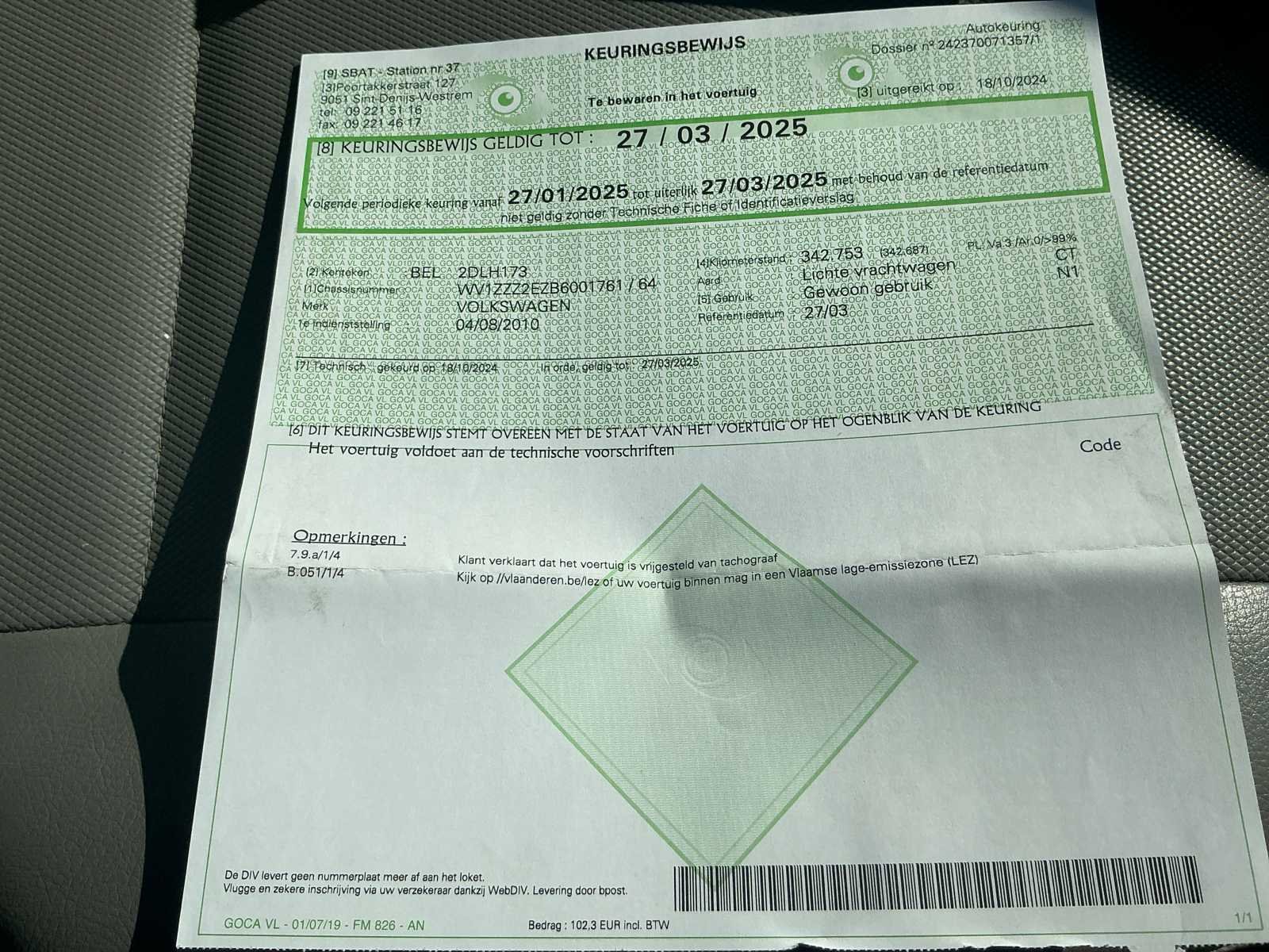 Nee Kenteken: 2DLH173 Merk: Volkswagen Model: Crafter 2.5 tdi Maxi Bouwjaar: 2010 Afgelezen kilometerstand: 343969km Cilinderinhoud: 2461cc Vermogen (kW): 100kW Brandstof: diesel Chassisnummer: WV1ZZZ2EZB6001761 Datum eerste toelating: 04/08/2010 Aantal zitplaatsen: 3 Transmissie: Handgeschakeld Emissieklasse: Euro4 Aantal sleutels: 2 Nationaliteit documenten: Belgische Keuringsrapport geldig tot: 27/03/2025 Vavato voert geen technische keuring uit.: true Inschrijvingsbewijs - deel 1 : Aanwezig Inschrijvingsbewijs - deel 2: Aanwezig