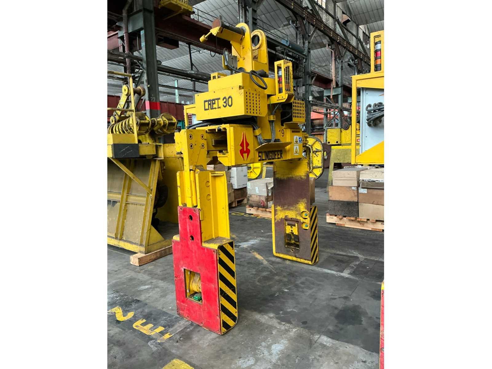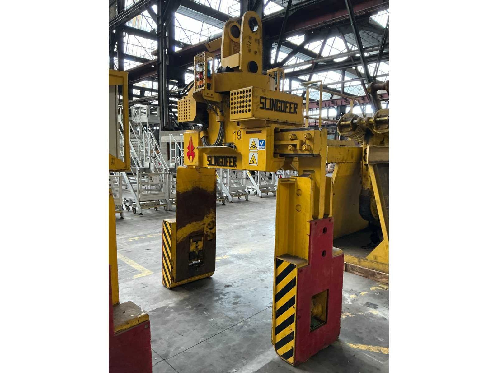 Kenmerken: - Elektrisch aangedreven - Elektrisch roterend - Opening 135-2160mm - Capaciteit Ø 550-2000mm - Totale afmetingen spoelgrijper circa 1180x2180xH3250mm - Keuringsattest niet aanwezig Nee Merk: Slingofer Type: 726 Bouwjaar: 2016 Serienummer: 726/30/1301 Hijsvermogen: 30000kg Aansluiting: 400V Eigen gewicht: 3920kg