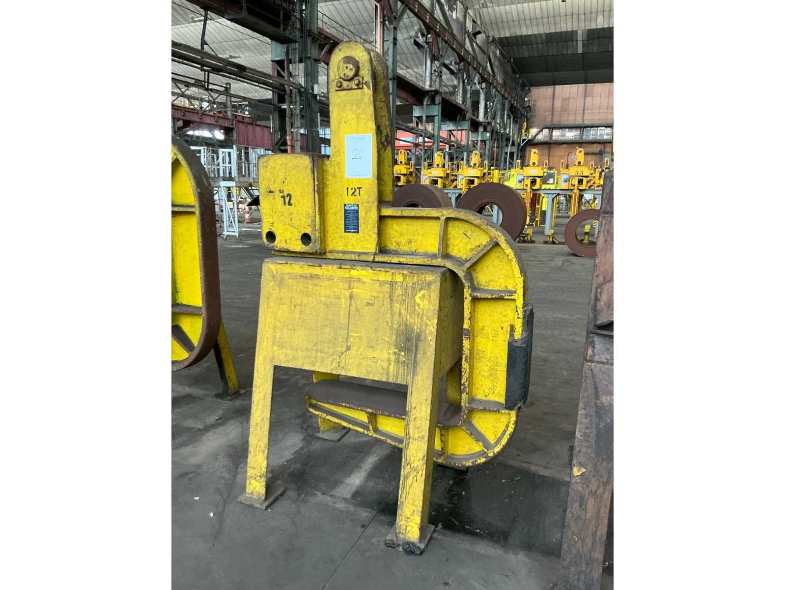 Kenmerken: - Lengte vork: 950mm - Opening boven vork circa 740mm - Voorzien van contra-gewicht - Totale afmetingen C-haak: circa 1430x360xH2200mm - Bouwjaar onbekend - Keuringsattest niet aanwezig Nee Hijsvermogen: 12000kg