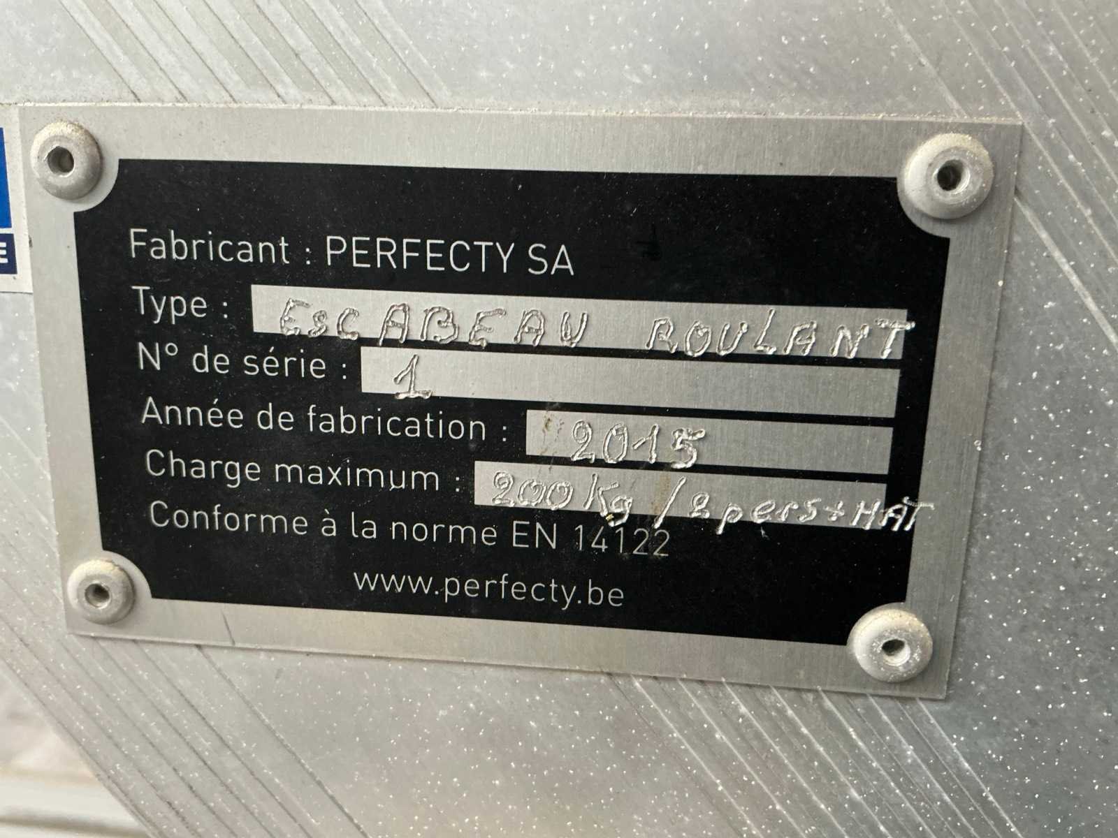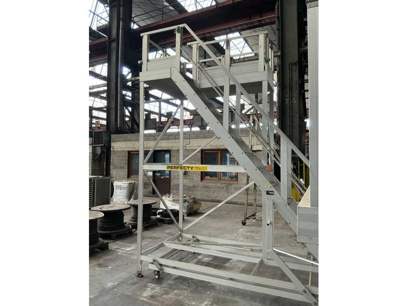 Kenmerken: - Breedte tredes 540mm - Draagcapaciteit 200kg/ 2 pers. - Hoogte bovenste trede/ platformhoogte 3200mm - Voorzien van inklapbare wielen - Voorzien van neerklapbare leuning 650/1100mm Nee Merk: Perfecty Bouwjaar: 2015 Aantal treden: 15 Aluminium: true Enkel: true Totale afmeting L: 3200mm Totale afmeting Breedte: 1500mm Totale afmeting Hoogte: 3830mm