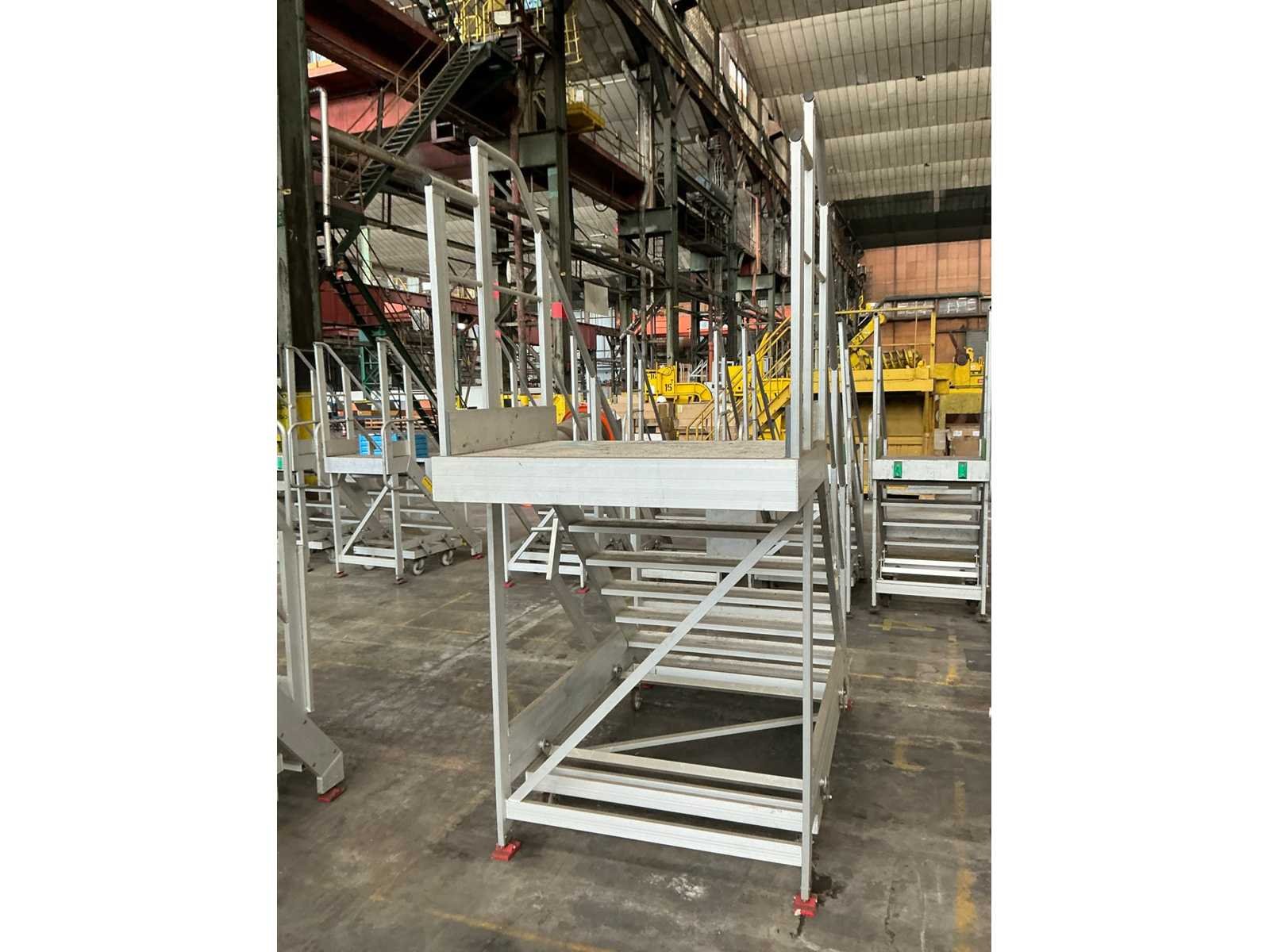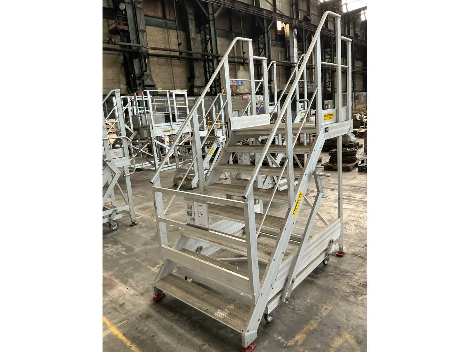 Kenmerken: - Breedte tredes 1140mm - Draagcapaciteit 150kg - Hoogte bovenste trede/ platformhoogte 1600mm - Platform 1100x880mm - Voorzien van inklapbare wielen Nee Merk: Perfecty Bouwjaar: 2019 Aantal treden: 8 Aluminium: true Enkel: true Totale afmeting L: 2300mm Totale afmeting Breedte: 1300mm Totale afmeting Hoogte: 2700mm