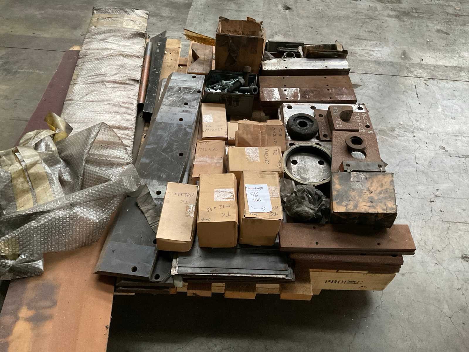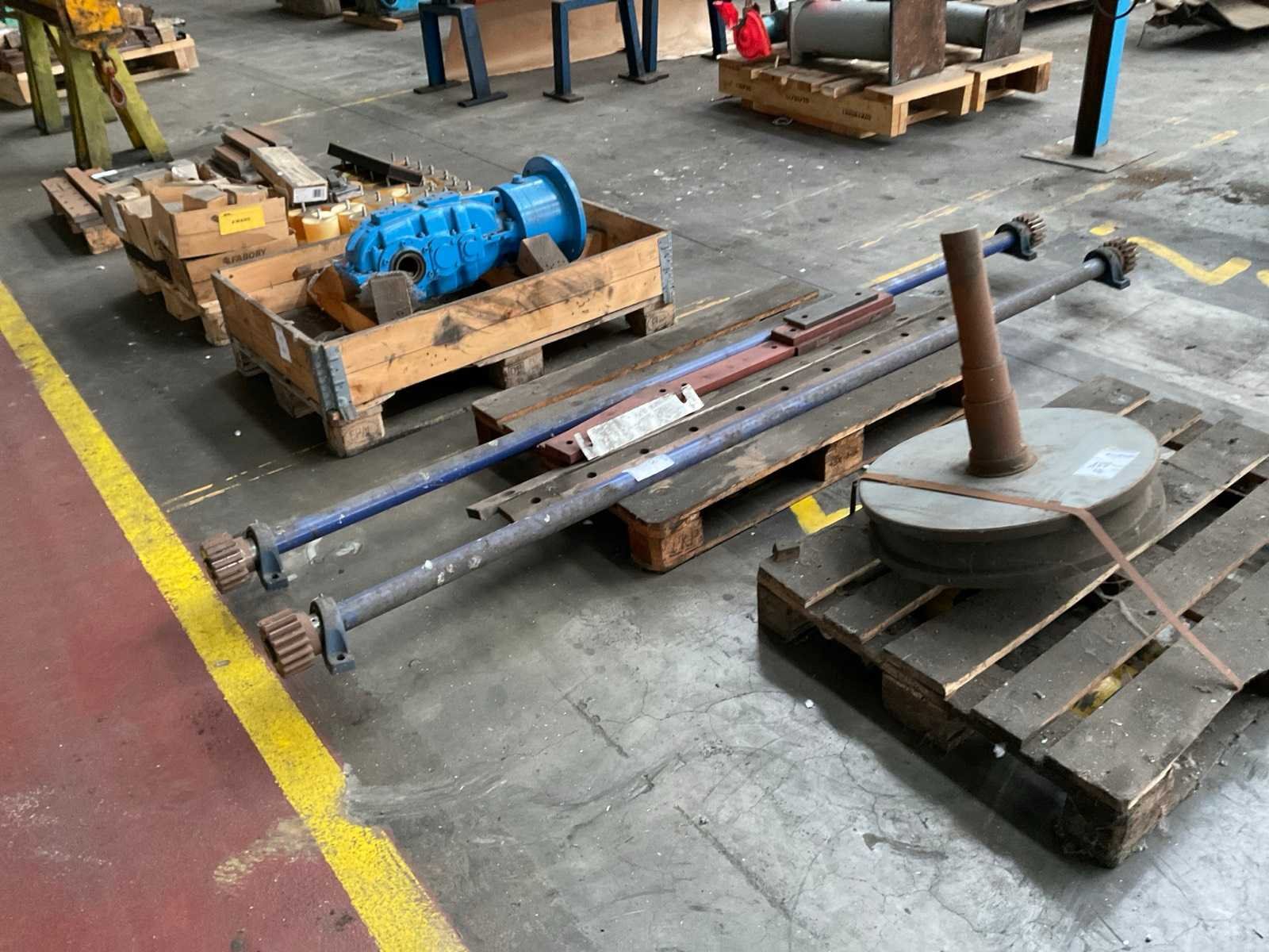 Waaronder tandwielkast, aandrijfassen, bevestigingsmaterialen, dempers,….. op 6 pallets. Nee