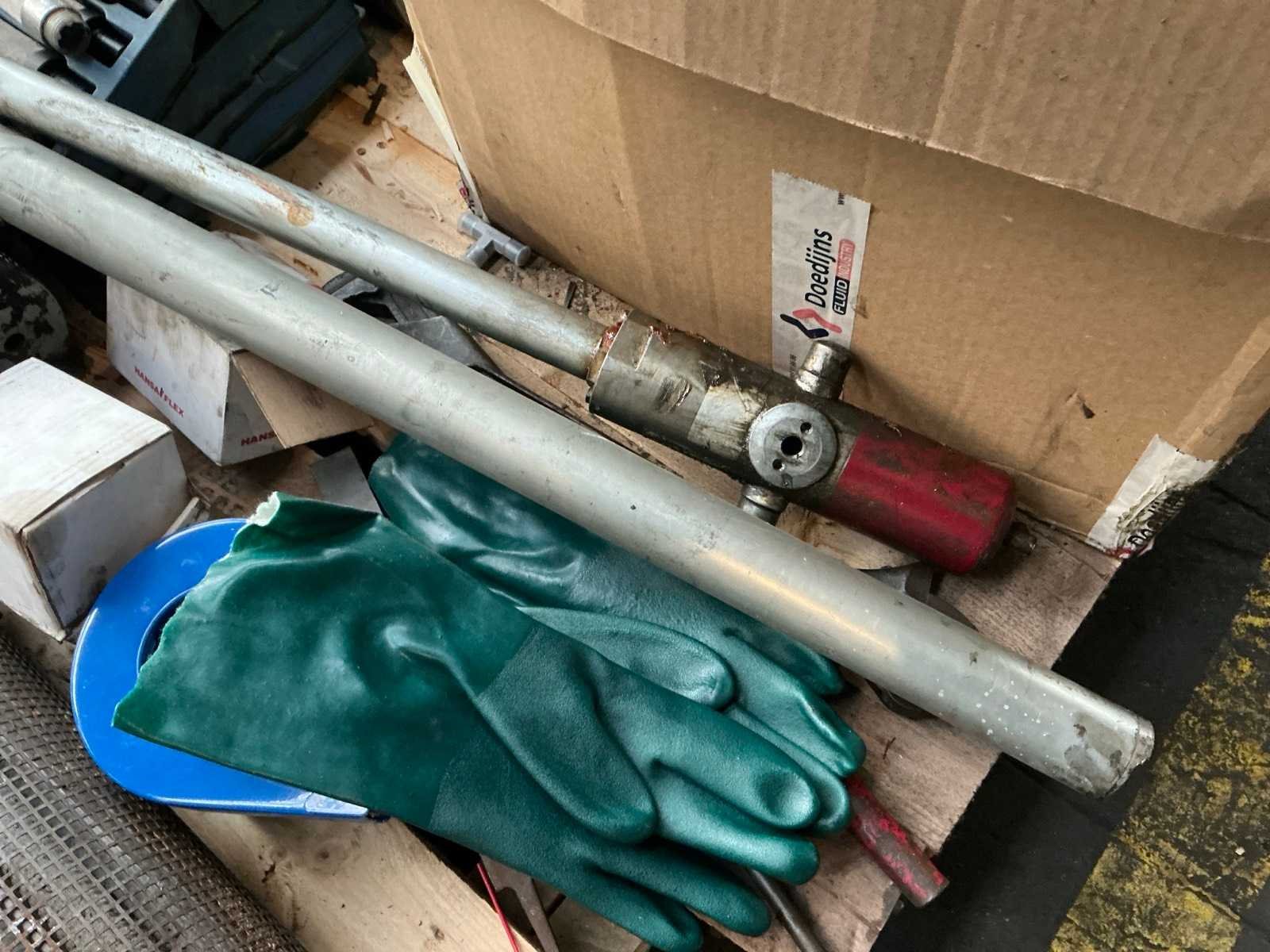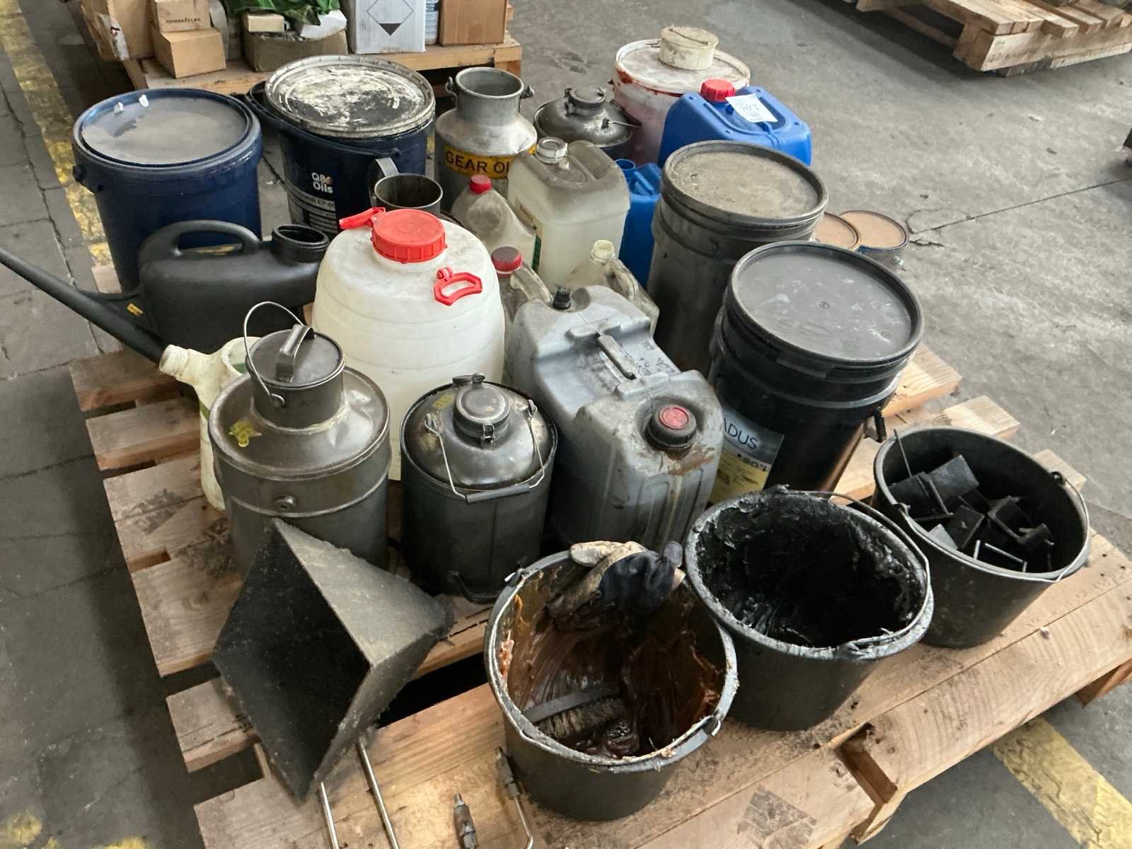 <Br> - Waaronder vetpomp, onderdelen, smeervet, hout, restanten… - Op 3 pallet. Nee