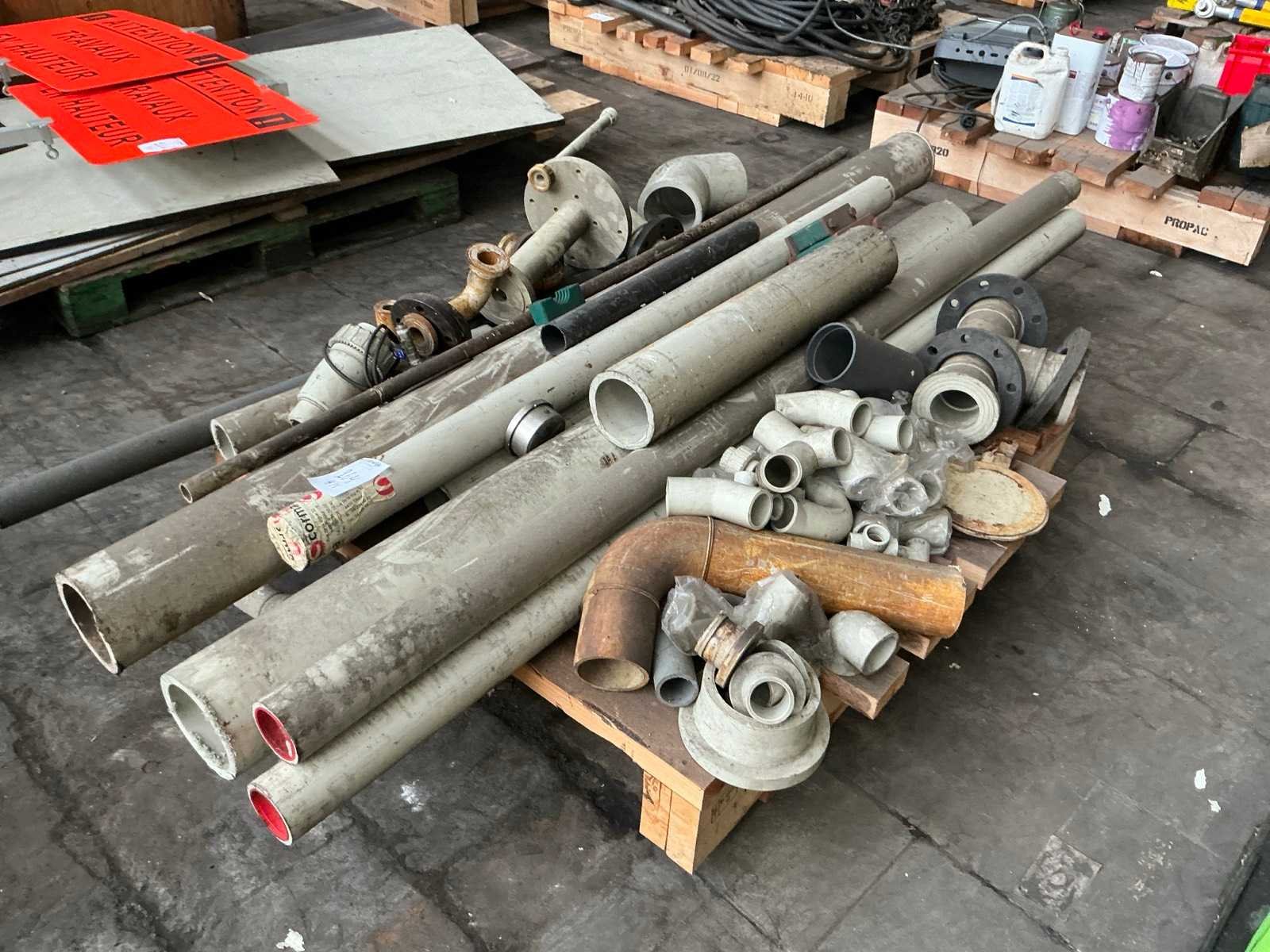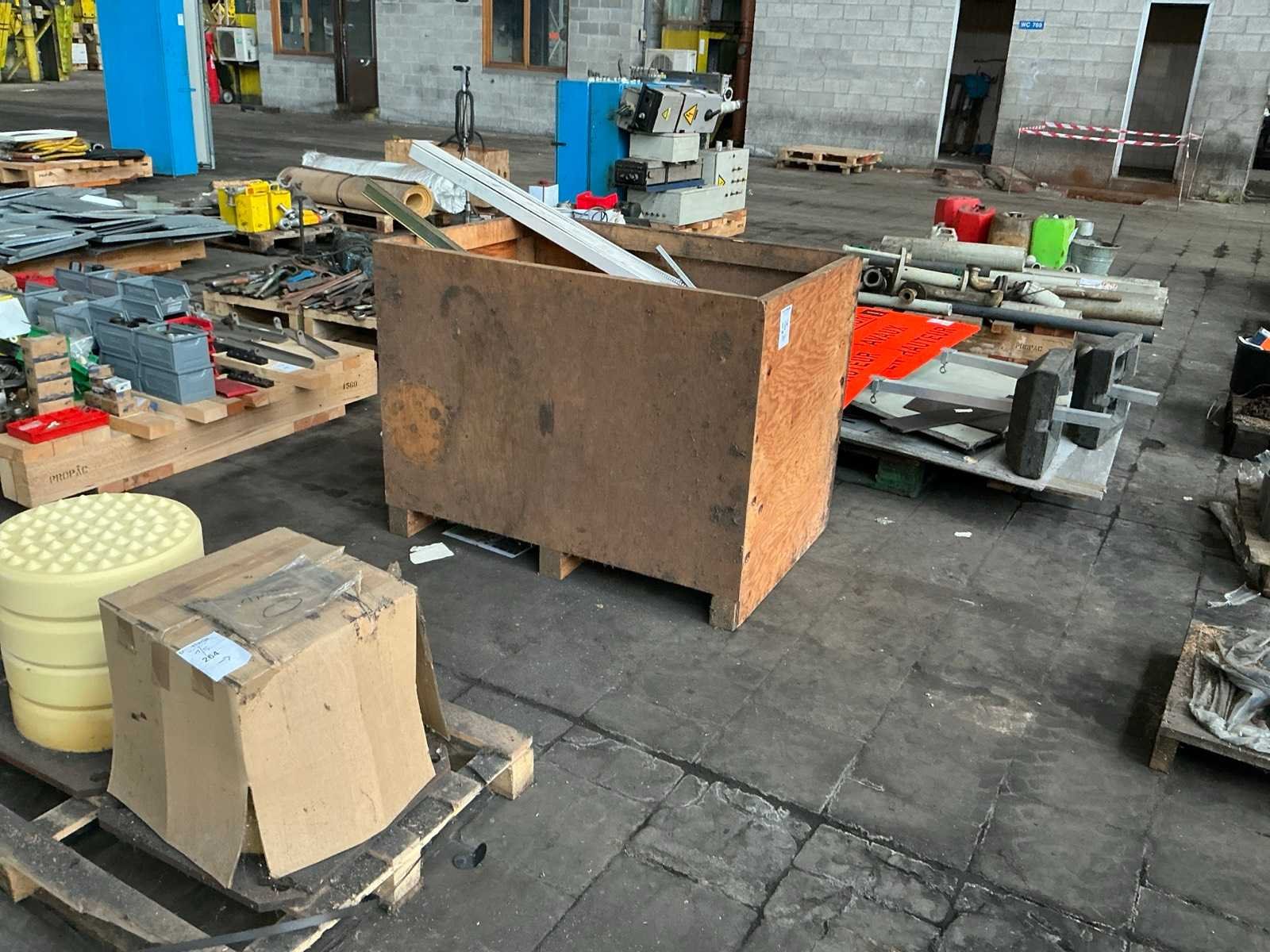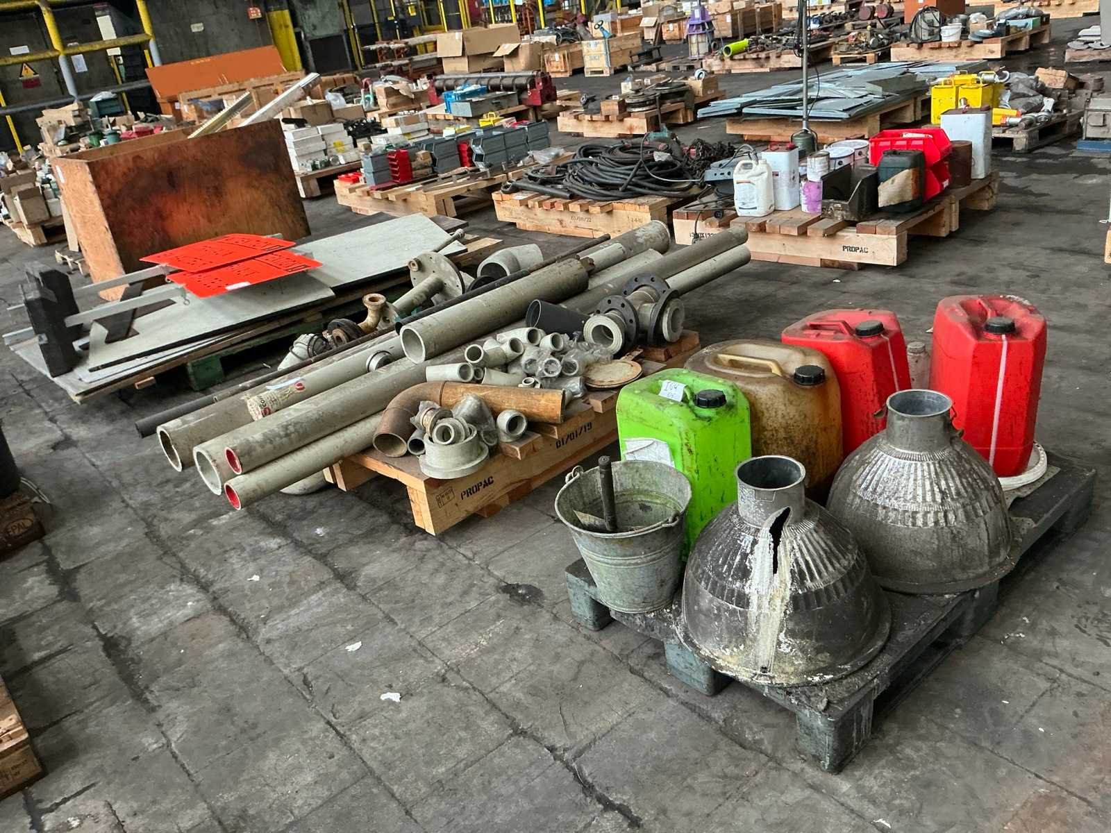 Waaronder industriële elektro, pvc buizen, ….. alsook 2 verkeersborden, bidons…. alles op 5 palletten Nee
