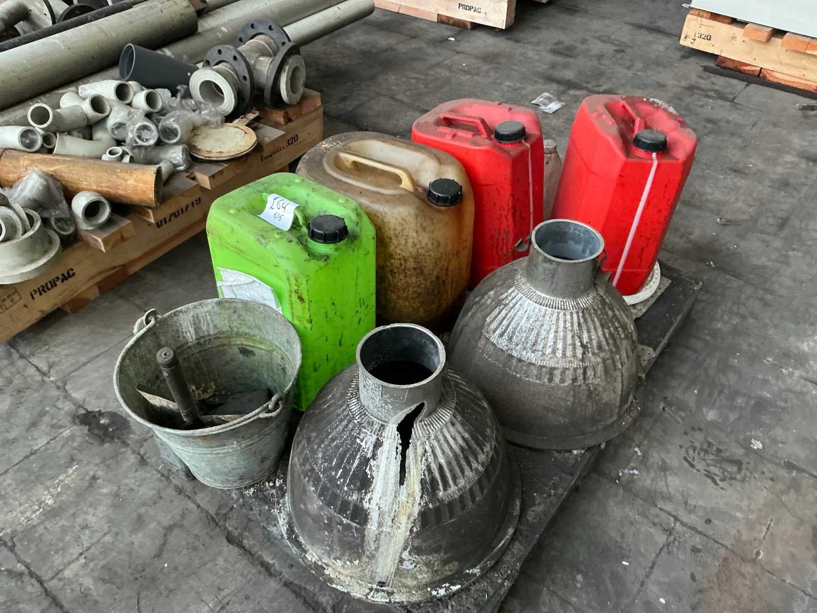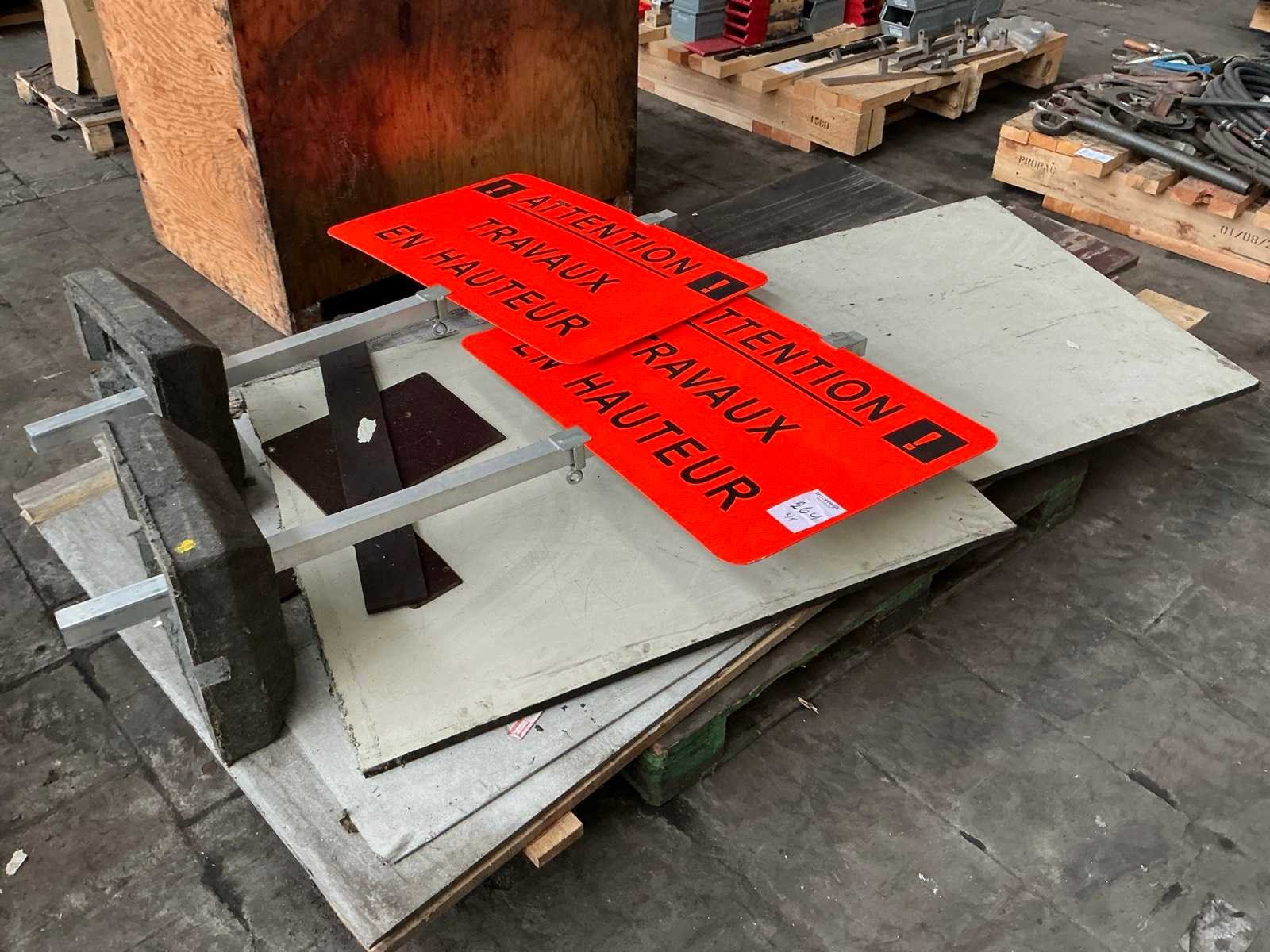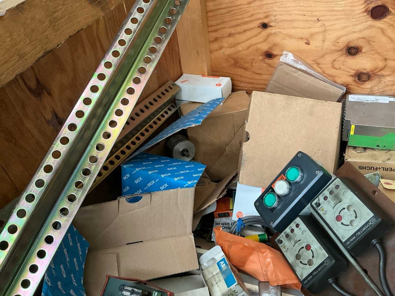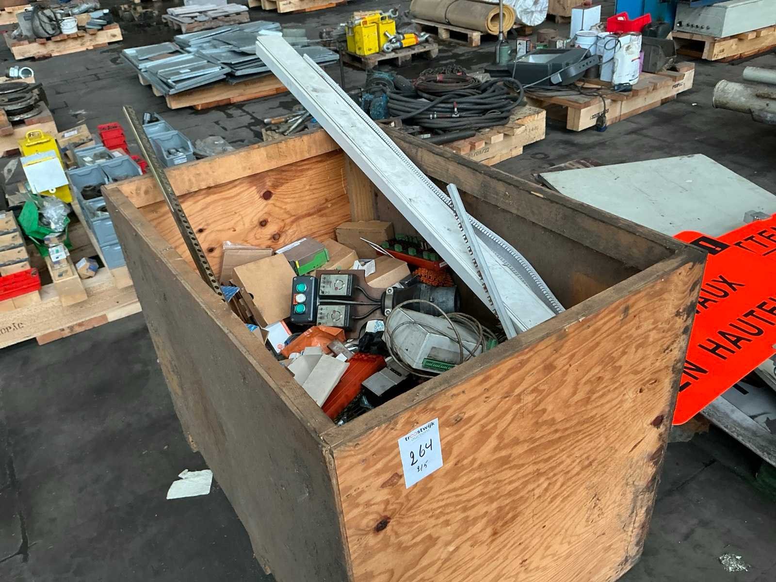 Waaronder industriële elektro, pvc buizen, ….. alsook 2 verkeersborden, bidons…. alles op 5 palletten Nee