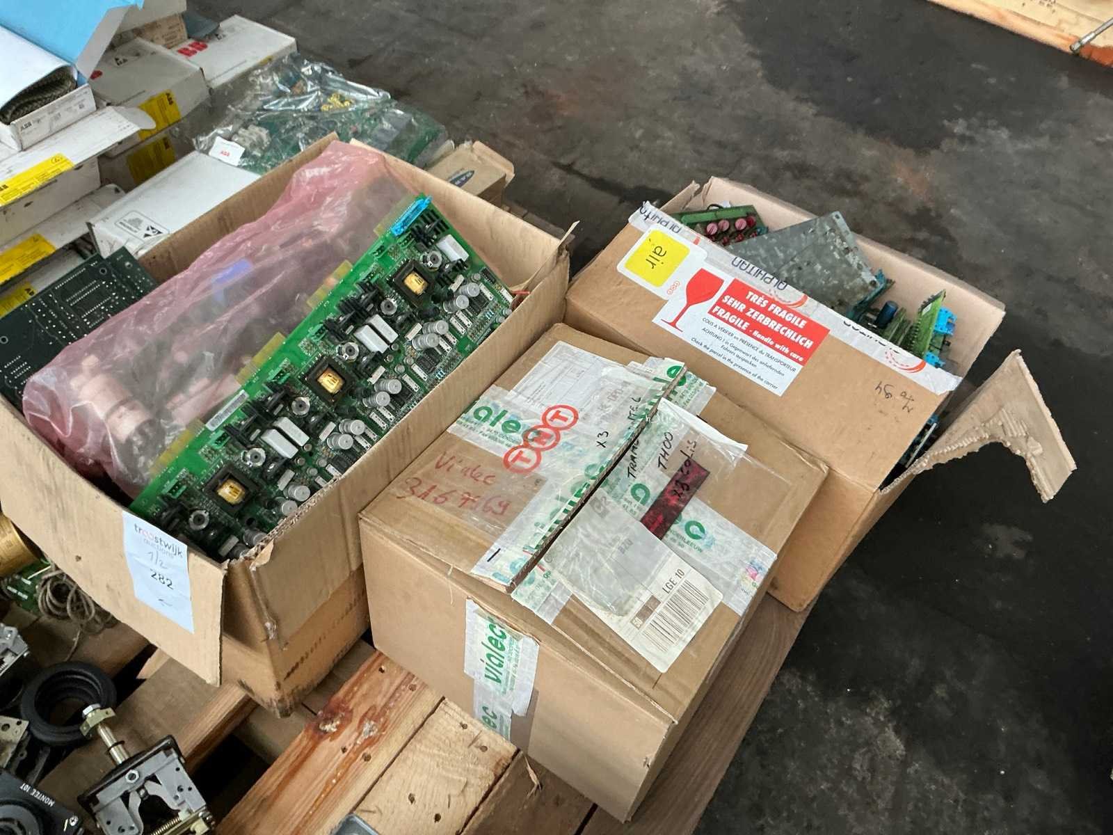 Waaronder printplaten, contactors, voedingen, massakabel, transformatoren, ….. op 2 palletten Nee