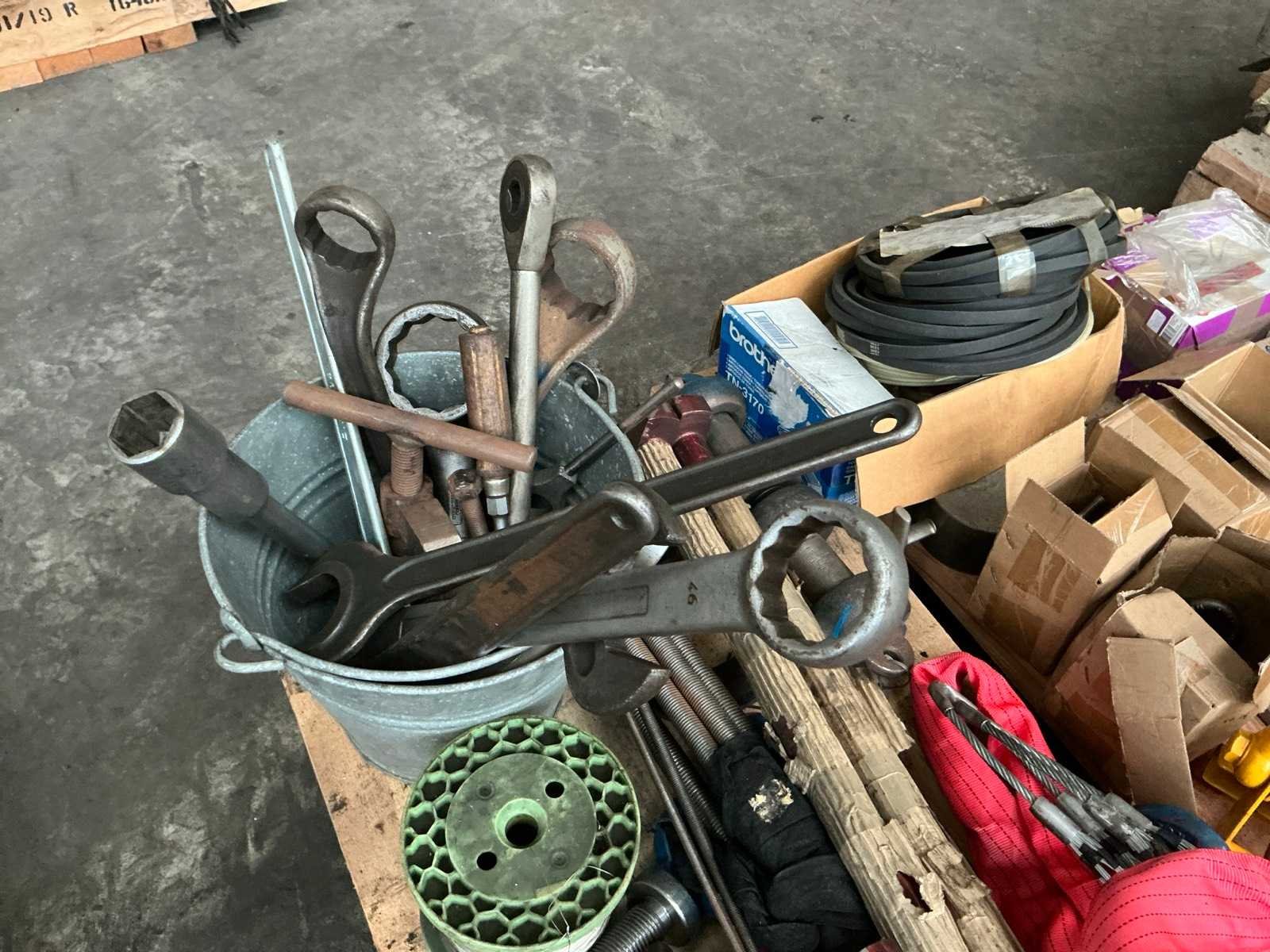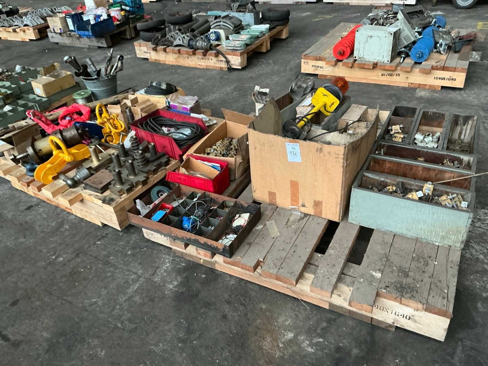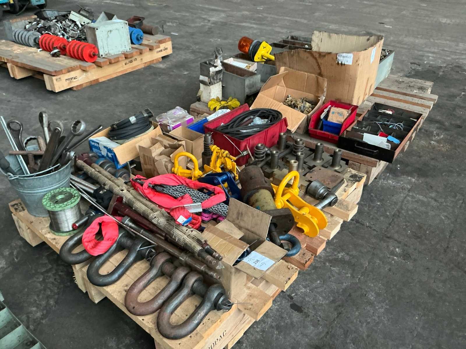Waaronder balkklemmen, harpsluitingen, hijsogen, elektro, messing onderdelen, handgereedschappen, …. op 2 palletten Nee