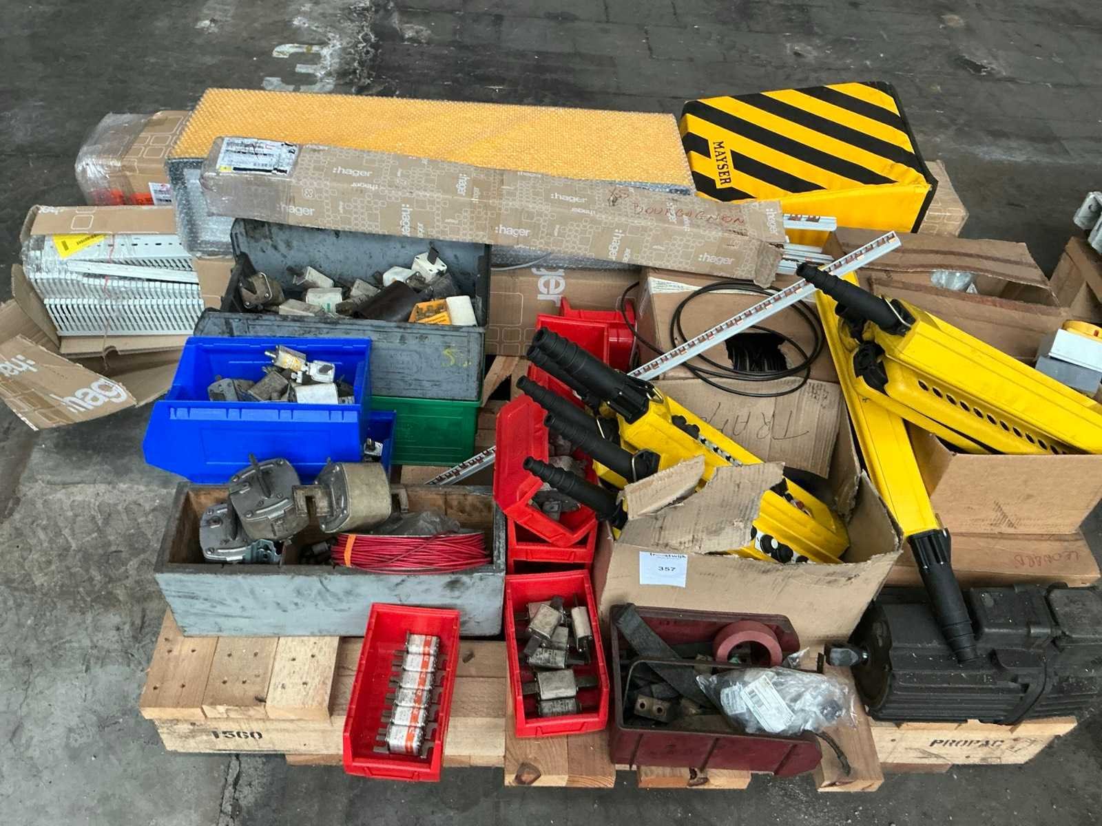 Waaronder peerbedieningen, verbindingsrails, kabel en diverse elektrische installatiematerialen. Op 1 pallet. Nee