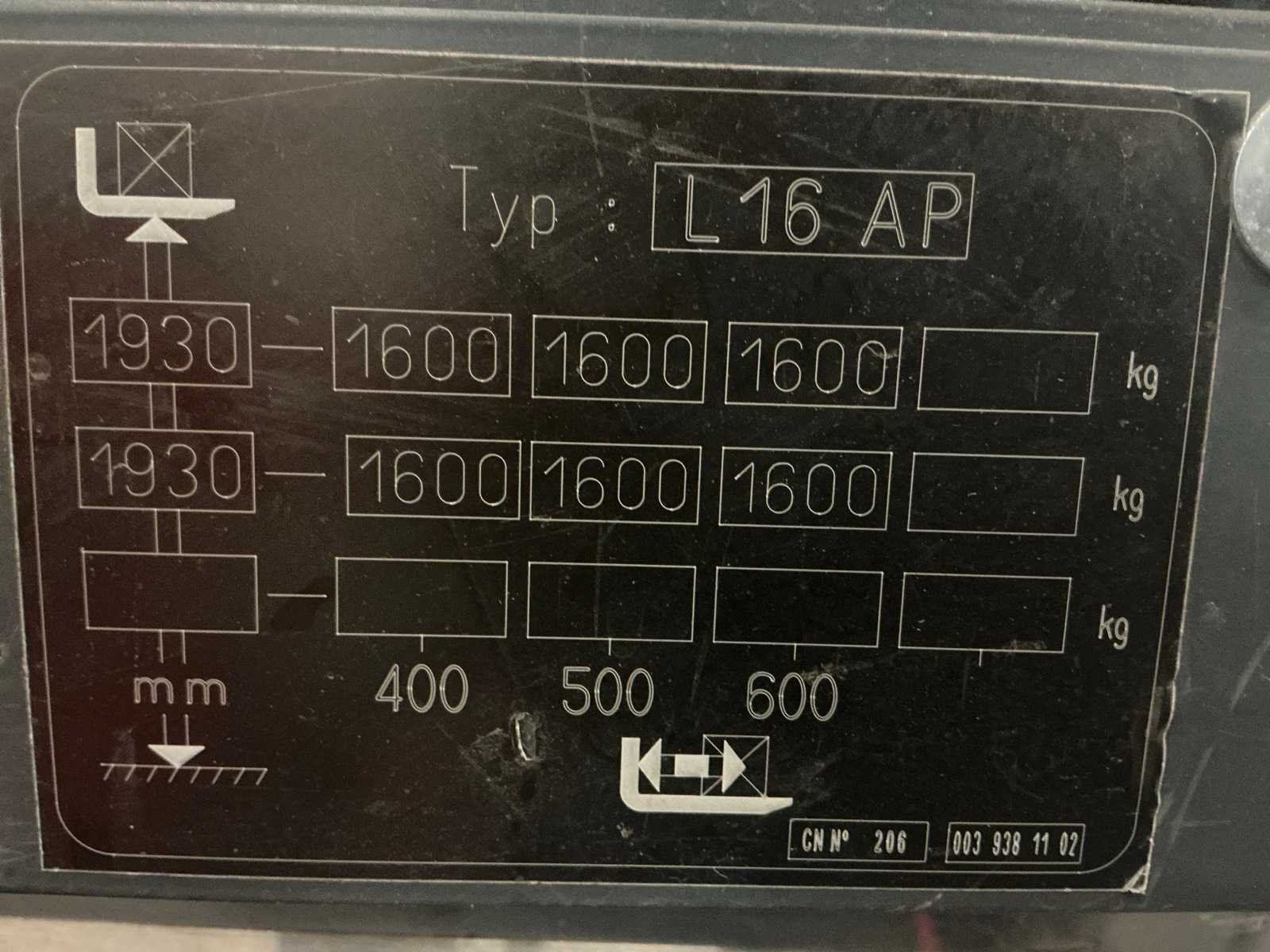 Weeg indicator , Triplex mast , Blue spot voor en achter , accu met automatische vulling Nee Merk: Linde Type: L16AP Bouwjaar: 2020 Serienummer: W41173V03896 Hefvermogen: 1600kg Hefhoogte: 1950mm Lepellengte: 950mm Afgelezen urenstand: 1600 Eigen gewicht: 1350kg Totale afmeting L: 1900mm Totale afmeting Breedte: 800mm Totale afmeting Hoogte: 1420mm Meerij stapelaar: true
