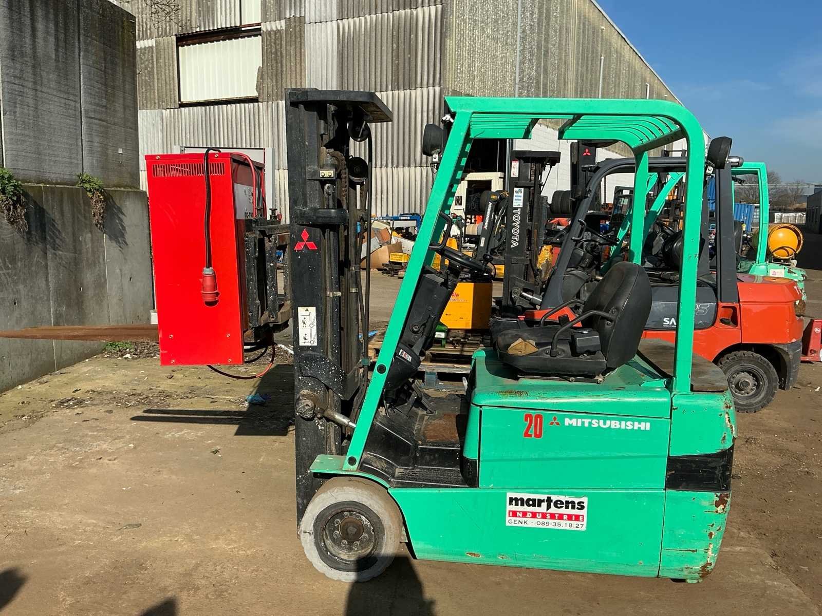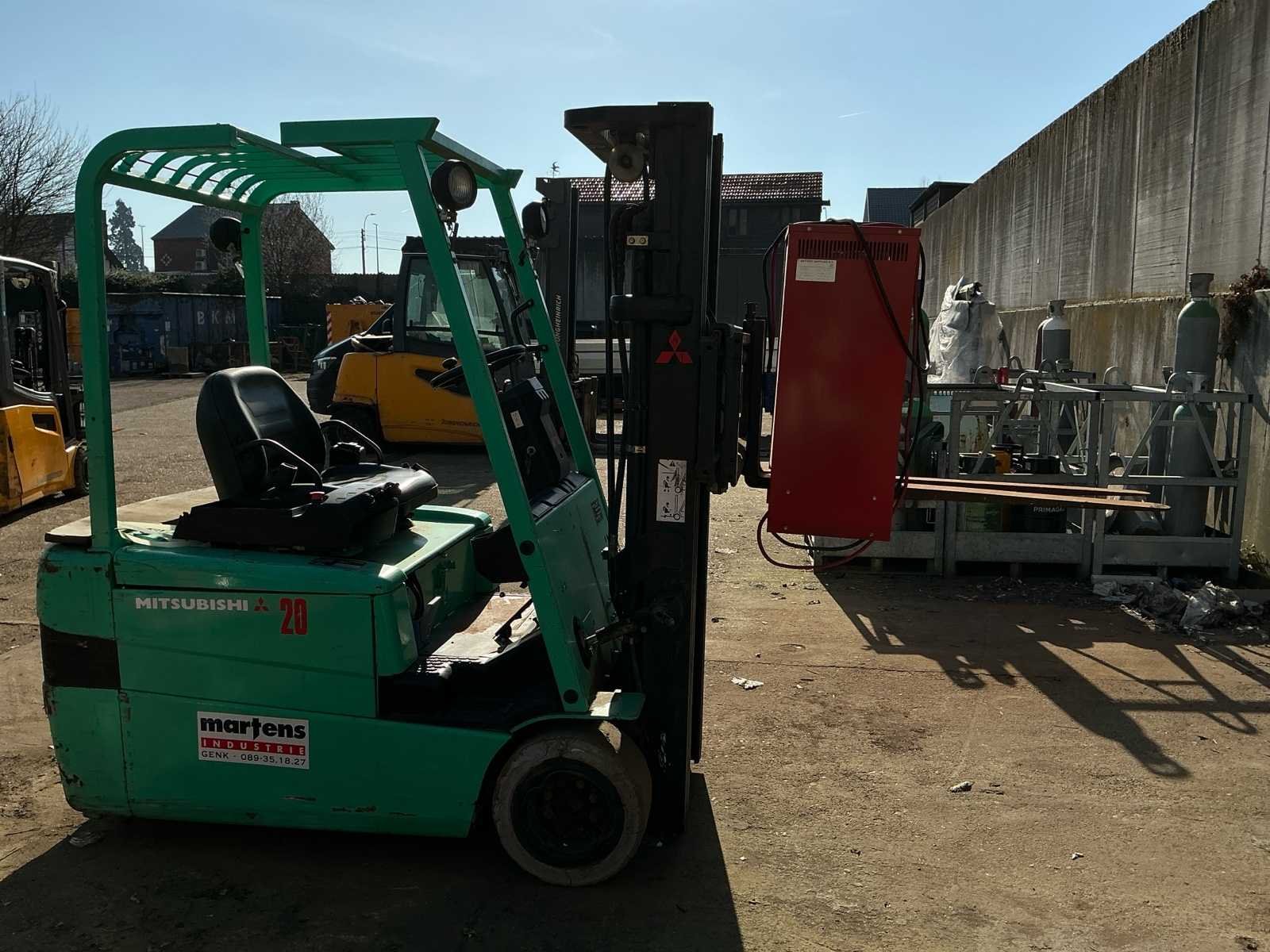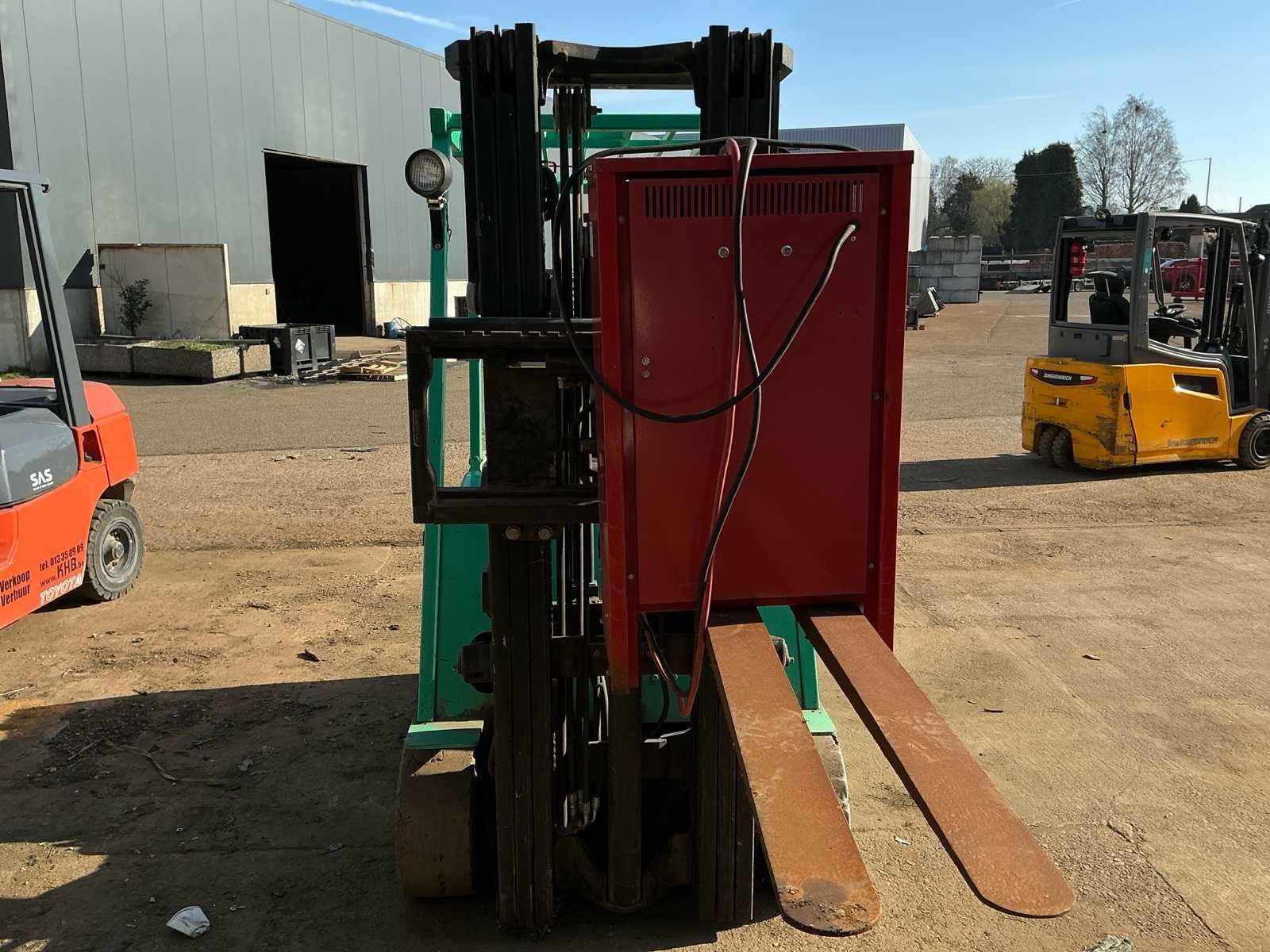 Start rijdt en voert alle functie’s uit, de batterij is in matige staat deze dient vervangen te worden. No Merk: Mitsubishi Type: Fb2026 Bouwjaar: 2001 Brandstof: Electric Mast: Triple Aantal wielen: 3 Accu lader: true Side-shift: true Triple mast: true Hefvermogen: 1950kg Max. hefhoogte: 4750mm Vol rubber banden: true Minimale doorrijhoogte: 2200mm Leveringsvoorwaarden: Gratis op vrachtwagen