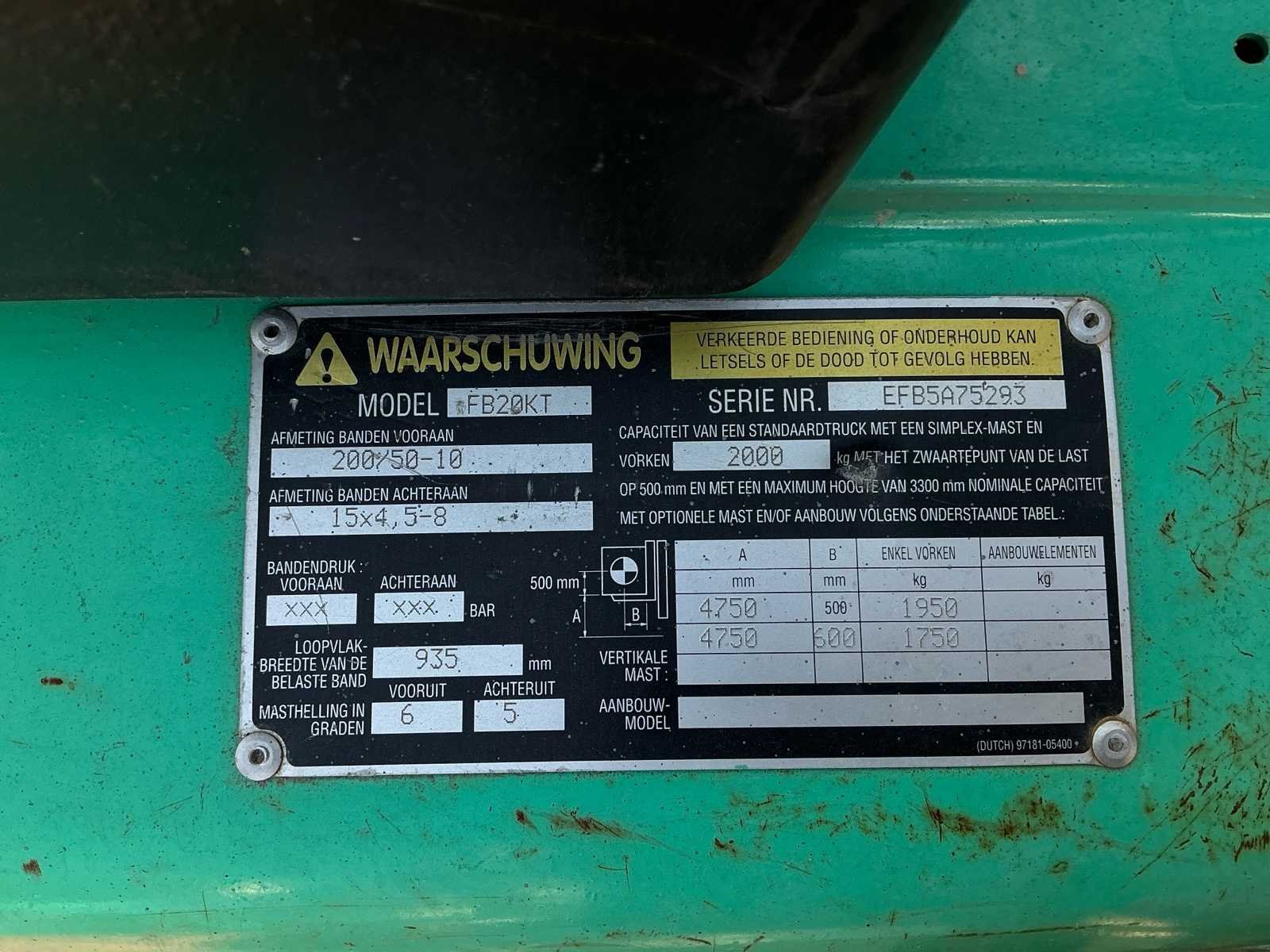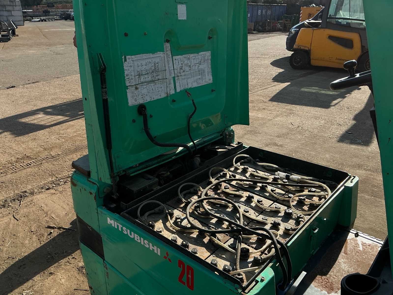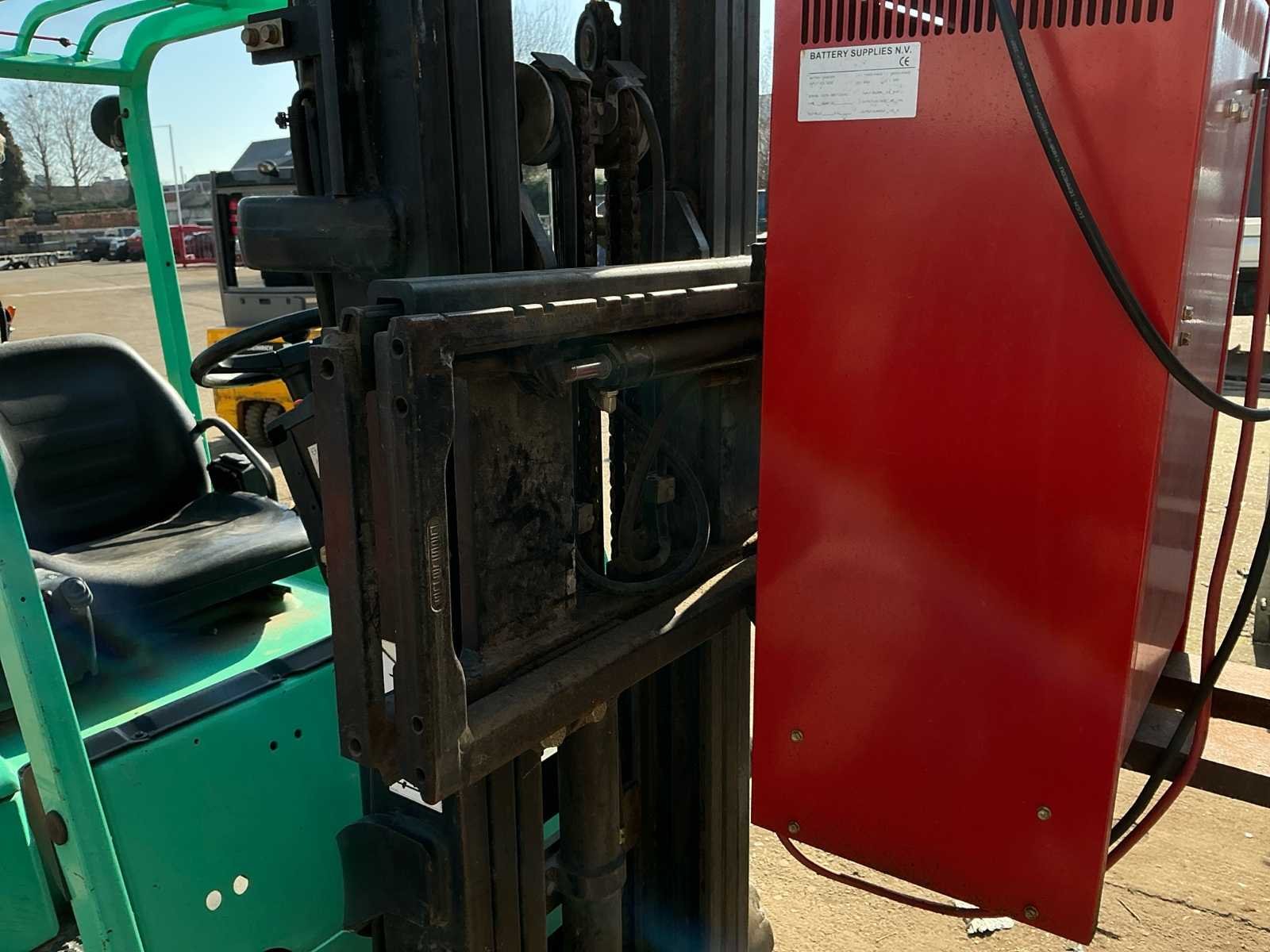 Start rijdt en voert alle functie’s uit, de batterij is in matige staat deze dient vervangen te worden. No Merk: Mitsubishi Type: Fb2026 Bouwjaar: 2001 Brandstof: Electric Mast: Triple Aantal wielen: 3 Accu lader: true Side-shift: true Triple mast: true Hefvermogen: 1950kg Max. hefhoogte: 4750mm Vol rubber banden: true Minimale doorrijhoogte: 2200mm Leveringsvoorwaarden: Gratis op vrachtwagen