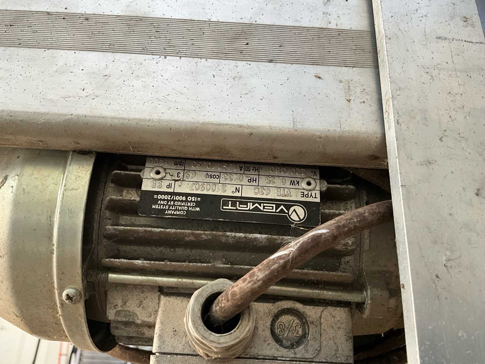 Met staanders. Elk transportband is 5M (totaal 10). Motors zitten er in van 380 (220 ook mogelijk). Er zitten stekkers aan om ze door te kunnen verbinden. Zijn in perfecte werking. No Aansluiting: 380V Totale afmeting Breedte: 300mm Totale afmeting L: 5000mm