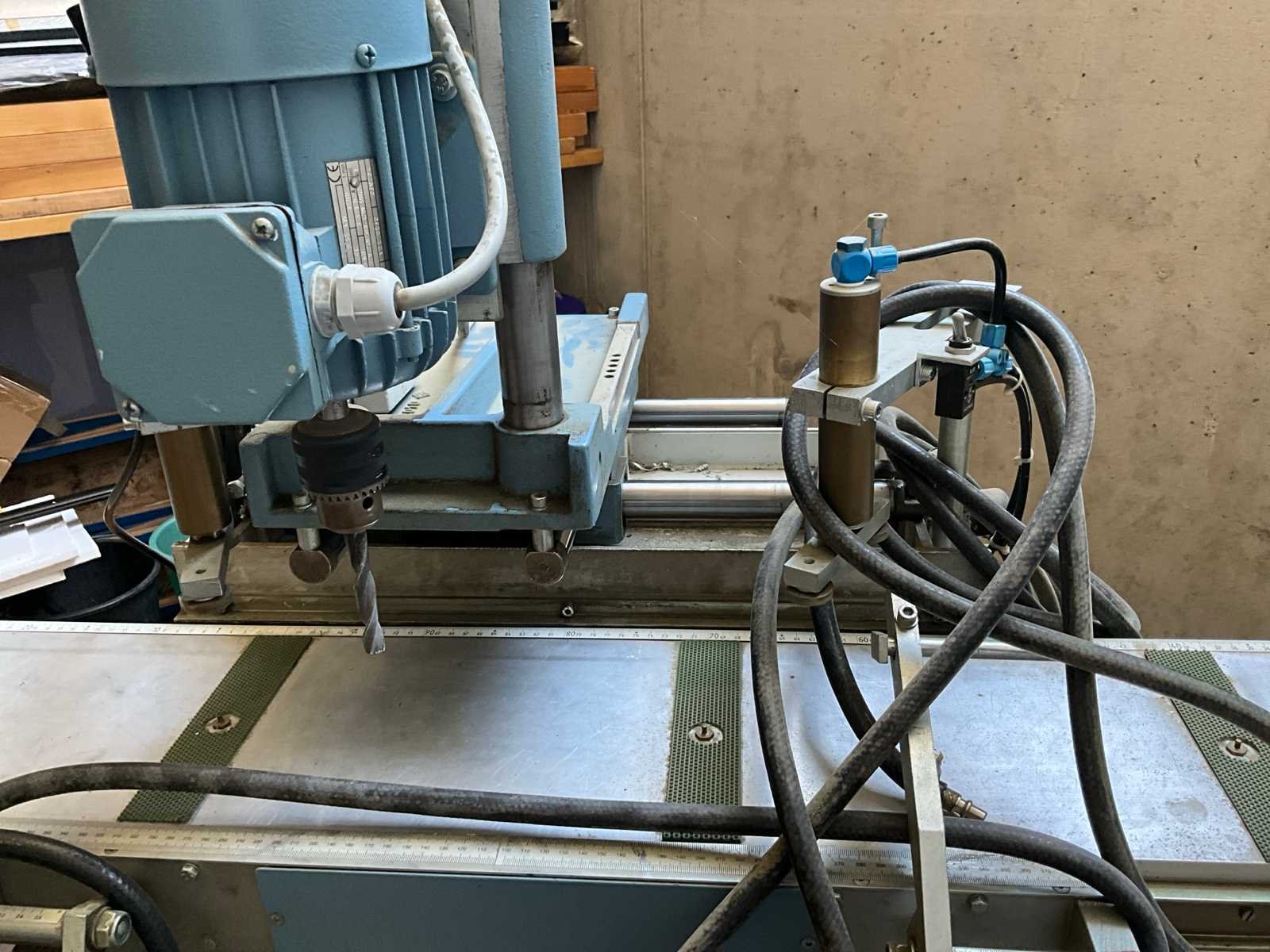 Rotox KBG 192 kopieerboormachine, bouwjaar 1999, in functionele en werkende staat. Deze industriële kopieerboormachine is geschikt voor precisiebewerkingen in aluminium en metaal, en wordt vaak toegepast voor scharnierdeur-bewerkingen en profielbewerking in raam- en deursectoren. De machine is voorzien van een lange schuiftafel van ca. 3 meter, wat het mogelijk maakt om lange profielen nauwkeurig en stabiel te bewerken - Toepassingen: Aluminium profielbewerking, Raam- en deurproductie, Scharnierdeur-bewerkingen, Kopieerboringen, Precisieboringen, Serieproductie, Werkplaats / industrie / productieomgeving - Elektrisch: Aansluiting: 400 V, Frequentie: 50 Hz, Stroomopname: 1,9 A - Pneumatisch: Werkdruk: 8 bar - palletwagen aanwezig om eventueel te helpen laden Nee Merk: Rotox Type: KBG 192 Bouwjaar: 1999 Aansluiting: 400V Machinegewicht: 225kg