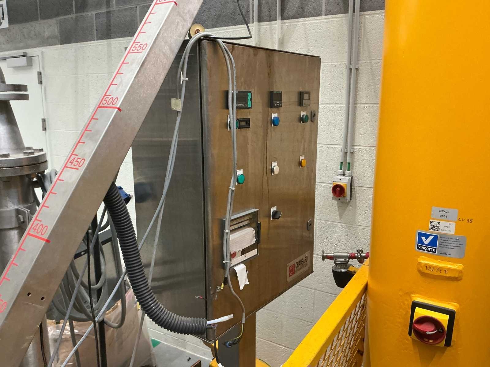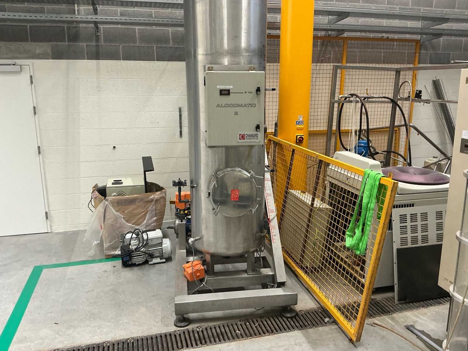 Chansard Alcoomatic II Alcoholmeetinstallatie. In gebruikte staat. Chansard Fermentation – Alcoomatic II, automatische industriële alcoholmeetinstallatie. Uitgevoerd met verticale RVS destillatiekolom en geïntegreerde elektronica voor continue of batchgewijze bepaling van het alcoholvolumepercentage (%Vol). De installatie werkt op basis van destillatie gevolgd door automatische alcoholanalyse. Geschikt voor toepassingen in fermentatie-, brouwerij-, wijn- en distillatieprocessen. Technische kenmerken • Model: Alcoomatic II • Merk: Chansard Fermentation (Frankrijk) • Werking: Automatische destillatie + alcoholmeting • Uitvoering: Verticale RVS-kolom op robuust frame • Meetprincipe: Scheiding van alcohol via verhitting, daarna automatische analyse • Toepassing: Analyse van alcoholgehalte in vloeistoffen zoals bier, wijn, most, gistingsmedia, distillaten • Capaciteit: geschikt voor continue of batchmeting (industrieconfiguratie) • Constructie: Inox RVS reactor met inspectieluik, meetkamer en aansluitingen • Elektronica: Bedieningskast met digitale alcoholuitlezing (% Vol.) • Uitgerust met: • Elektrische actuatoren • Pompinstallatie • Niveausensoren • Bedradings- en besturingscomponenten Voeding • 230V (exacte specificaties afhankelijk van uitvoering; standaard 230V 50Hz voor kast) Geschikt voor • Industriële kwaliteitscontrole • Fermentatieprocessen • Laboratoria en R&D • Wijn-, bier- en distillatieproductielijnen No Merk: Chansard Type: Alcoomatic geautomatiseerde laboratorium/industriële meellijn Serienummer: 109742.1 Bouwjaar: 2000 Aansluiting: 230V