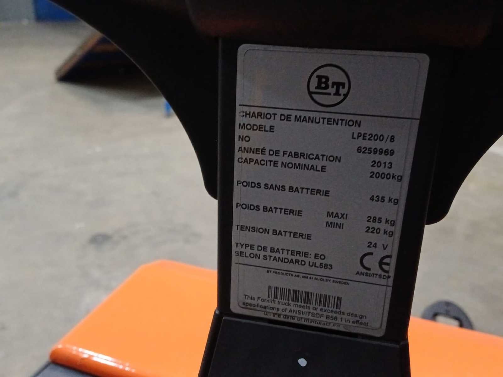 Lader inbegrepen en dubbele draagwiel No Merk: HAWKER Type: LPE200/B Bouwjaar: 2013 Serienummer: 6259969 Hefvermogen: 2000kg Meerij palletwagen: true Accu lader: true Afgelezen urenstand: 4468 Eigen gewicht: 700kg