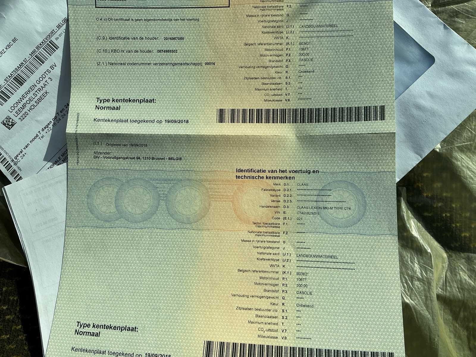 CLAAS Lexion 670 Terra Trac – Professionele maaidorser met rupsonderstel CLAAS Lexion 670 Terra Trac maaidorser in nette staat, uitgevoerd met Terra Trac rupsonderstel voor optimale tractie en minimale bodemdruk. Deze krachtige combine staat bekend om zijn hoge capaciteit, efficiënte dorsprestaties en betrouwbare werking tijdens intensieve oogstperiodes. Uitgerust met ruime cabine met uitstekend zicht en comfortabele bediening, geschikt voor grootschalige akkerbouw. De combinatie van rupsen en achteras met banden zorgt voor stabiliteit, rijcomfort en efficiënt transport op de weg. Een professionele machine voor wie zoekt naar capaciteit, comfort en prestaties in één.Eerste ingebruikname: 19/09/2018 Nee Merk: Claas Type: Lexion 660-M type c74 Terra Trac Vermogen (kW): 300 Afgelezen urenstand: 2900 Cabine: true Luchtgeveerde stoel: true