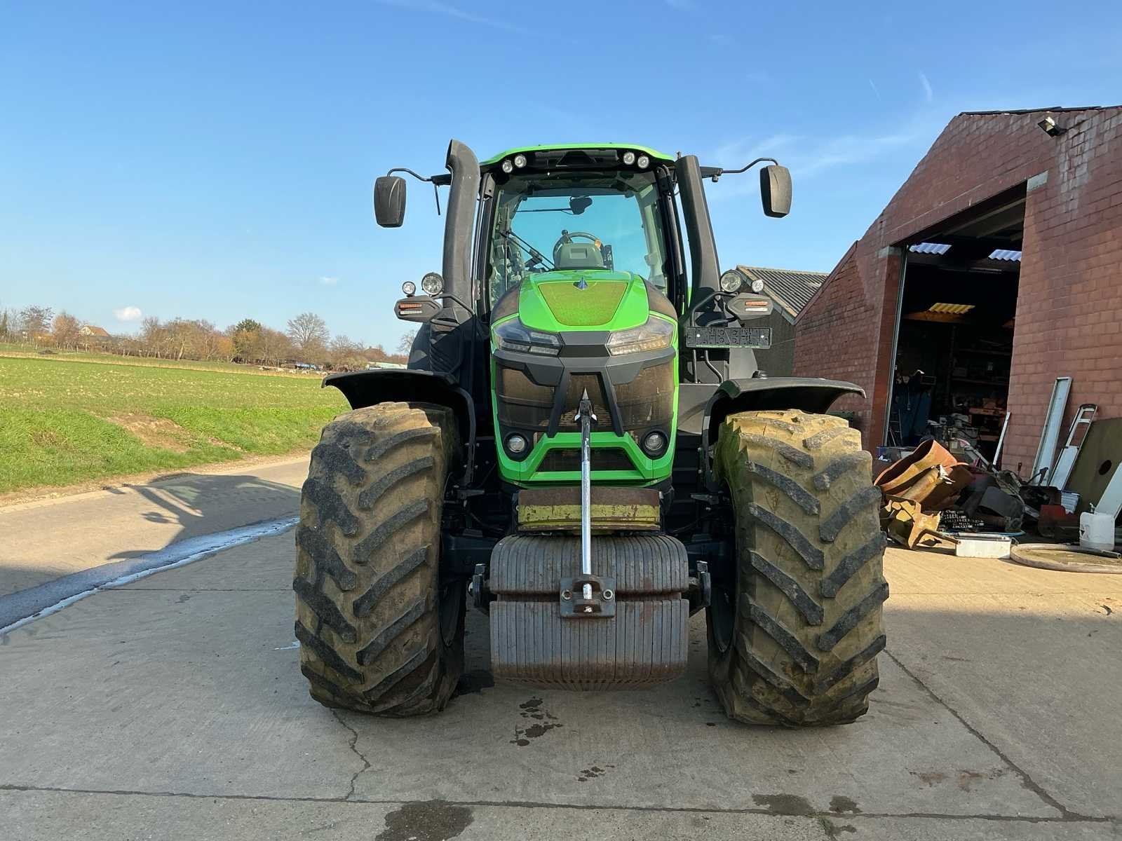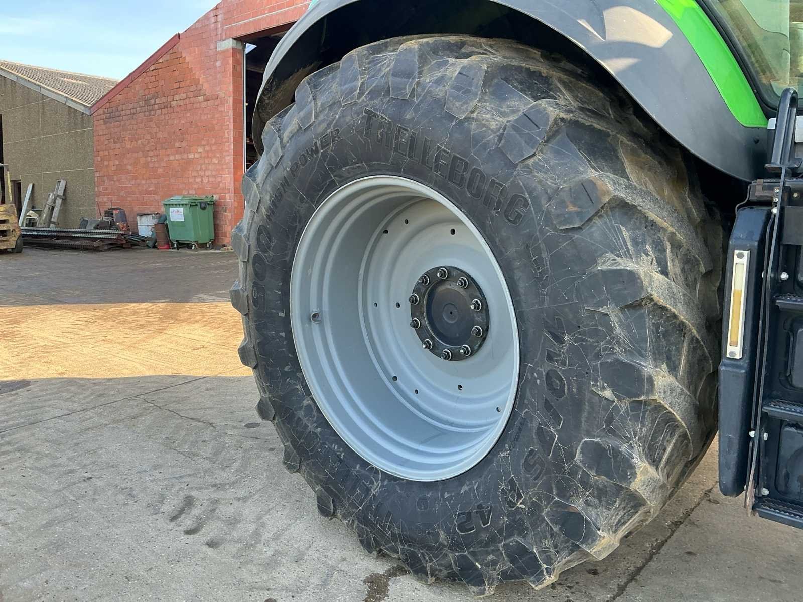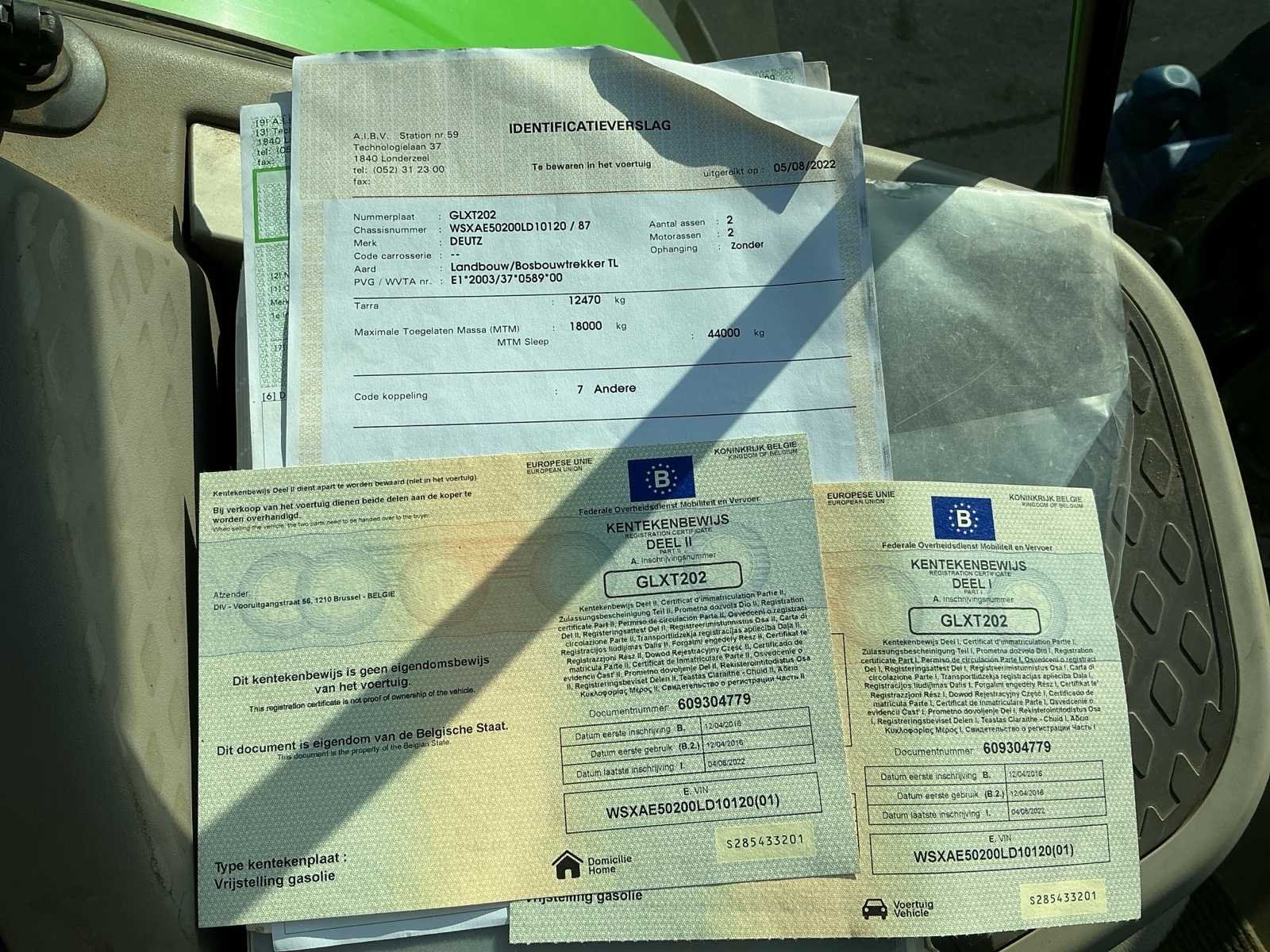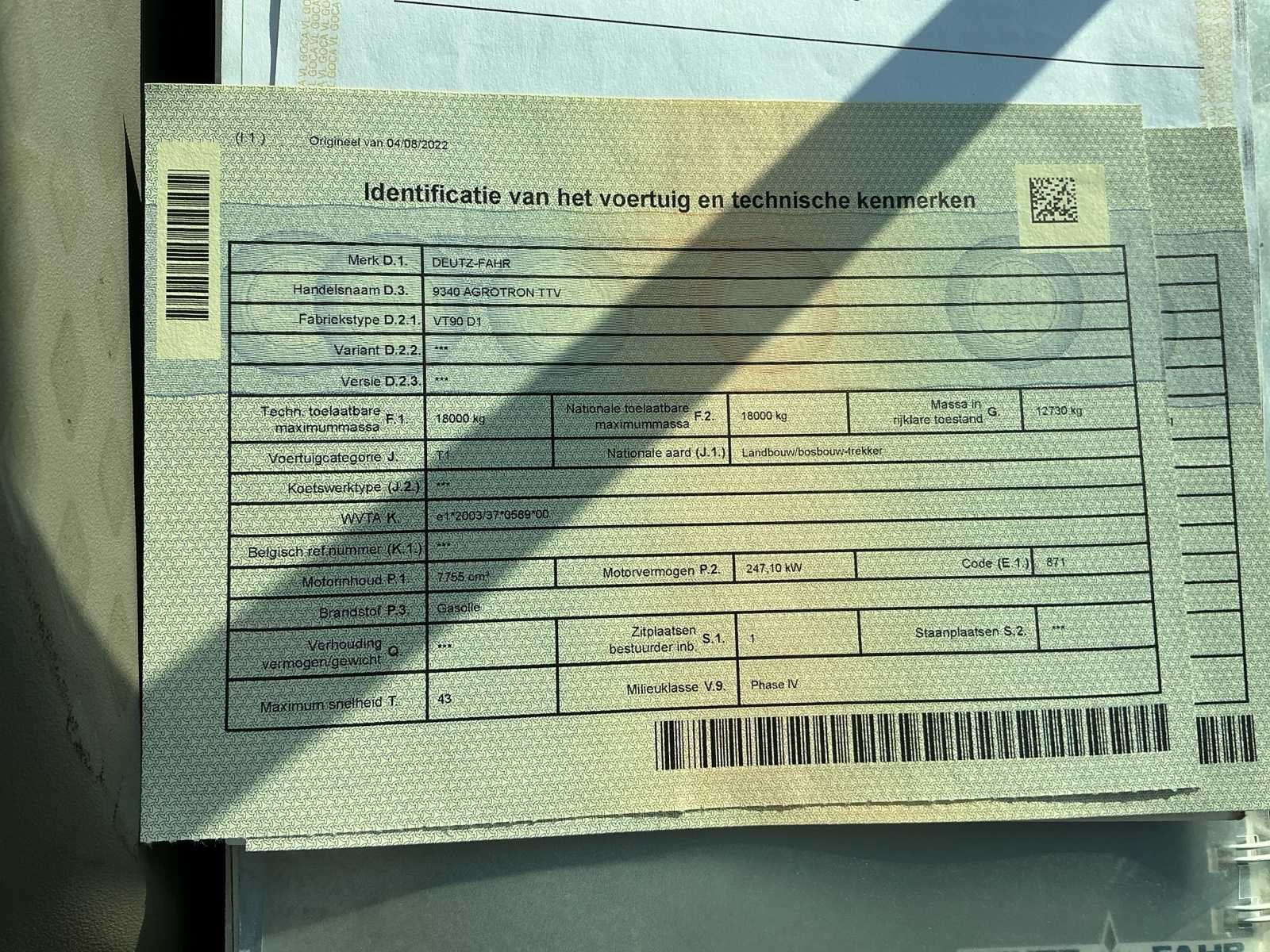 Deutz-Fahr 9340 TTV – Krachtige en moderne landbouwtractor Deutz-Fahr 9340 TTV tractor in nette staat, uitgevoerd in de kenmerkende groene kleurstelling. Deze krachtige machine is voorzien van traploze TTV-transmissie en staat bekend om zijn hoge vermogen, efficiënt brandstofverbruik en comfortabele rijgedrag voorzien van zware remschijven zodat deze een conforme snelheid van 60km/u kan halen. Uitgerust met cabine met goed zicht rondom, brede landbouwbanden en frontgewicht, geschikt voor zware werkzaamheden in akkerbouw, loonwerk en transport. De solide bouw en moderne techniek maken dit een betrouwbare partner voor professioneel gebruik. Nee Merk: Deutz-Fahr Type: 9340 AGROTRON TTV 60km/h Motorvermogen (kW): 247kW Afgelezen urenstand: 4490 Versnellingsbaktype: Vario Aantal hydraulische ventielen voor: 2 Aantal hydraulische ventielen achter: 12 Frontgewichtenset: true Voorlader: true Frontaftakas: true Cabine: true Luchtgeveerde stoel: true Eigen gewicht: 12470kg Kentekenpapieren compleet?: true Chassisnummer: WSXAE50200LD10120 Nationaliteit documenten: Belgisch Zelf rijdend exporteren: Mogelijk