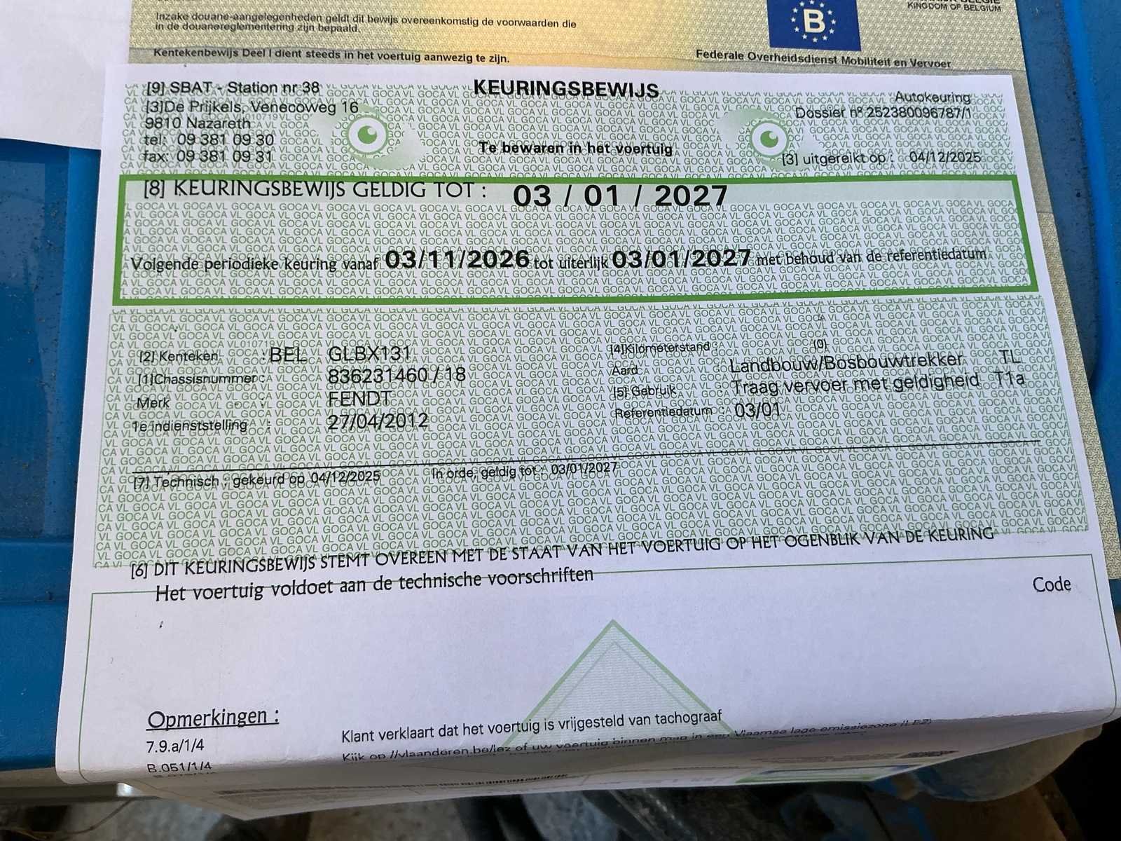 No Merk: Fendt Type: 828 Vario+ Gronddumper K34 Dezeure Bouwjaar: 2012 Kenteken: G LBX 131 Afgelezen urenstand: 13233 Cabine: true Luchtgeveerde stoel: true Kentekenpapieren compleet?: true Chassisnummer: 836232460 Datum eerste toelating: 27/04/2012 Nationaliteit documenten: Belgische