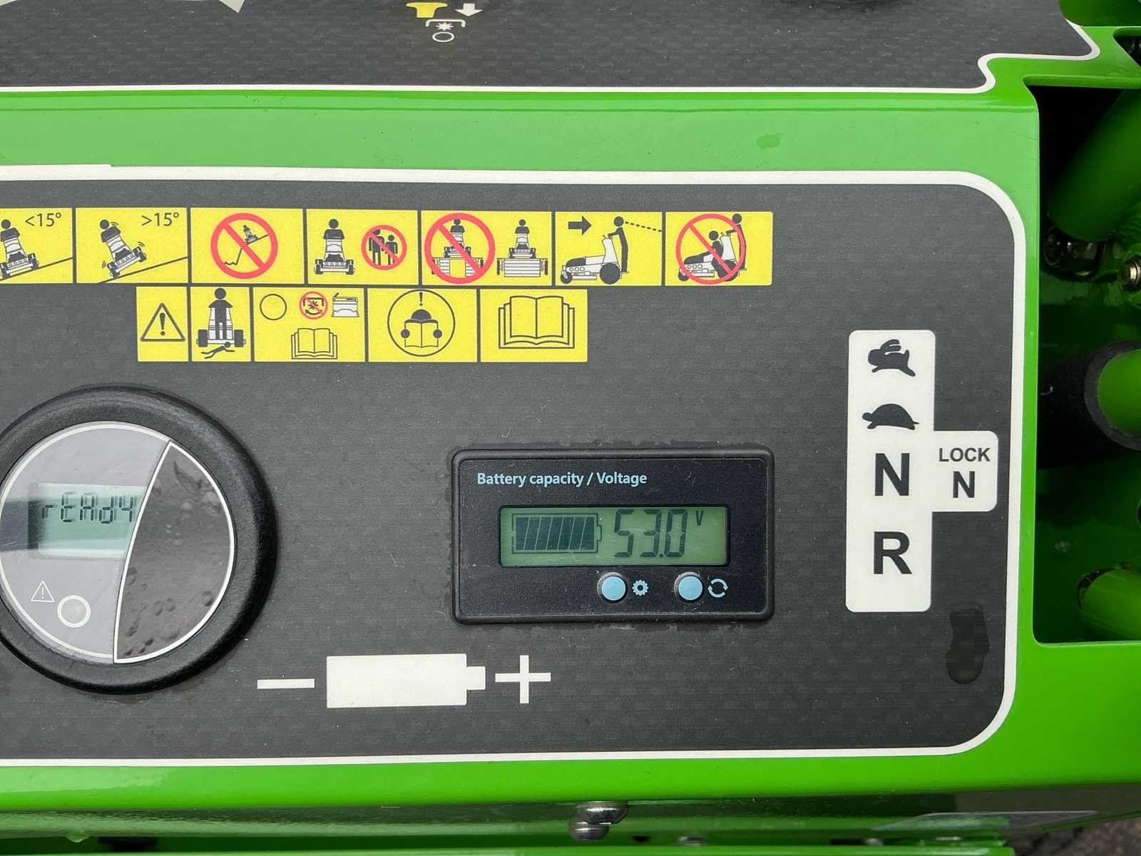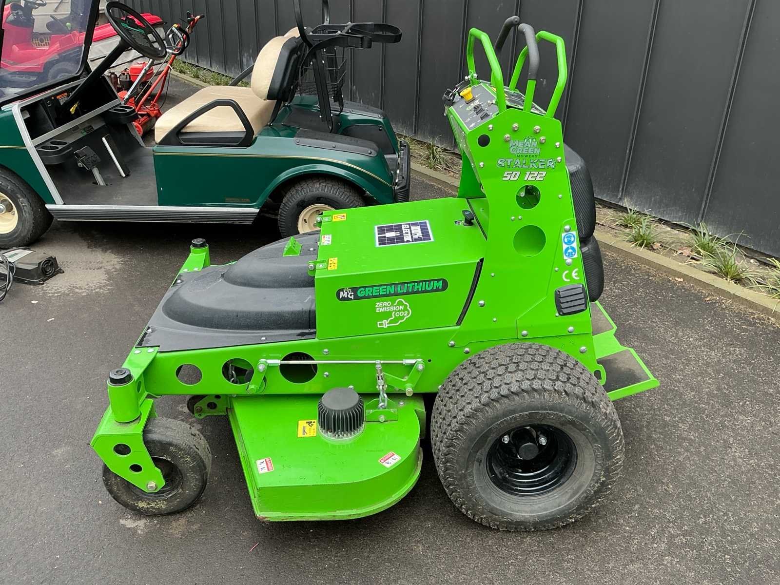 Mean Green elektrische stand-on maaier Demo model Lithium batterijen Effectieve maaitijd : 4uur Garantiecontract kan afgesloten worden met verkoper No Merk: Mean Green Type: Stalker 50/122 Bouwjaar: 2020 Werkbreedte: 1022mm Zelfrijdend: true Elektrisch aangedreven: true Aansluiting: 48V Eigen gewicht: 326kg